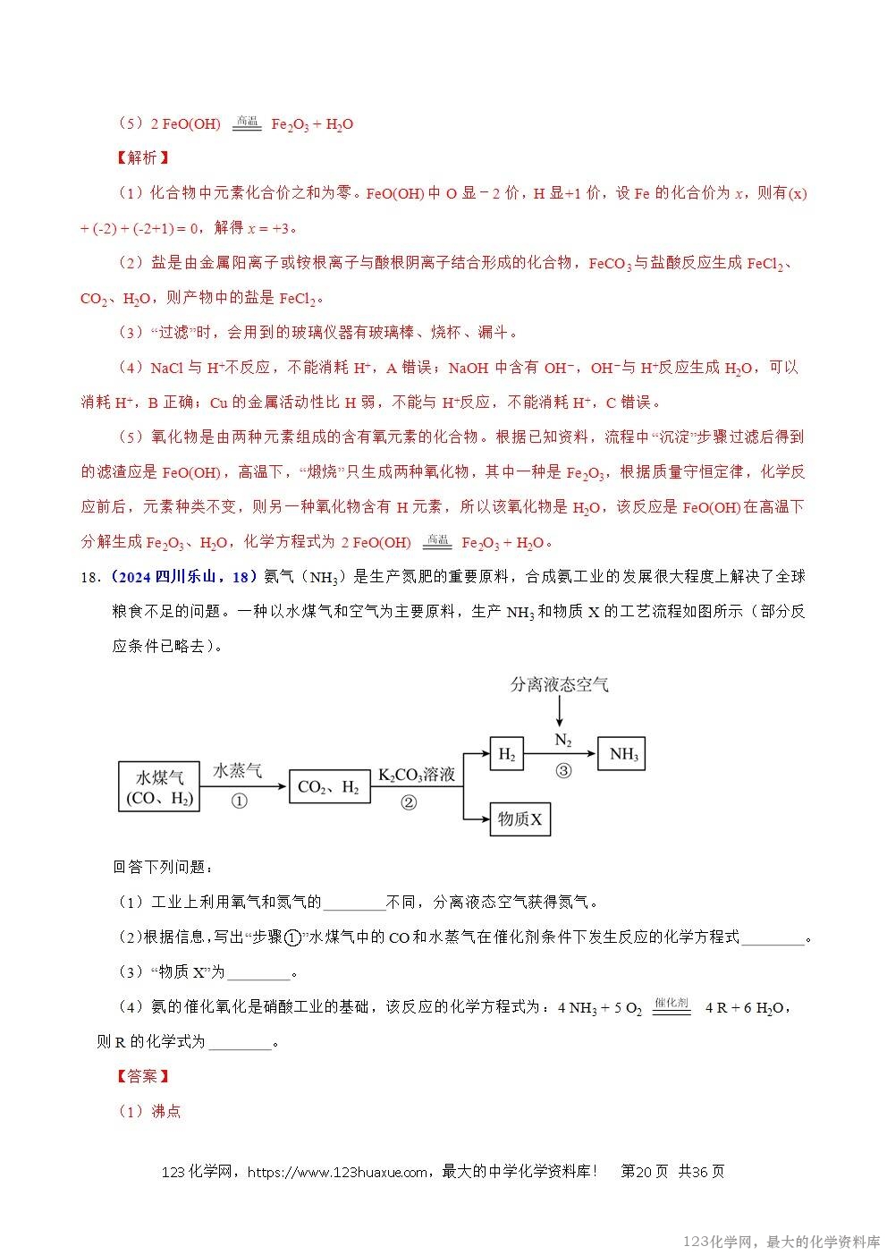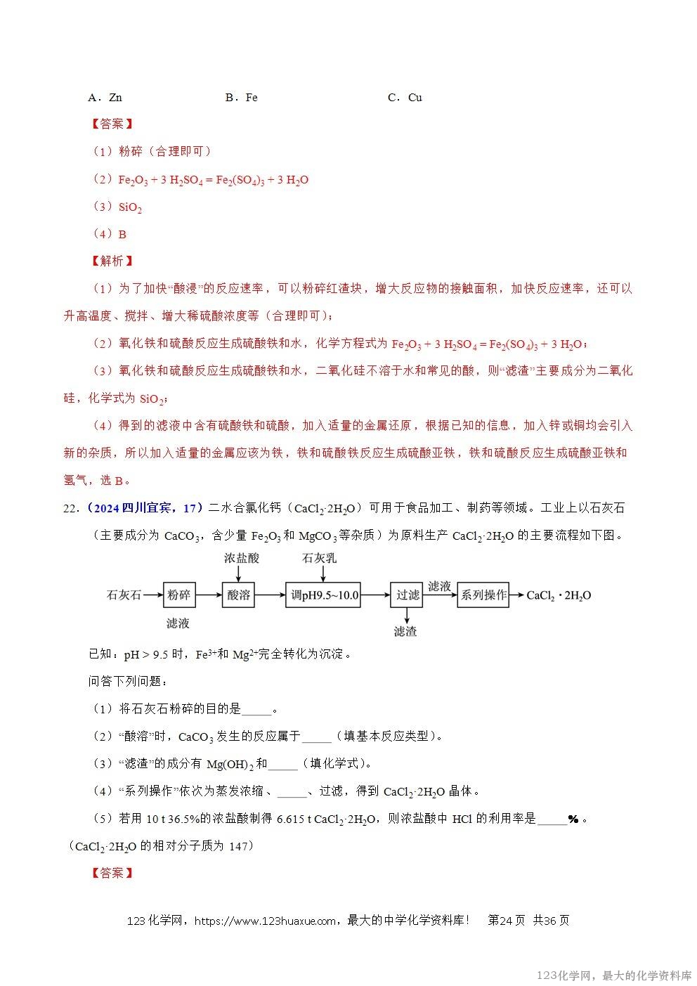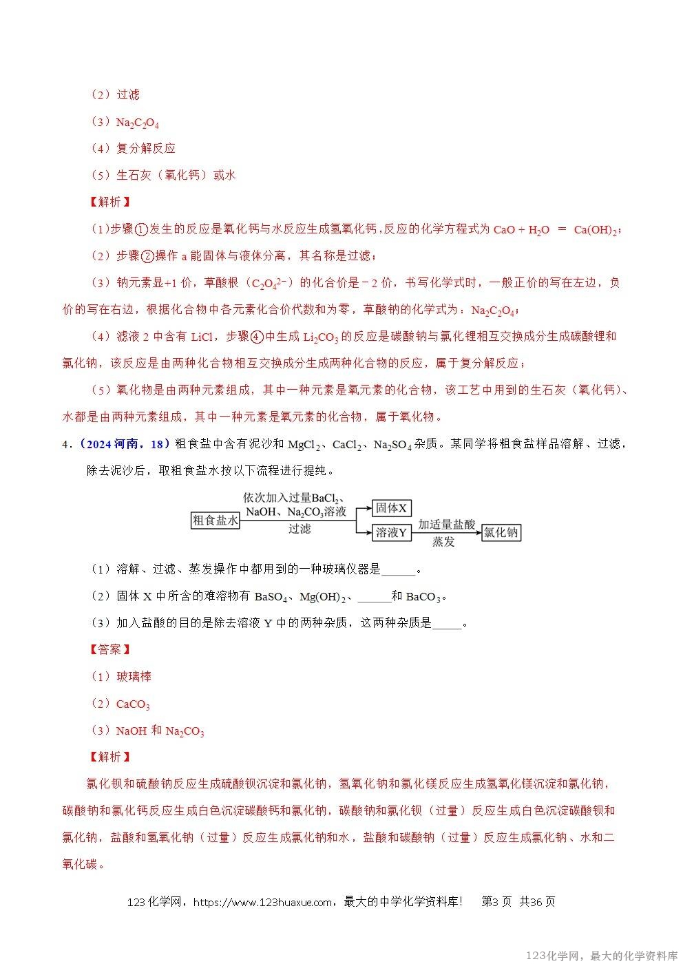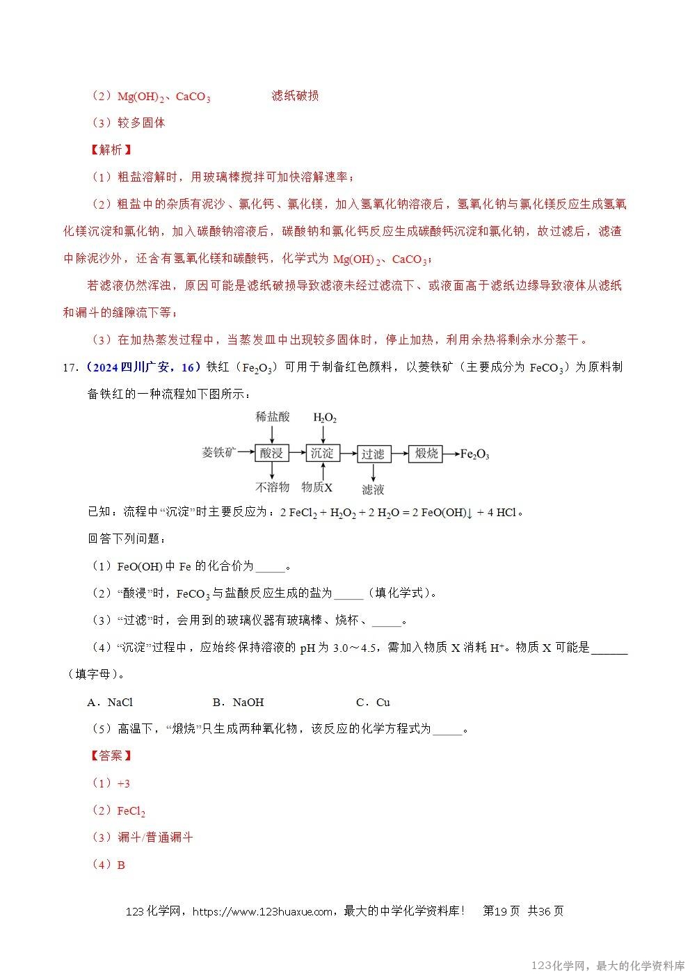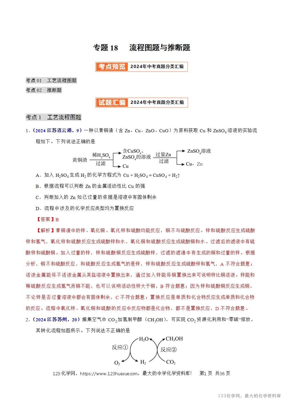 2024年中考化学试卷分类汇编专题18流程图题与推断题解析版word版