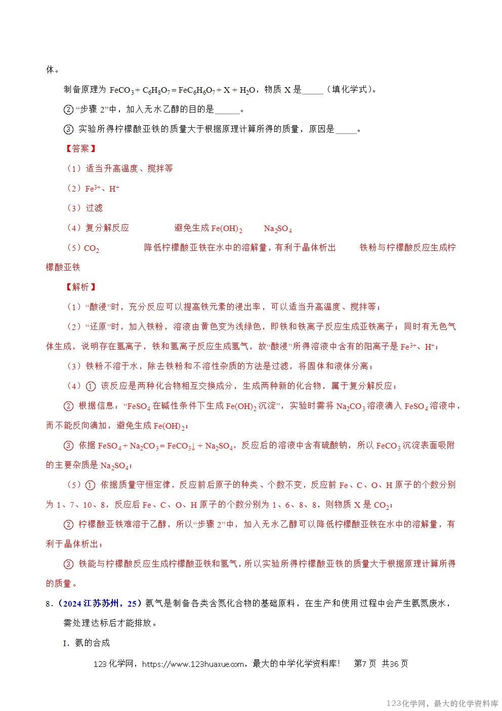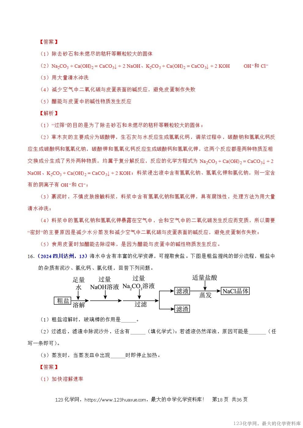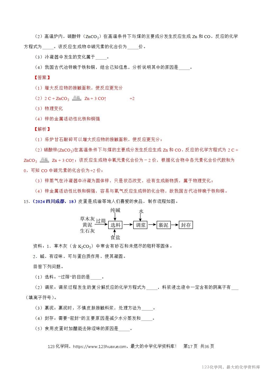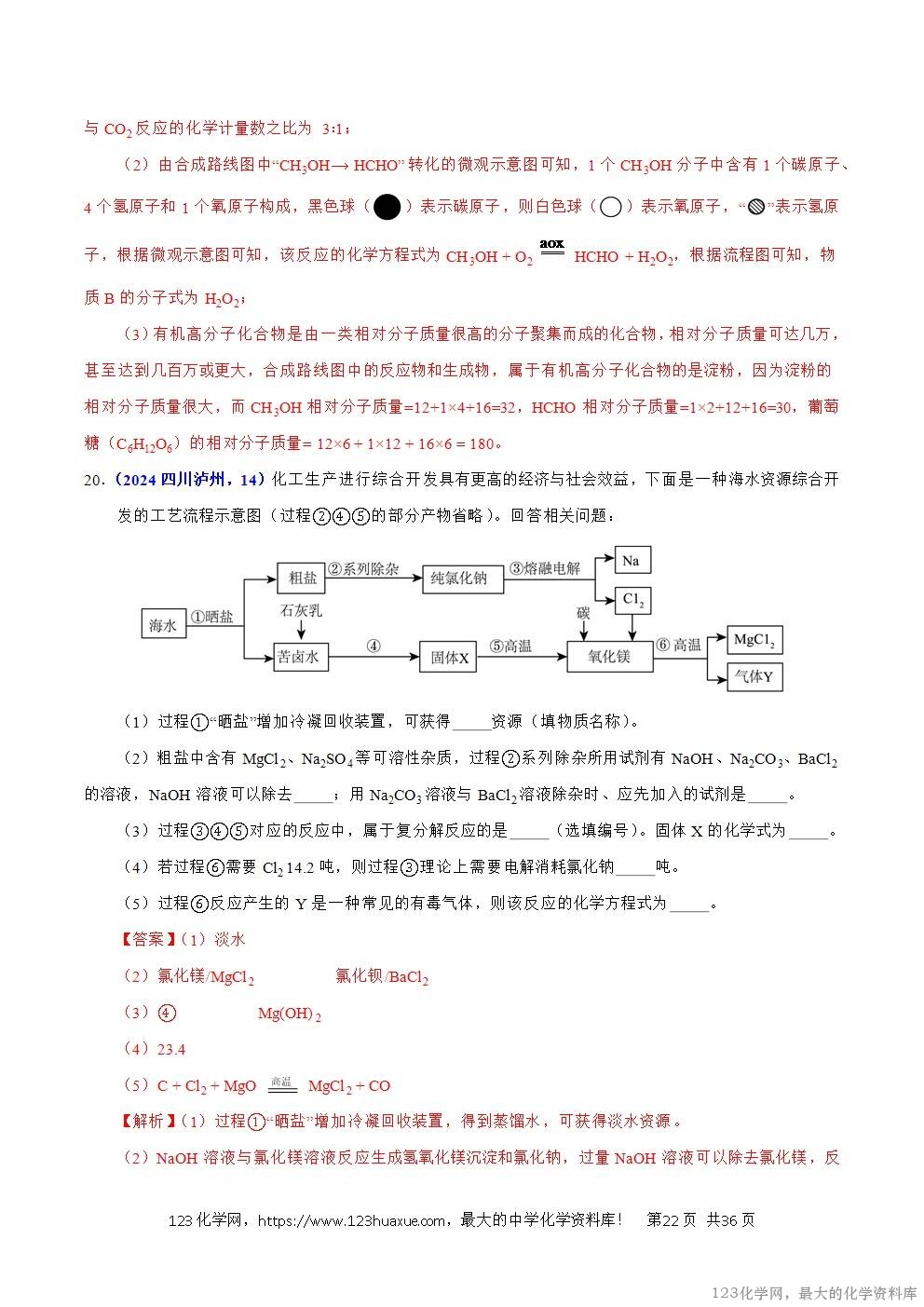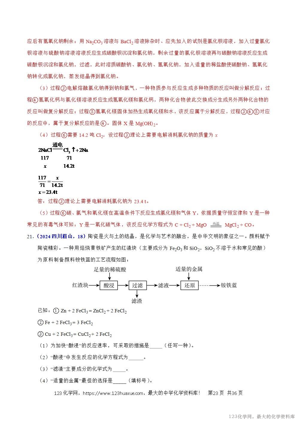 2024年中考化学试卷分类汇编专题18流程图题与推断题解析版word版