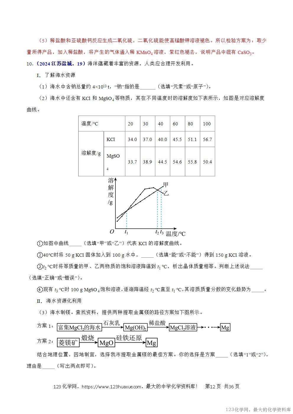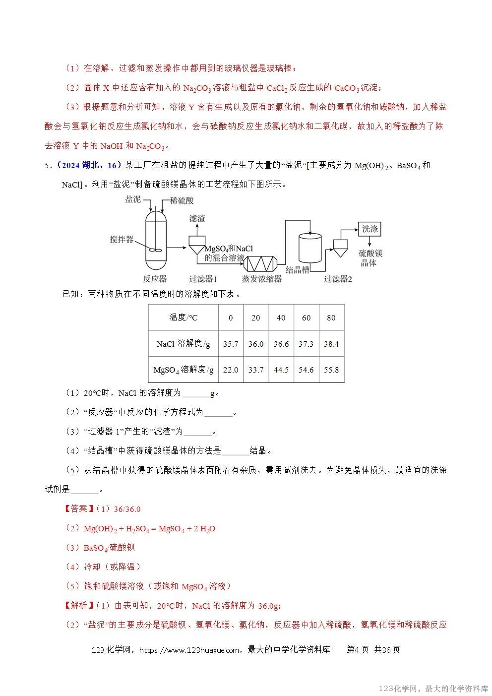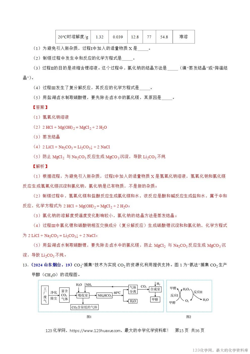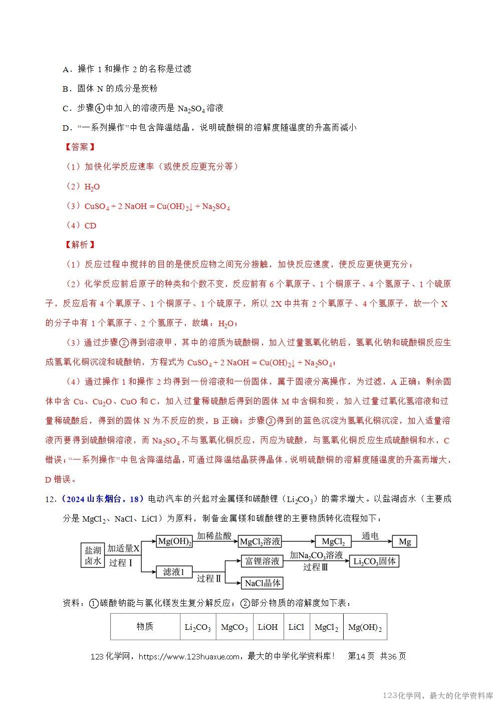 3.(2024安徽,15)碳酸锂(Li2CO3)是制备新能源汽车电池的重要原料。我国盐湖卤水中主要含有氯化锂、氯化钠、硫酸镁等溶质,一种以化学沉淀法从卤水中生产碳酸锂的工艺如图: