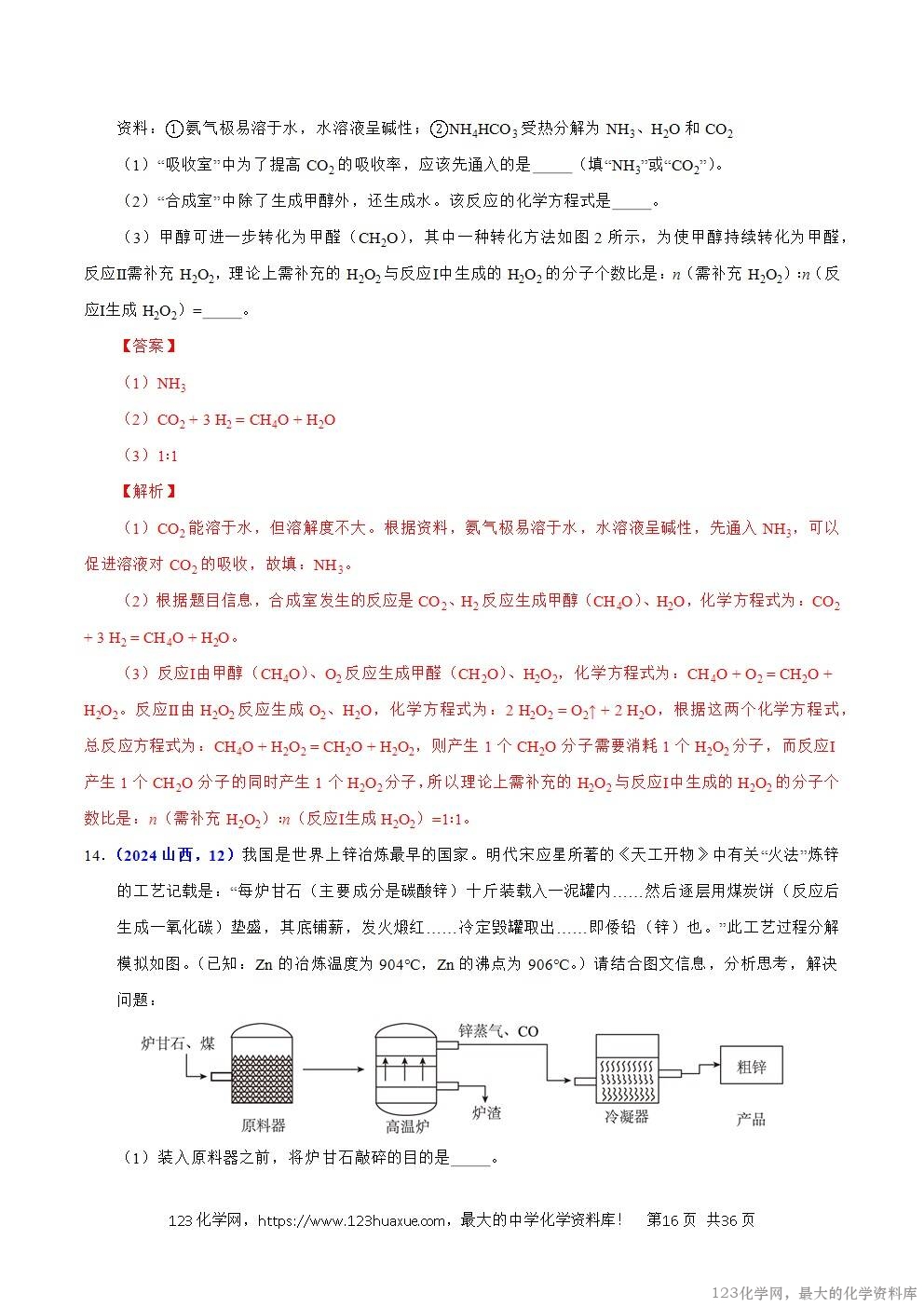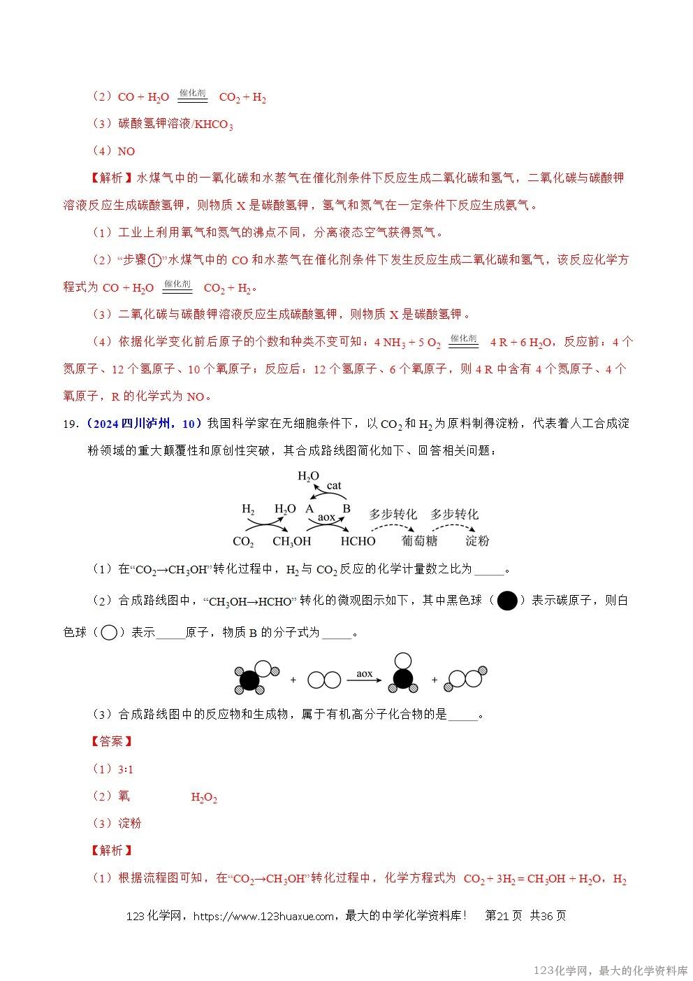 2.(2024江苏苏州,20)捕集空气中CO2加氢制甲醇(CH3OH),可实现CO2资源化利用和“零碳”排放,其转化流程如图所示。下列说法不正确的是