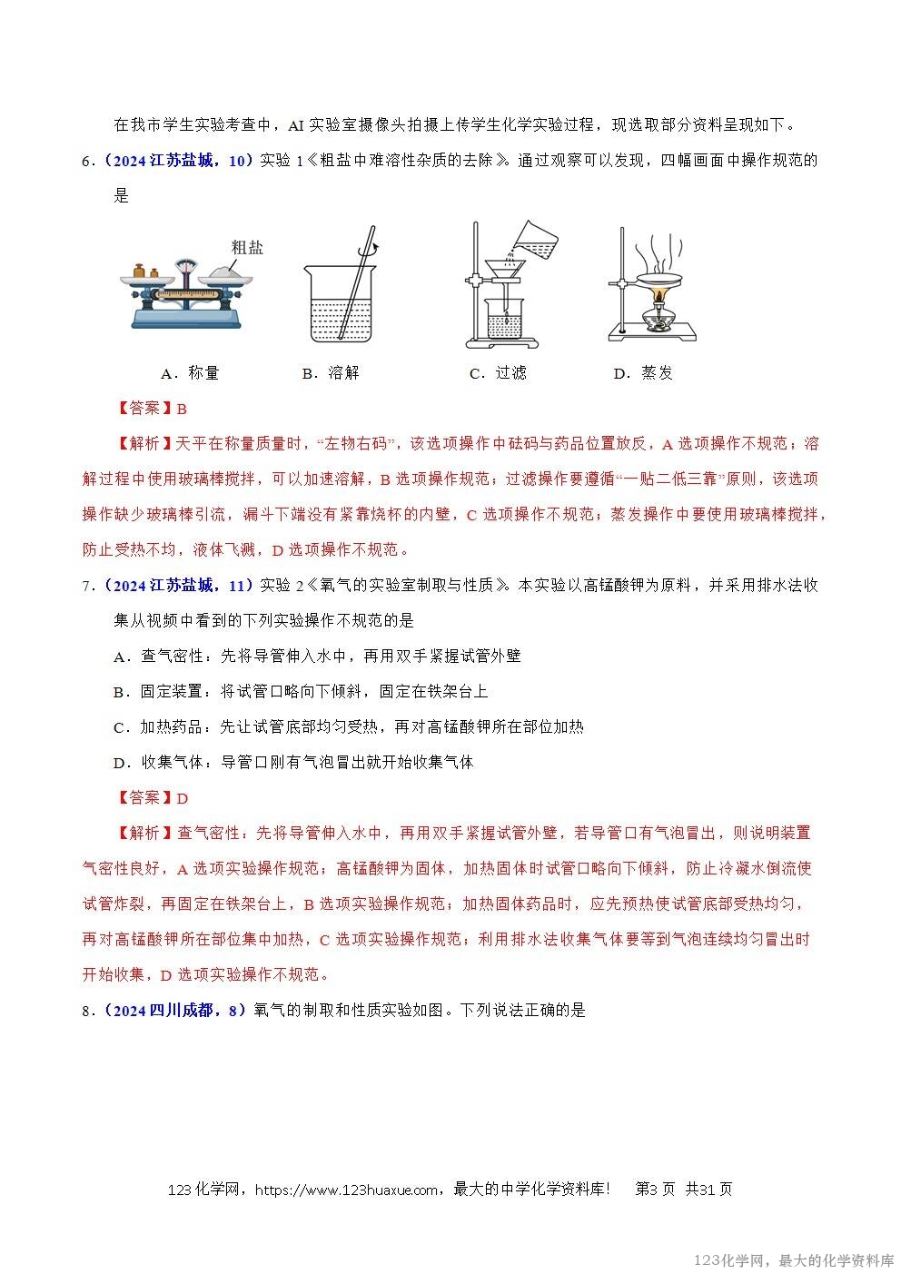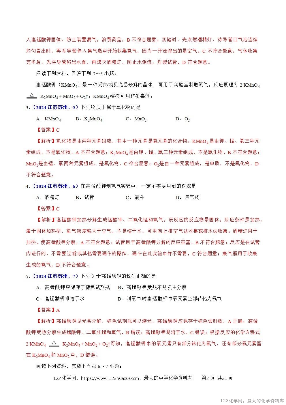 5.(2024江苏苏州,7)下列关于高锰酸钾的说法正确的是