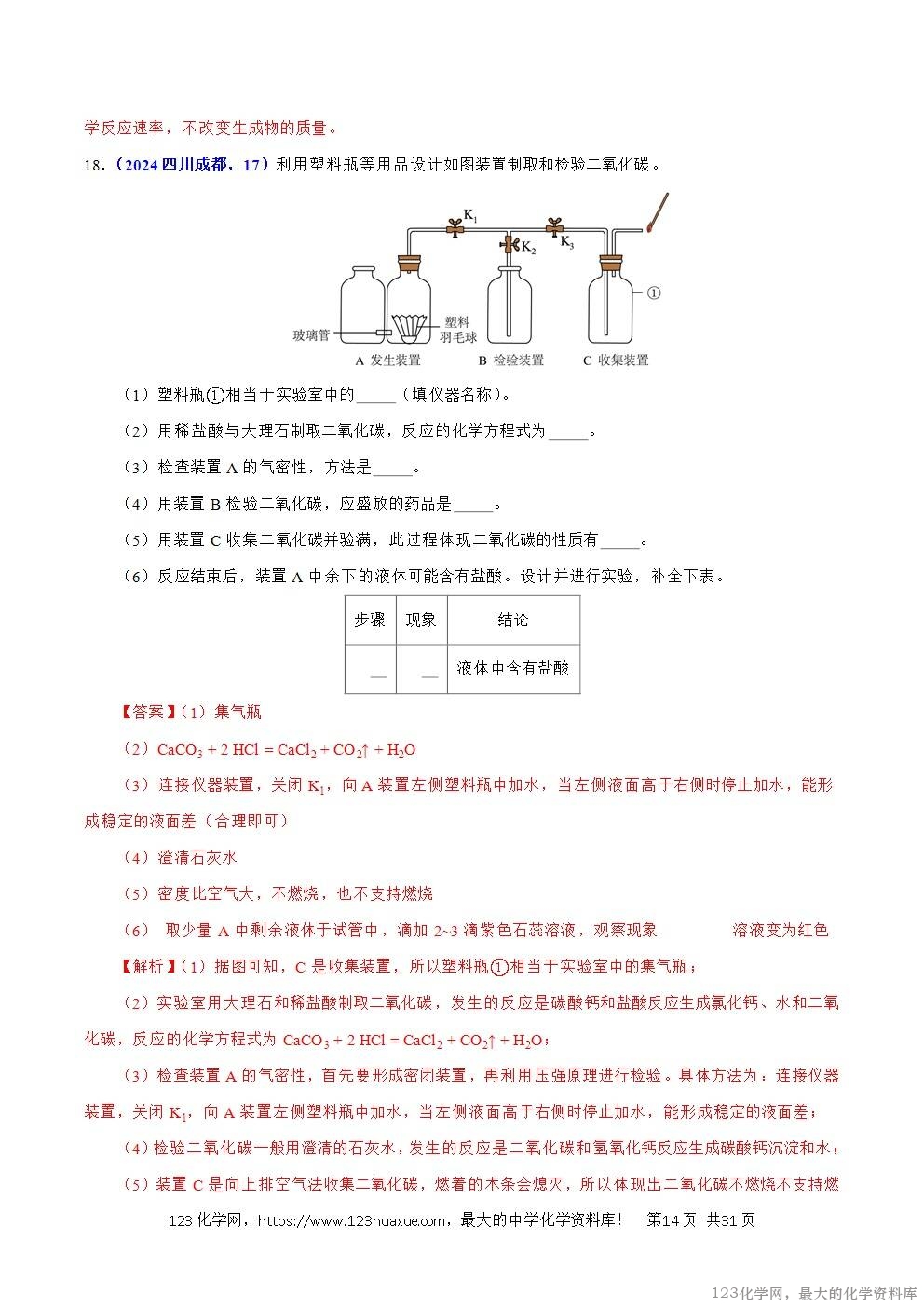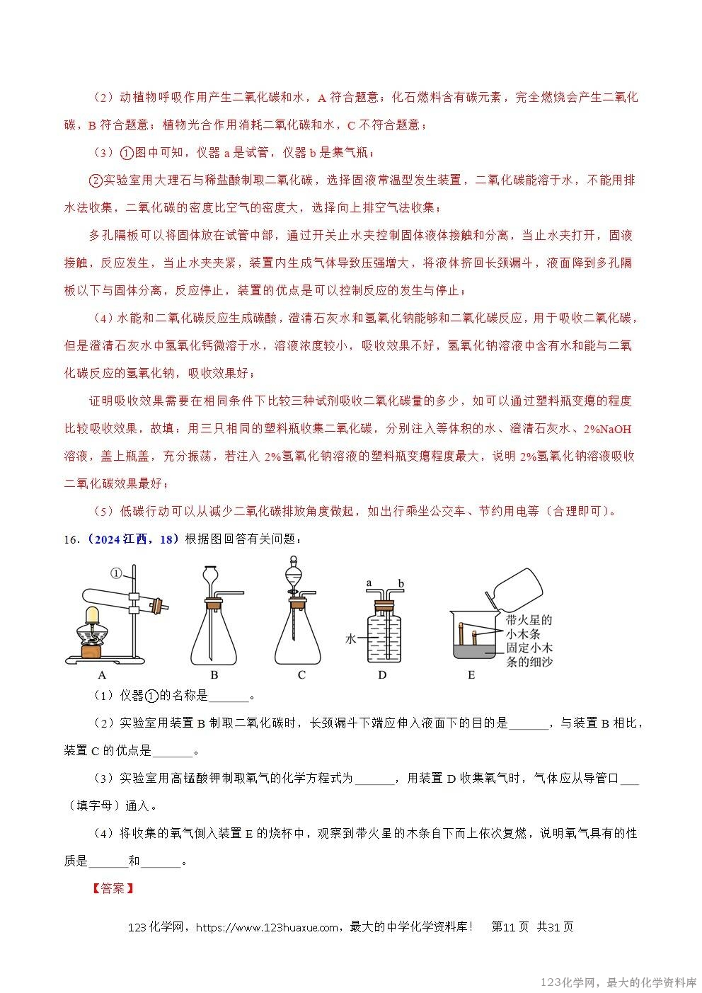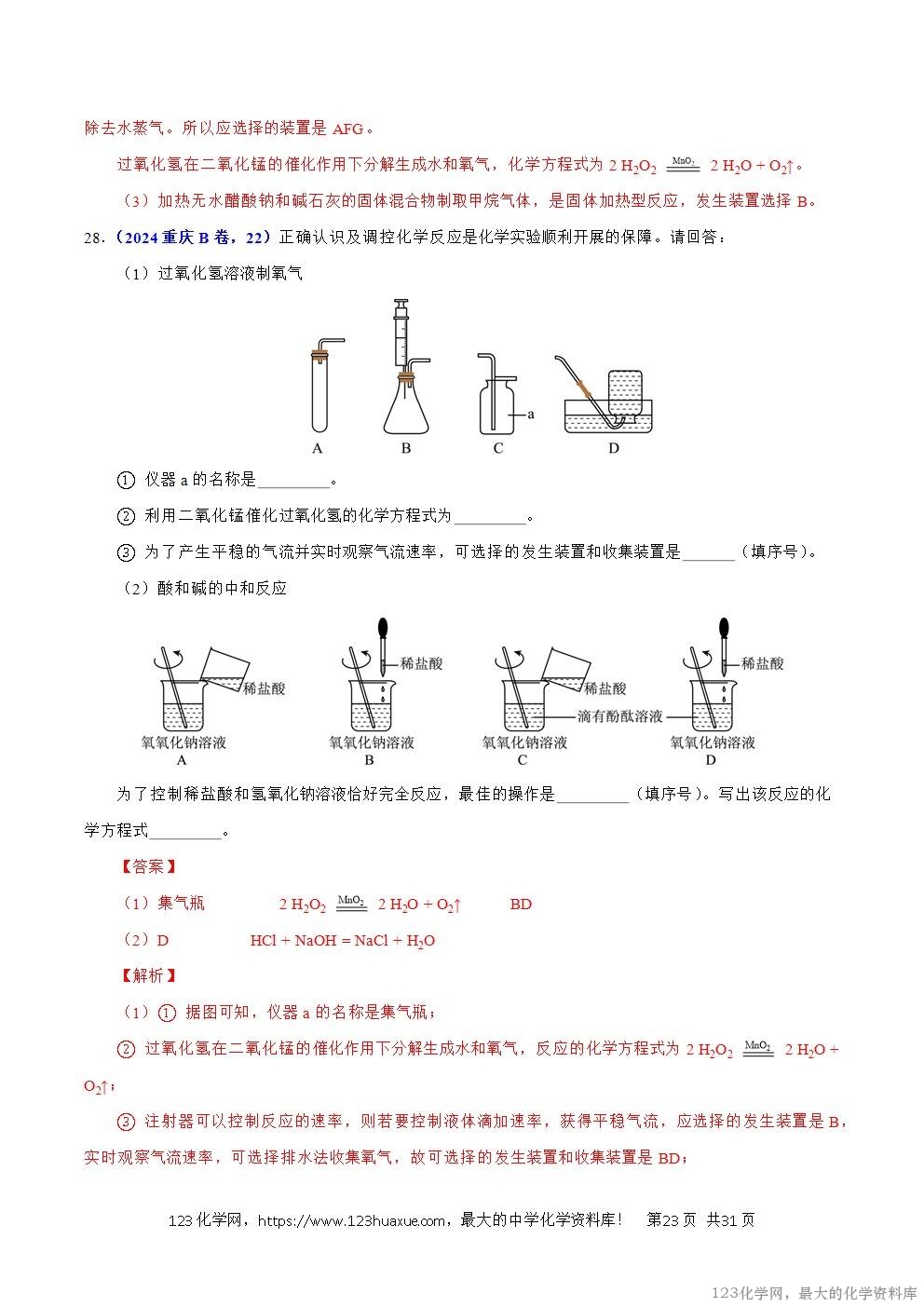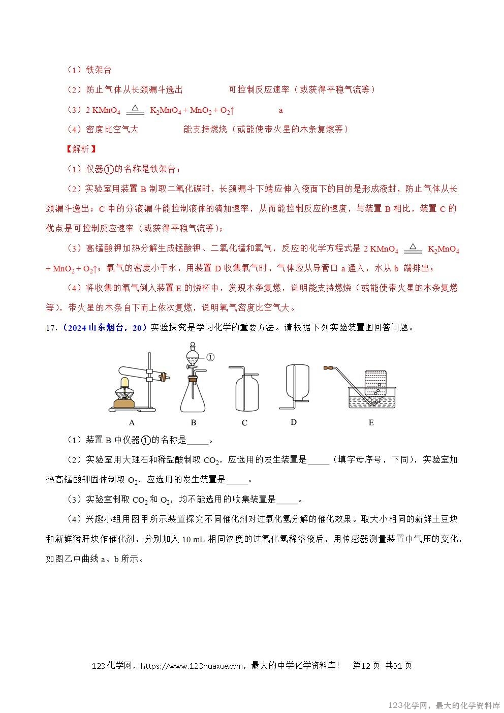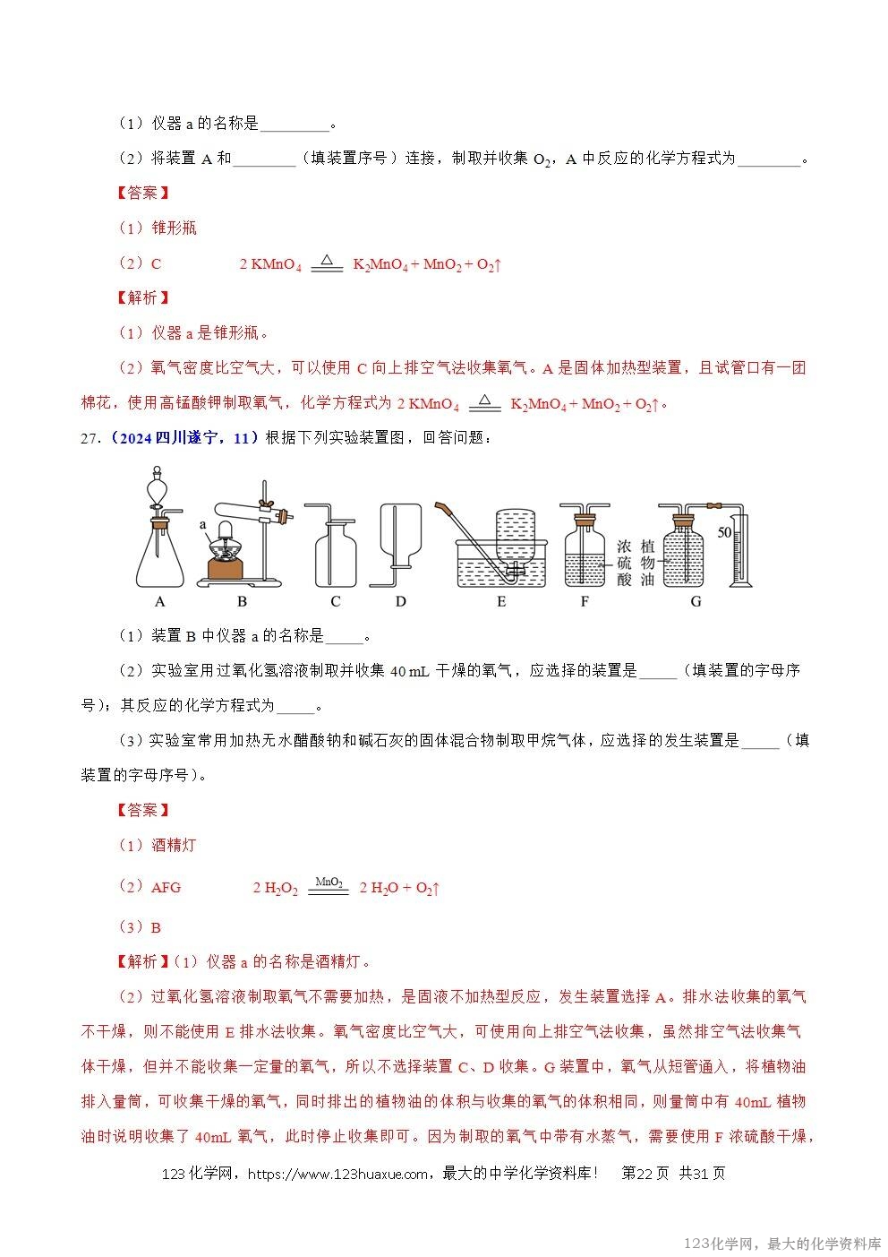 2024年中考化学试卷分类汇编专题17常见气体的制取、净化与检验解析版word版