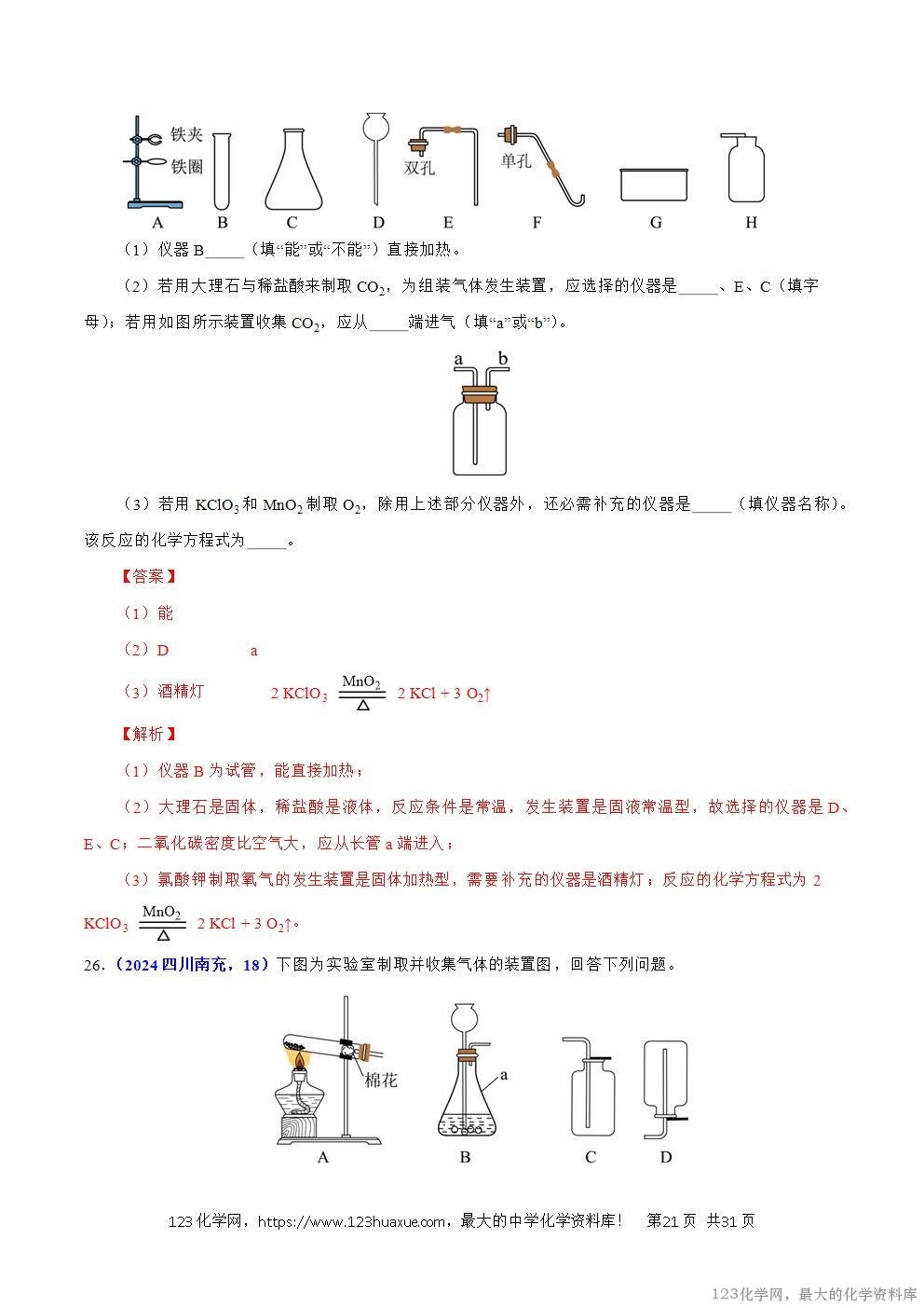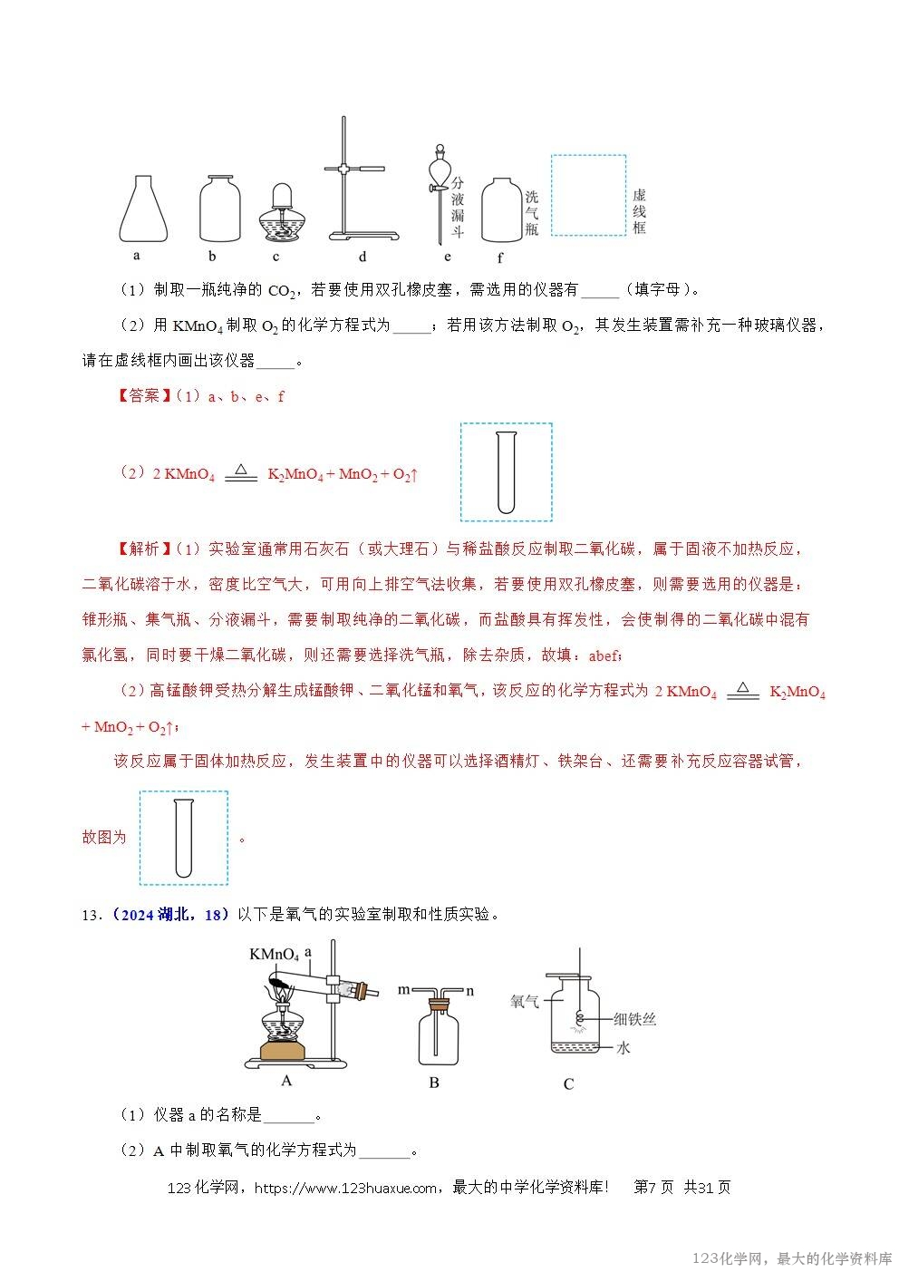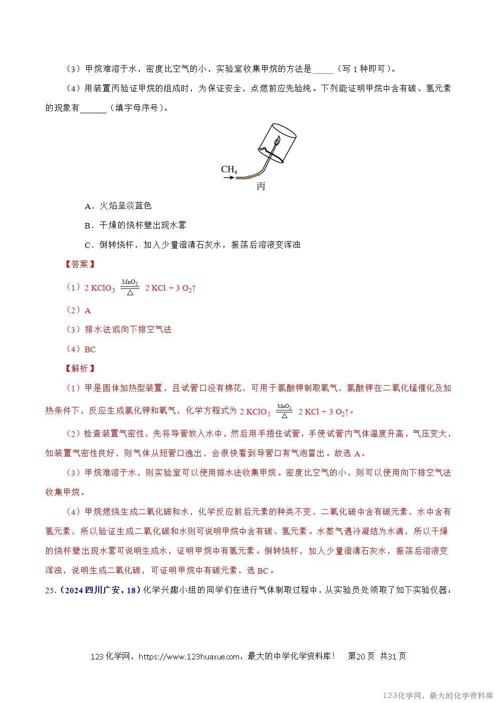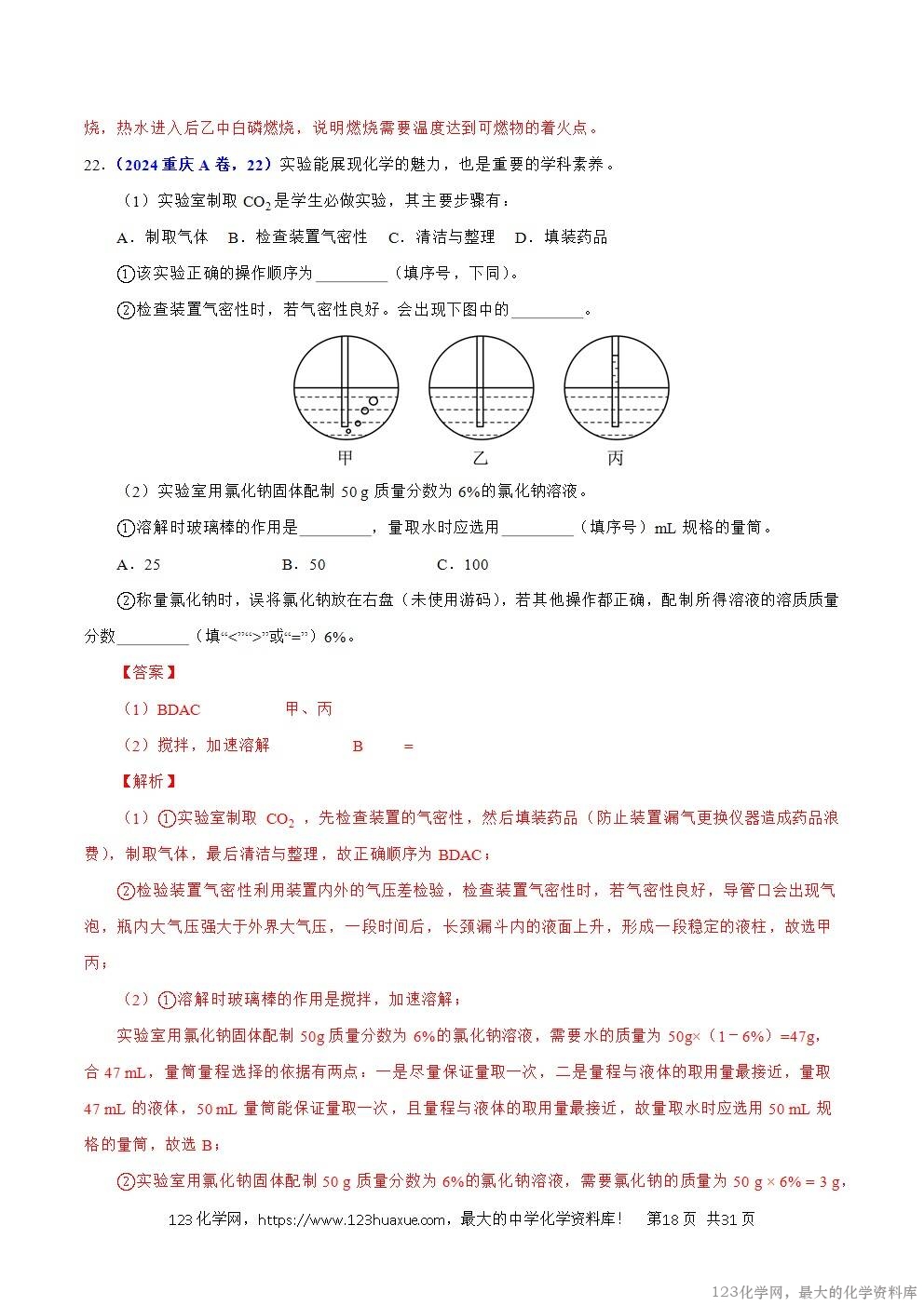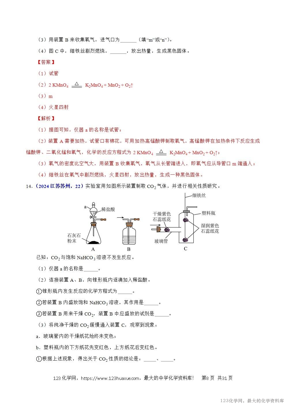 2024年中考化学试卷分类汇编专题17常见气体的制取、净化与检验解析版word版