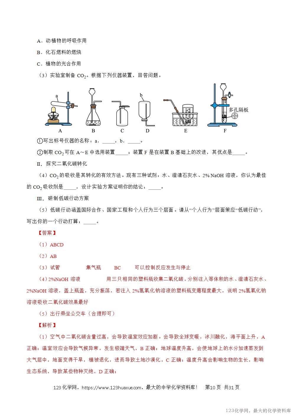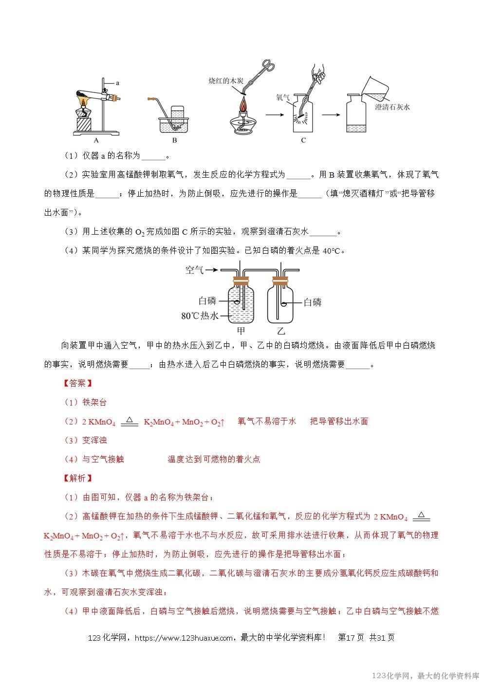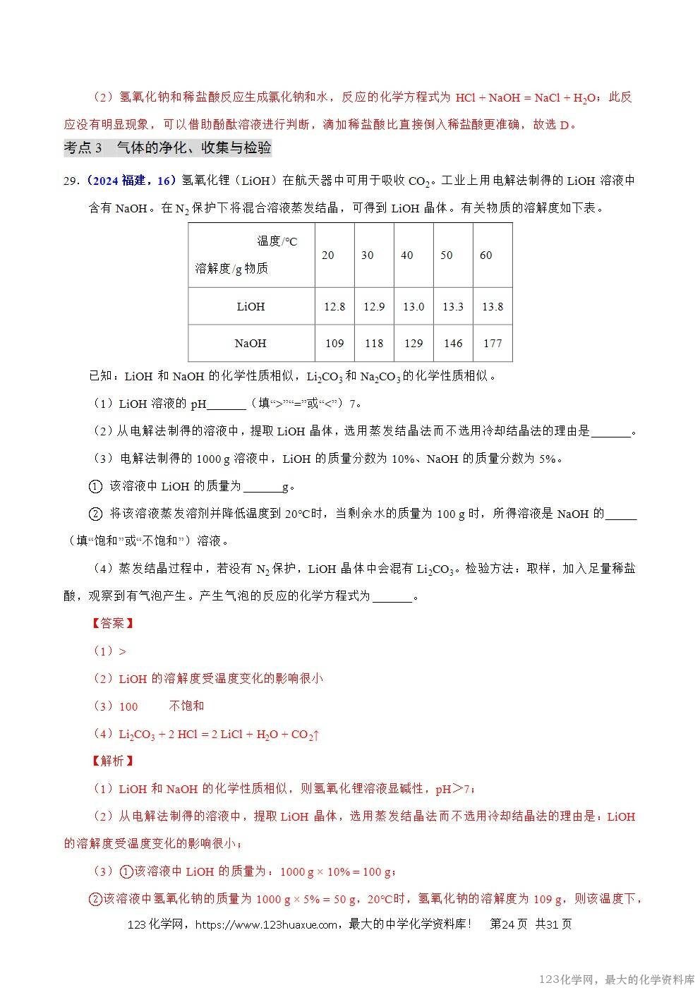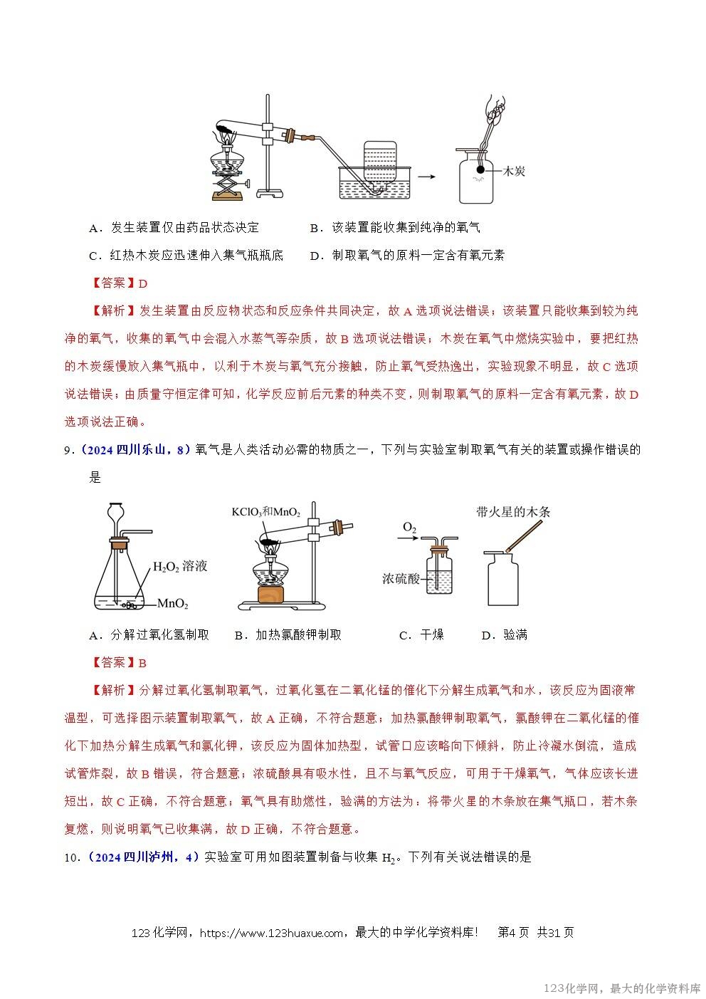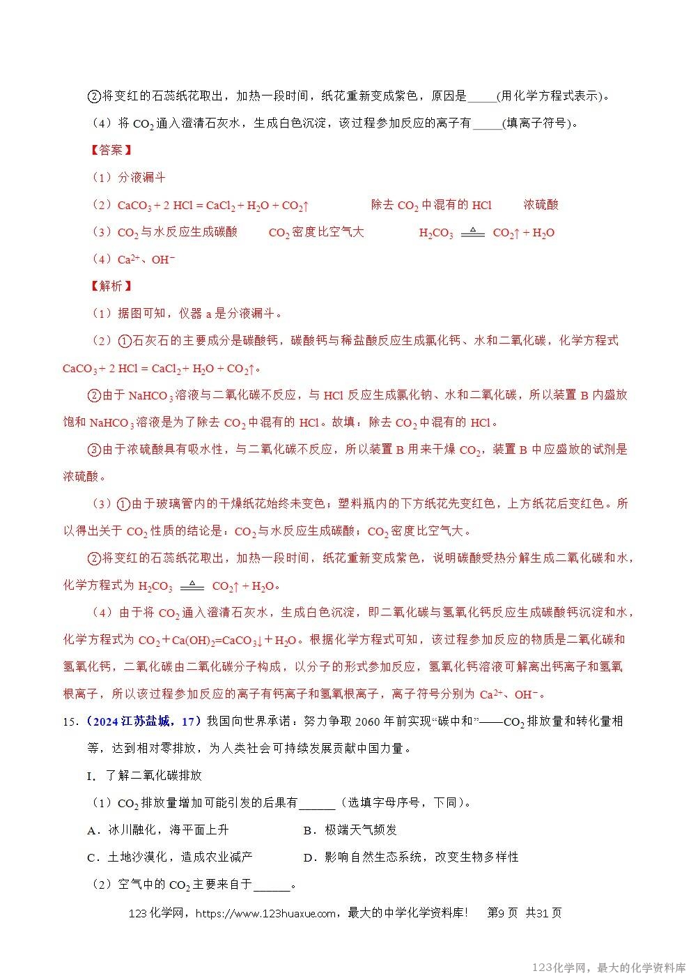 2024年中考化学试卷分类汇编专题17常见气体的制取、净化与检验解析版word版