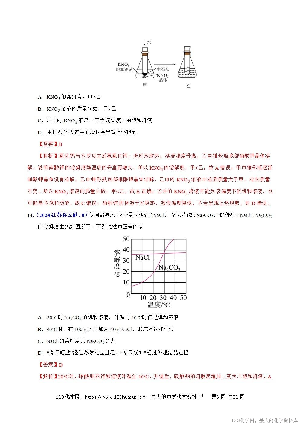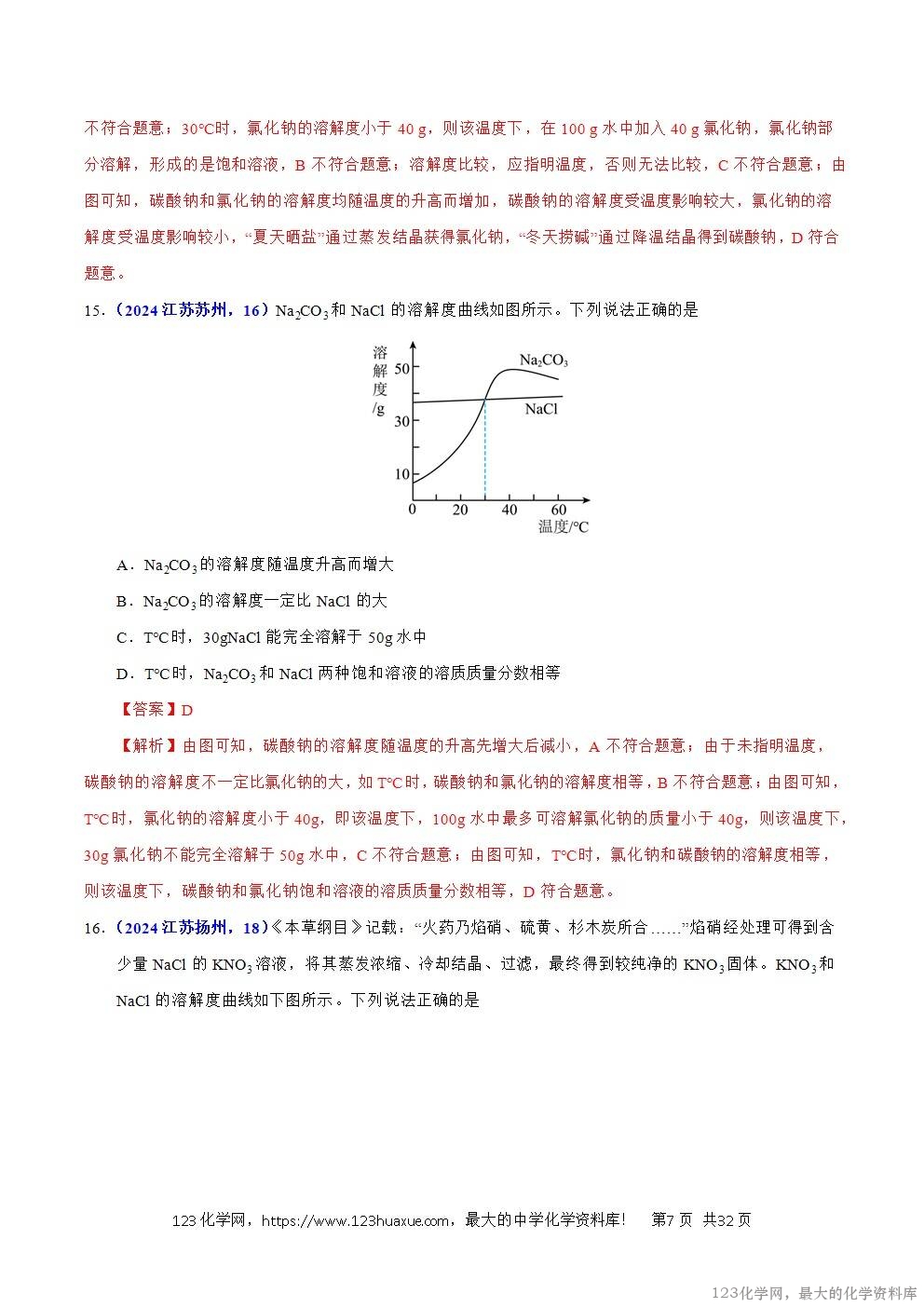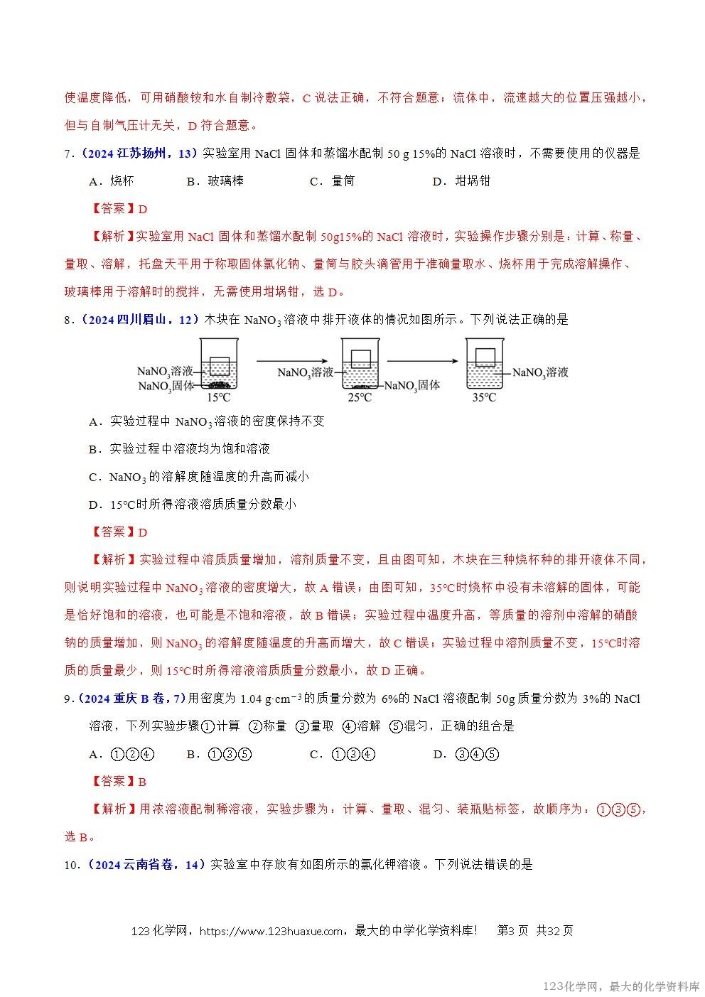2.(2024江苏苏州,8)下列有关溶液的说法正确的是