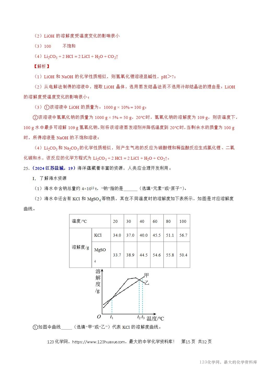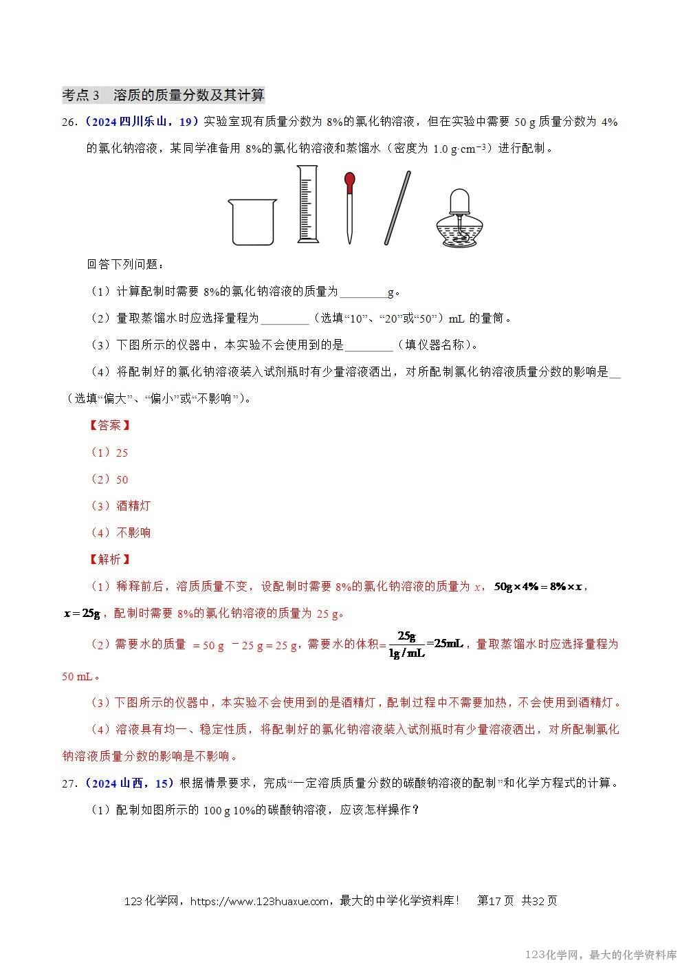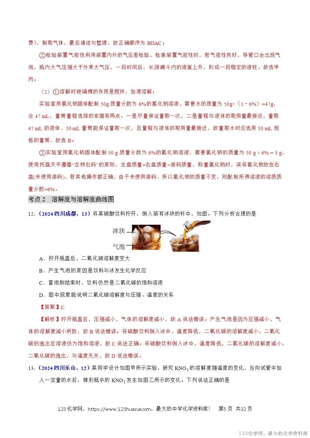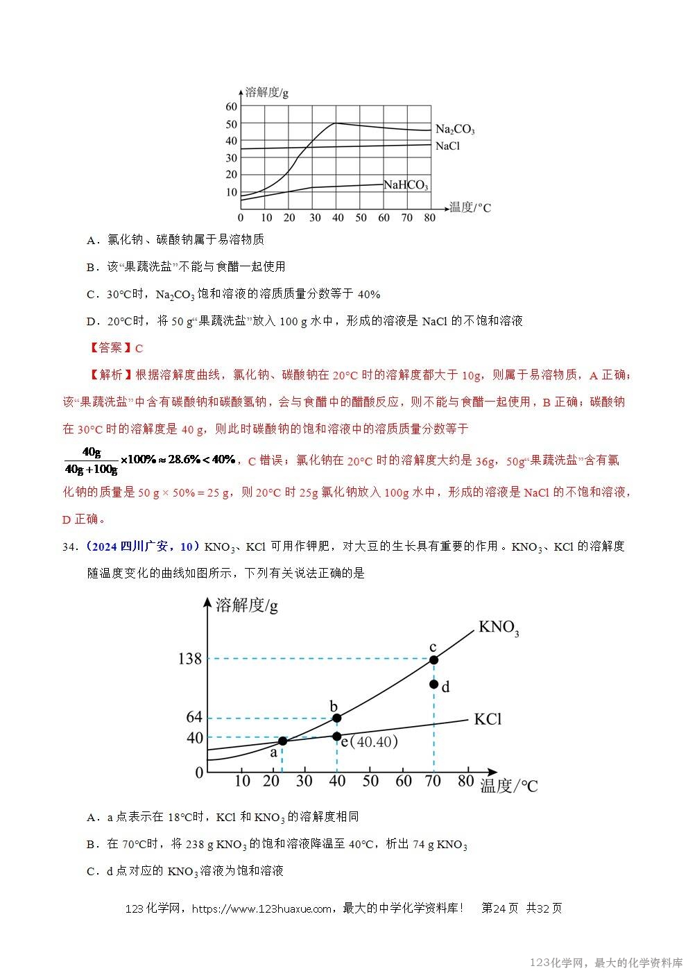 2.(2024江苏苏州,8)下列有关溶液的说法正确的是