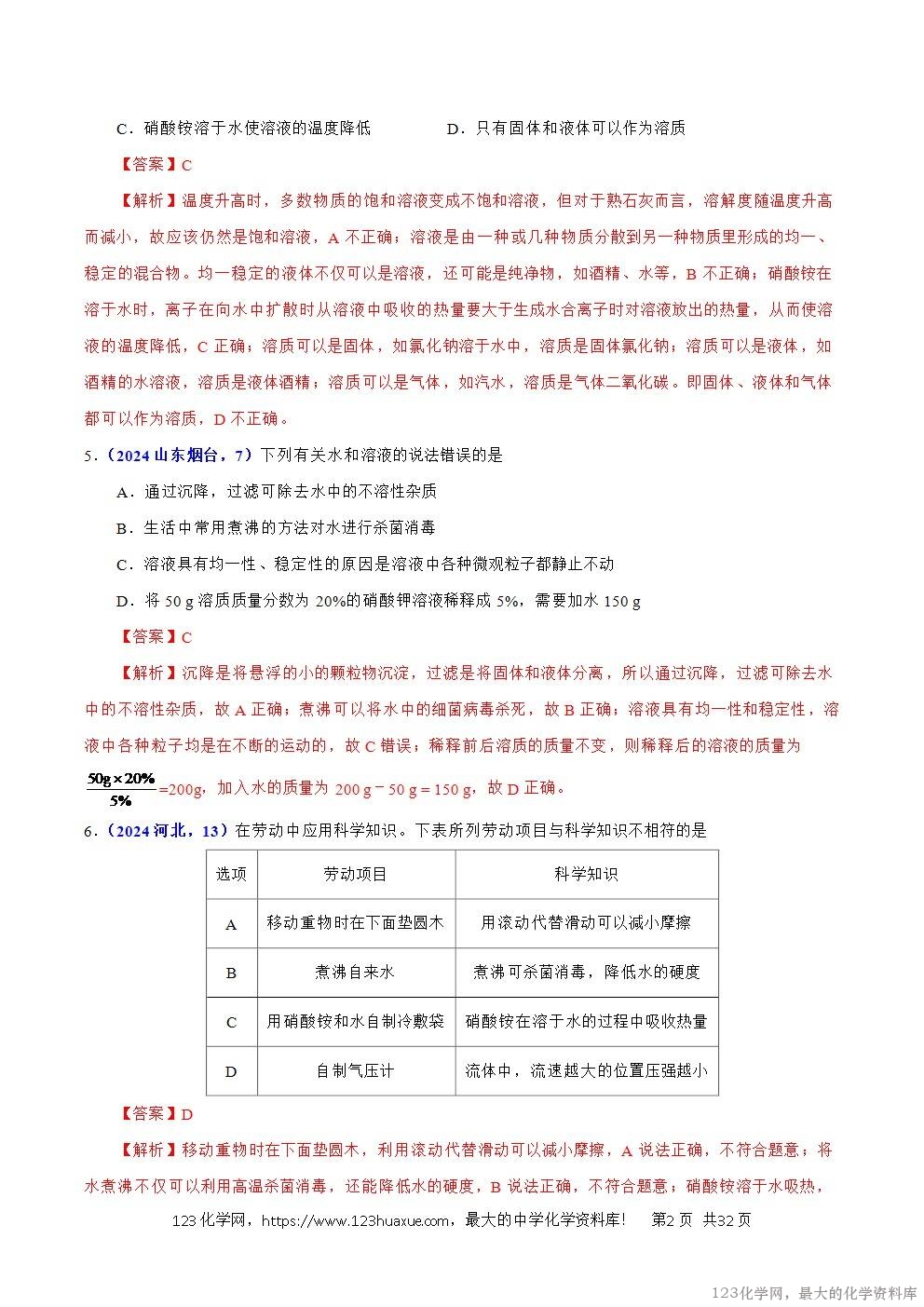 5.(2024山东烟台,7)下列有关水和溶液的说法错误的是