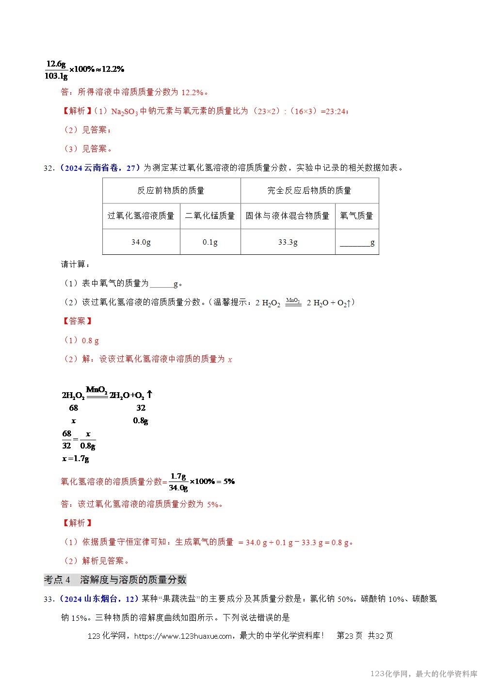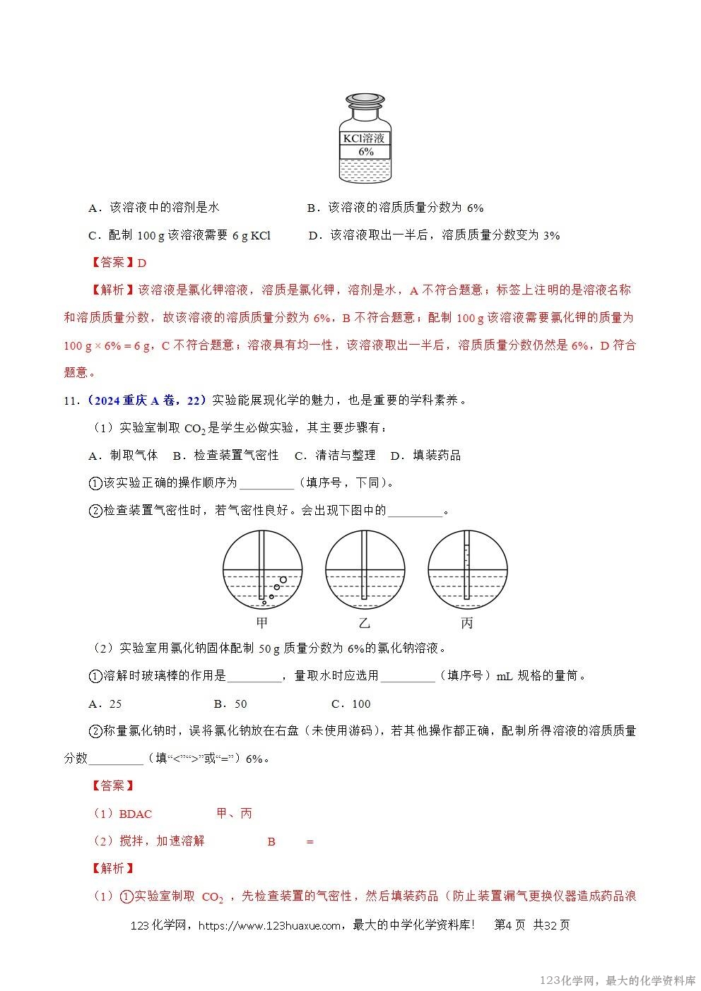 4.(2024山东滨州,4)下列关于溶液的说法正确的是
