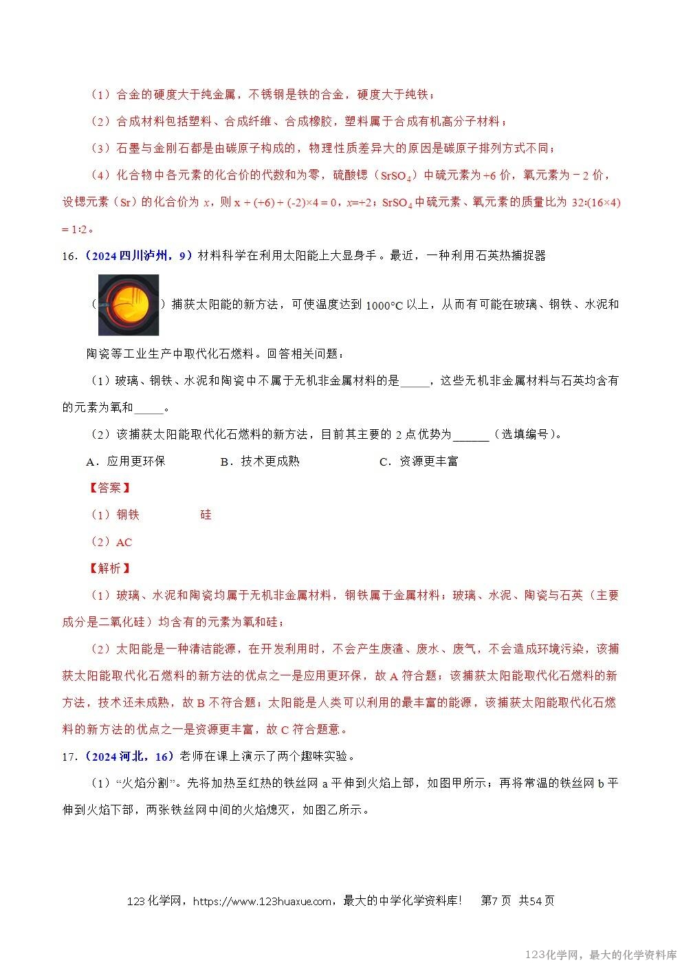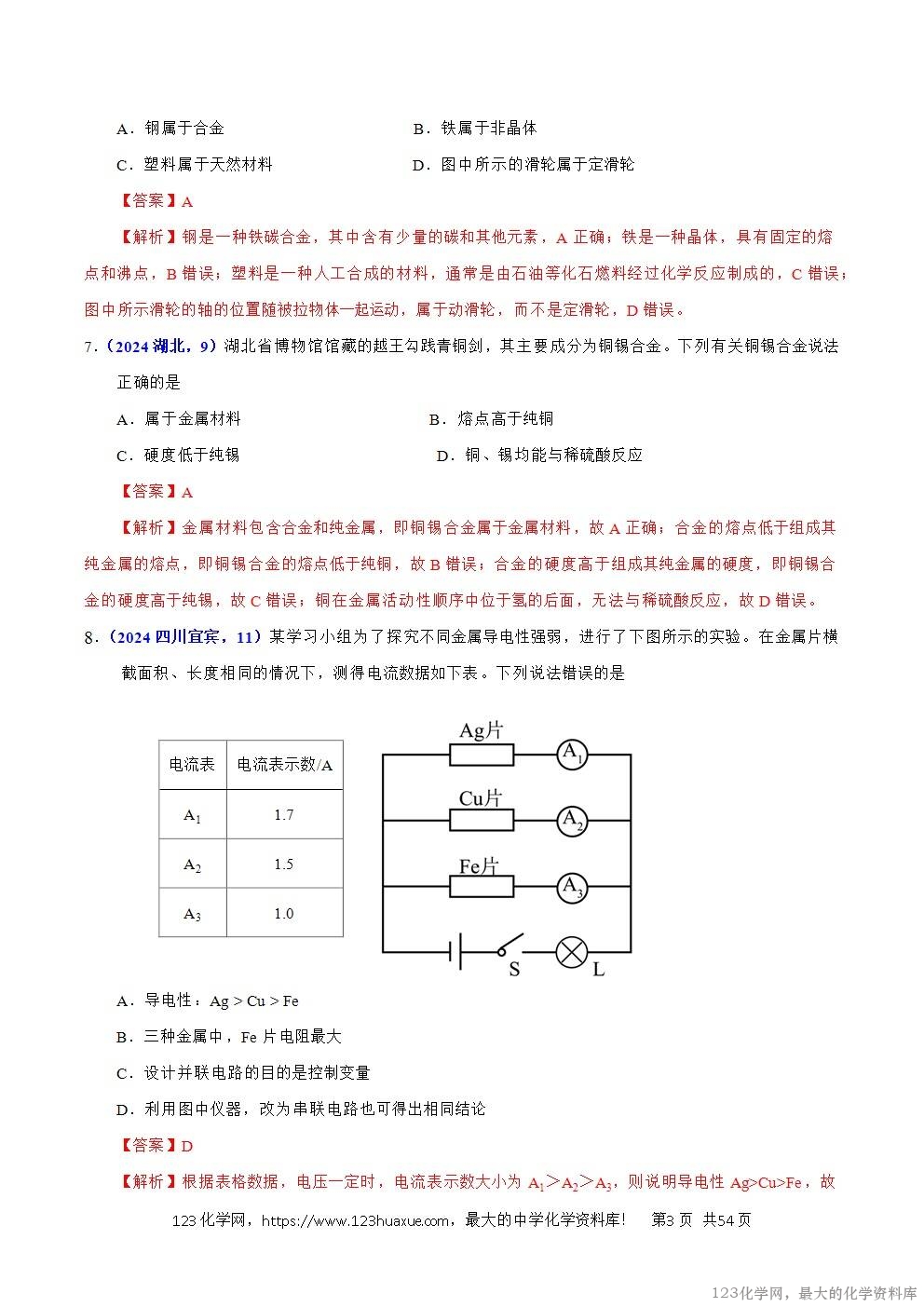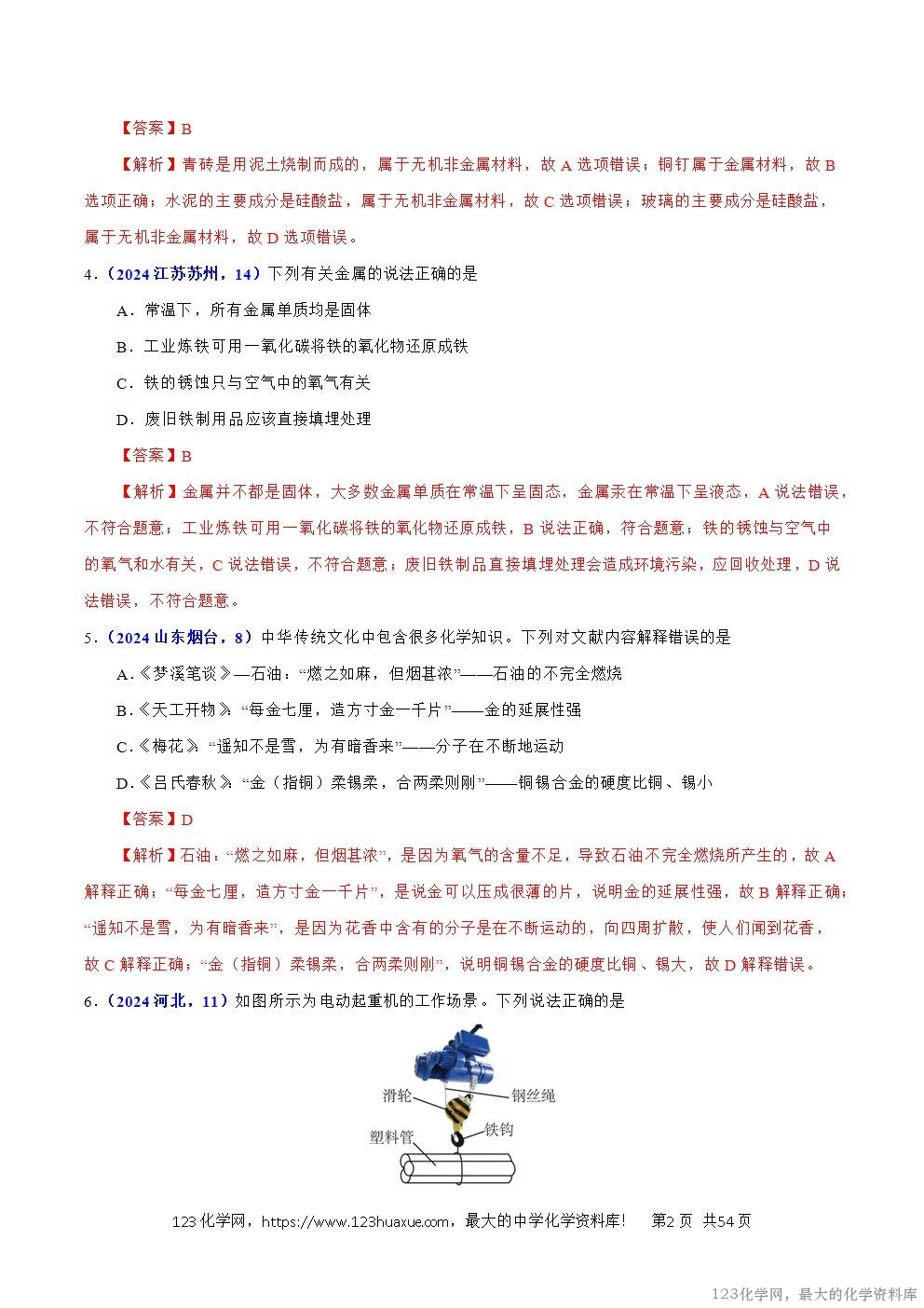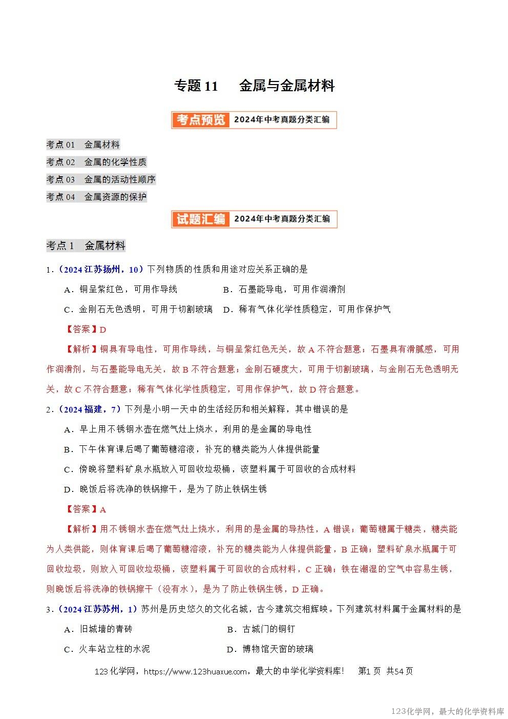 3.(2024江苏苏州,1)苏州是历史悠久的文化名城,古今建筑交相辉映。下列建筑材料属于金属材料的是