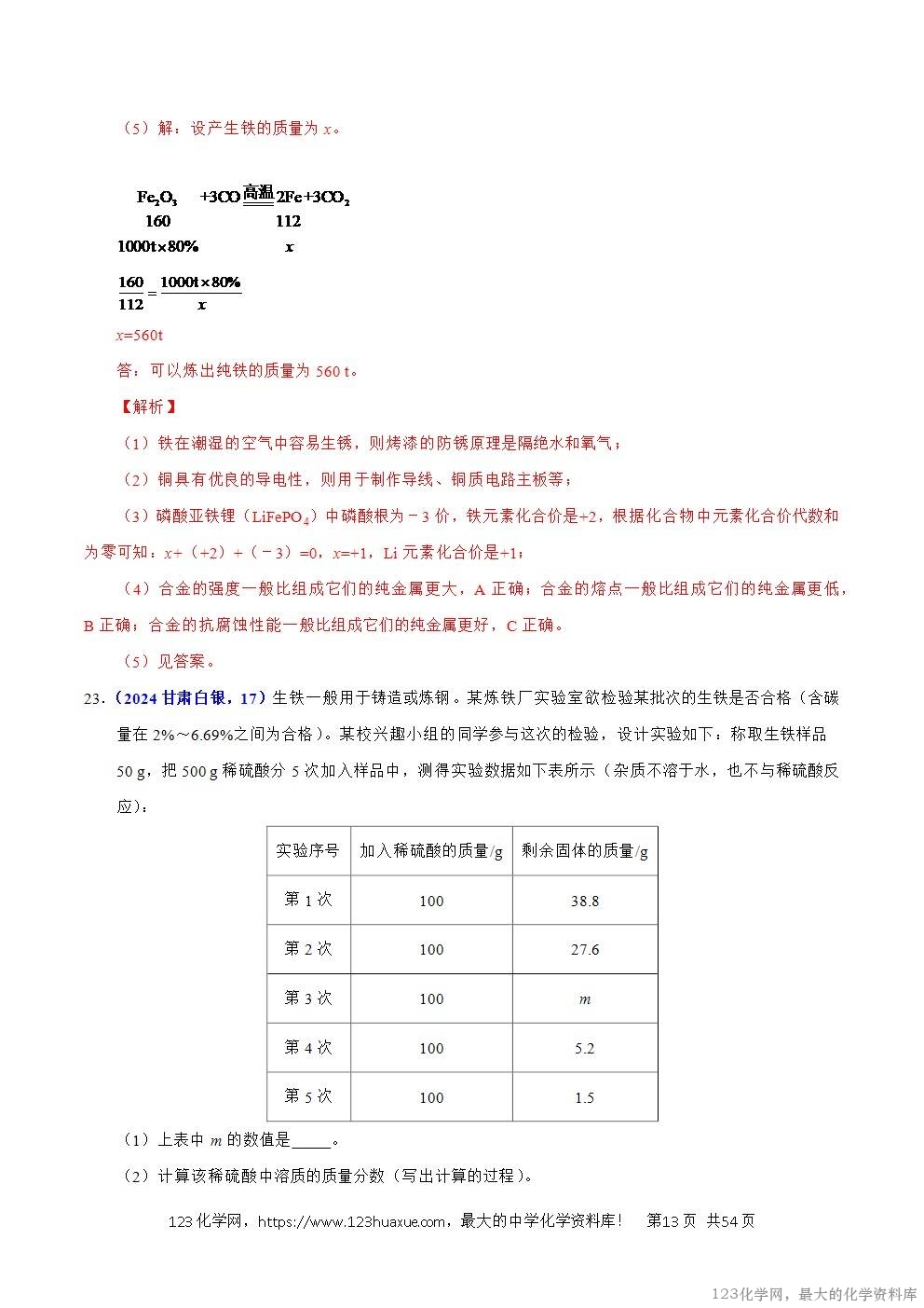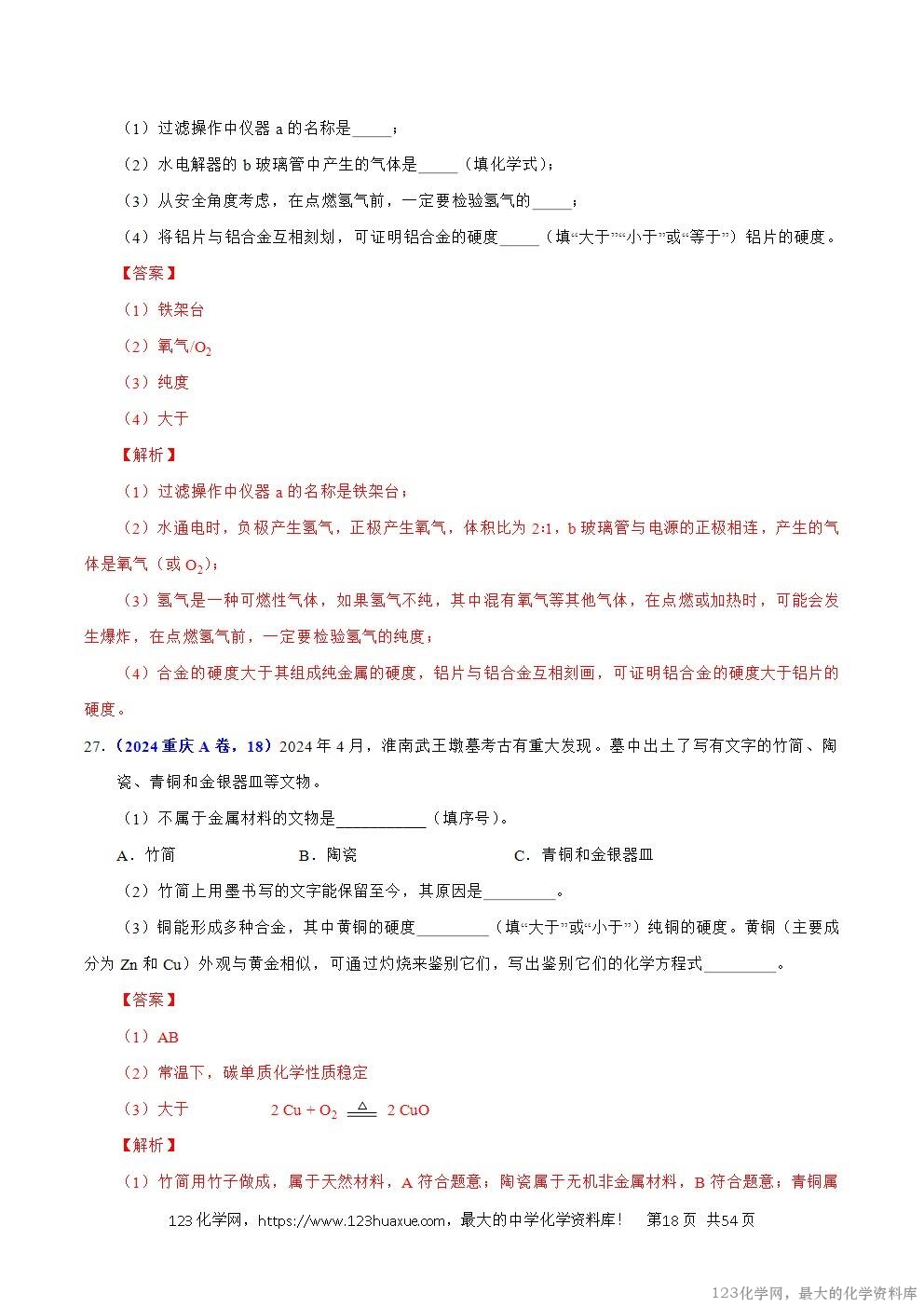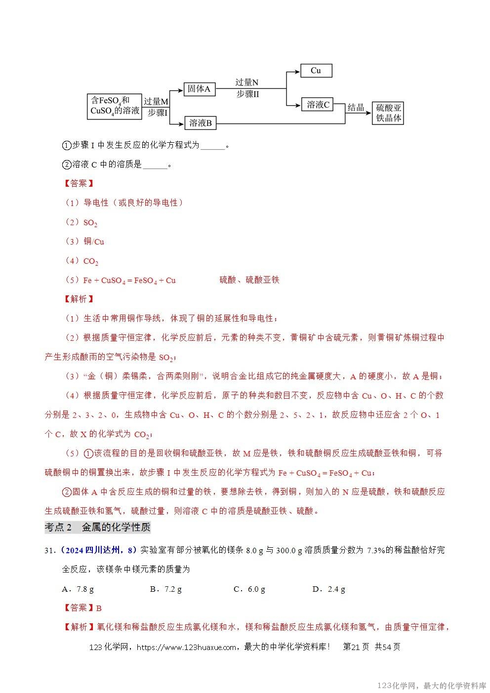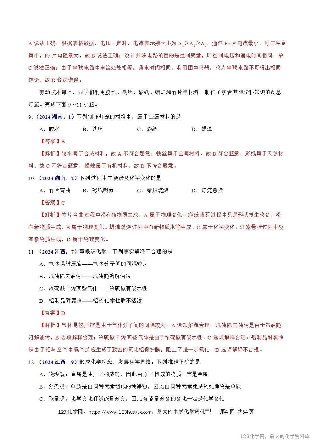 4.(2024江苏苏州,14)下列有关金属的说法正确的是