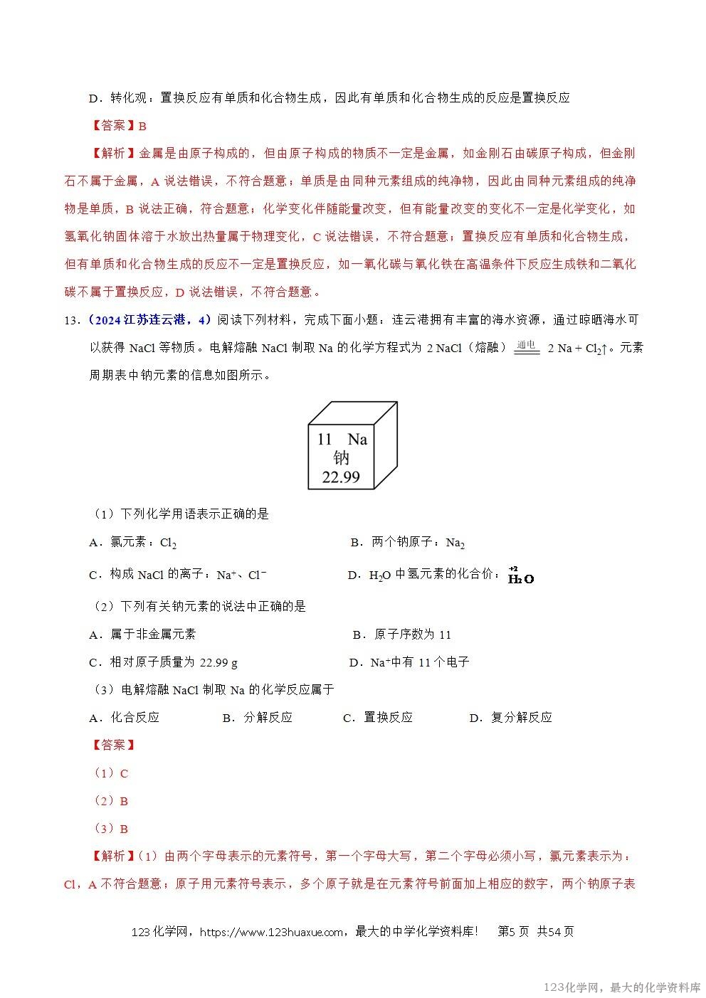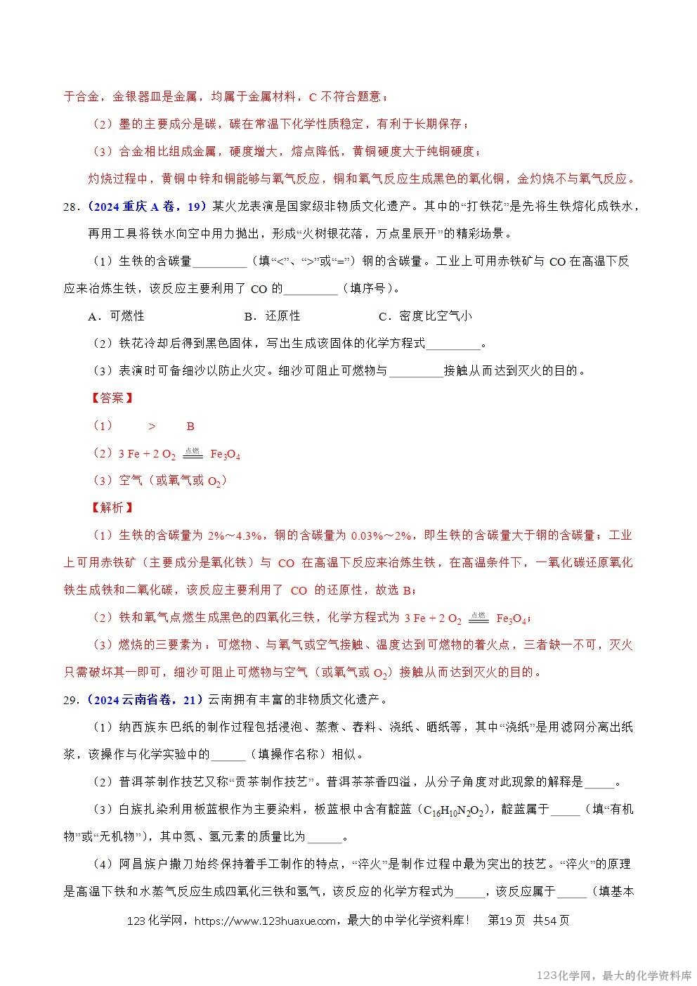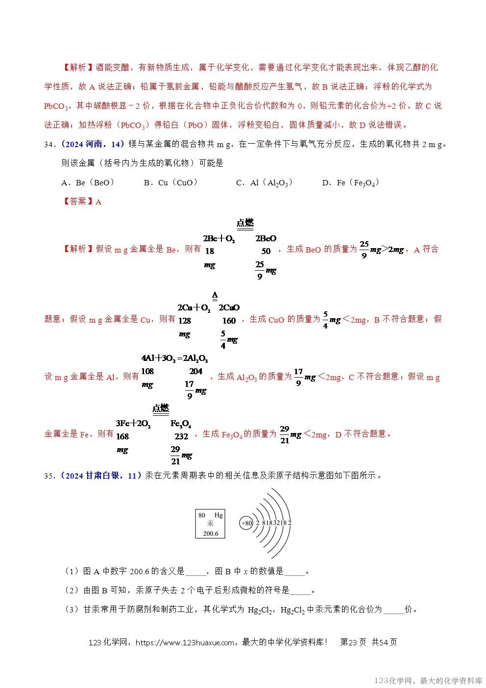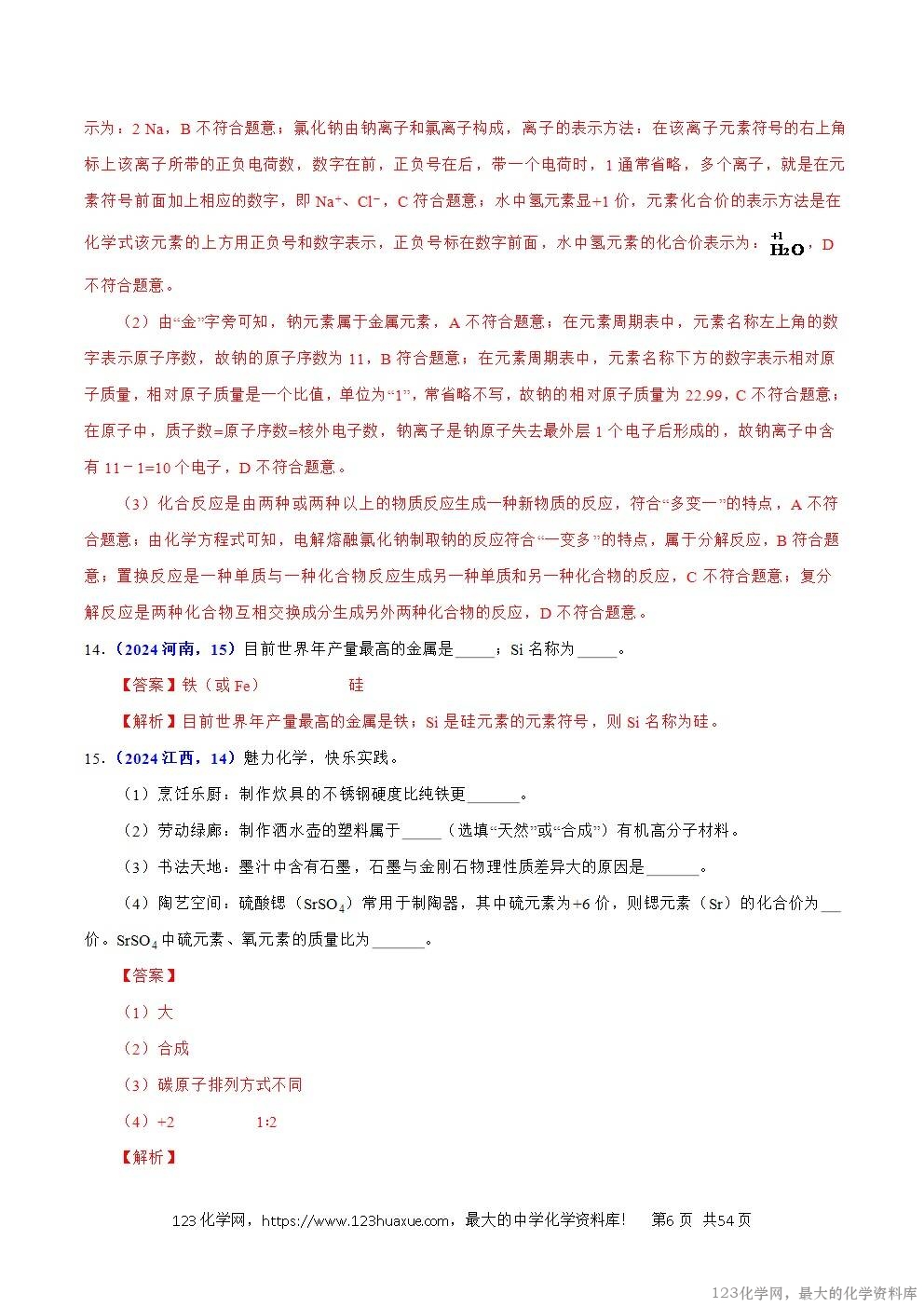 5.(2024山东烟台,8)中华传统文化中包含很多化学知识。下列对文献内容解释错误的是