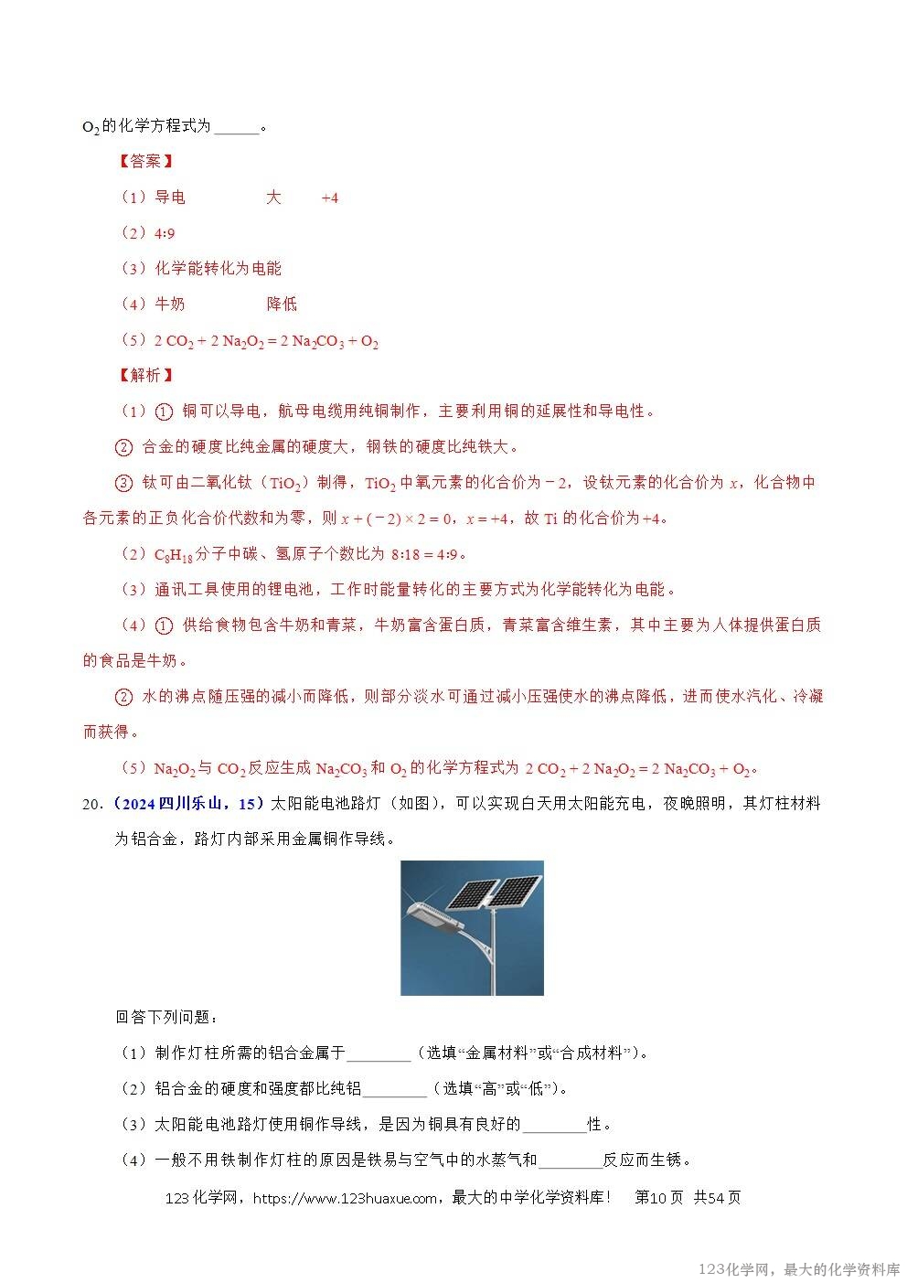 1.(2024江苏扬州,10)下列物质的性质和用途对应关系正确的是