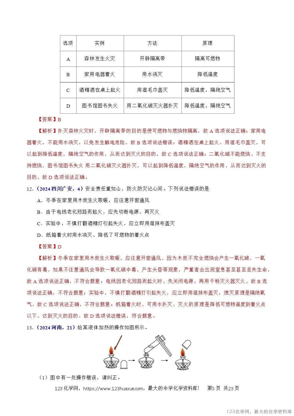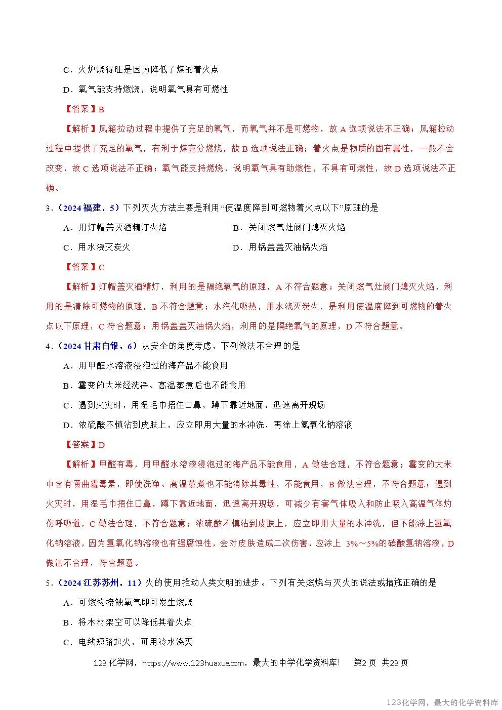 5.(2024江苏苏州,11)火的使用推动人类文明的进步。下列有关燃烧与灭火的说法或措施正确的是