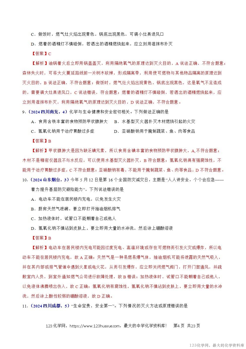4.(2024甘肃白银,6)从安全的角度考虑,下列做法不合理的是