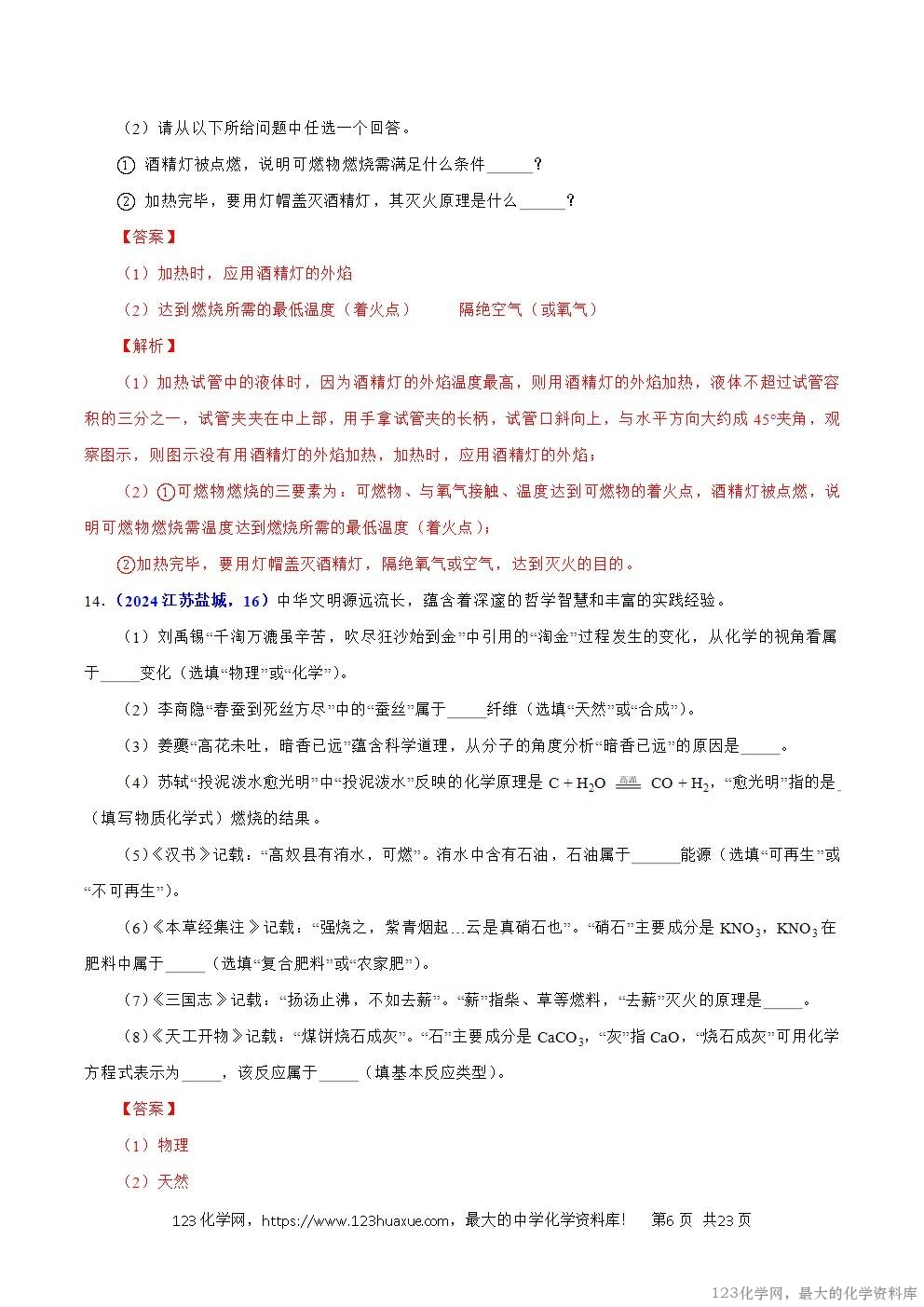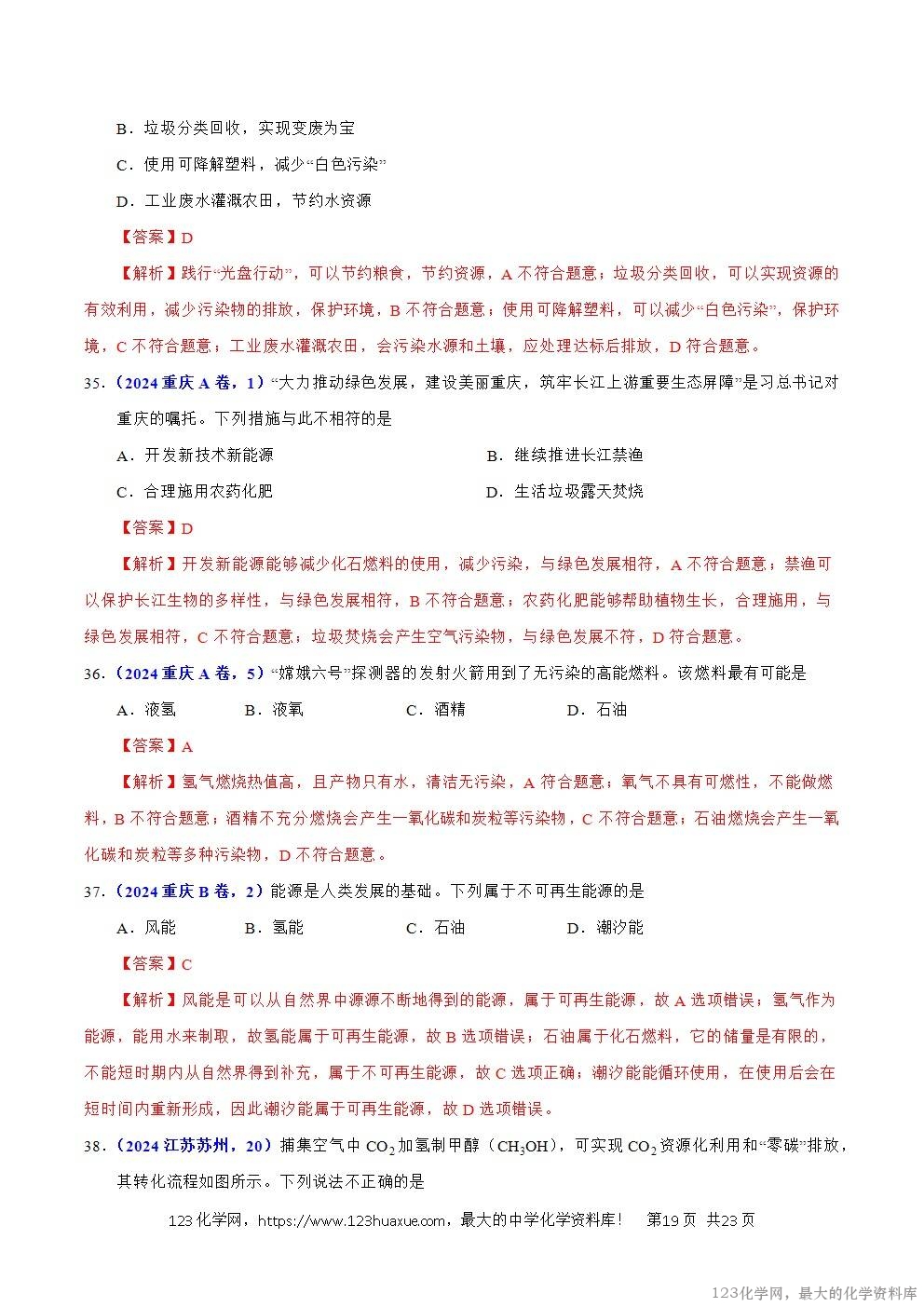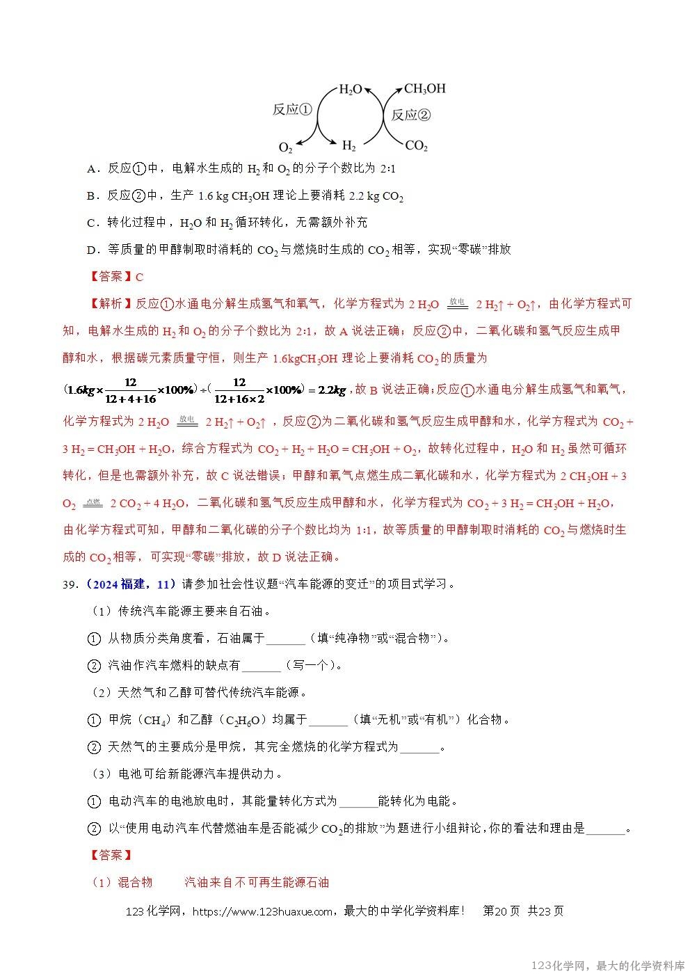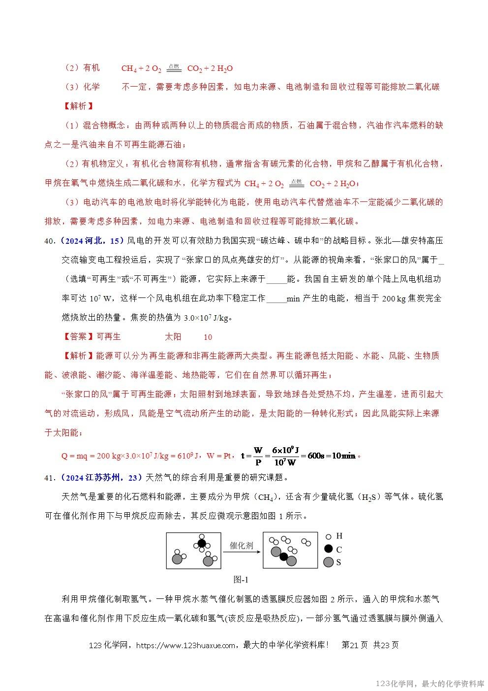2024年中考化学试卷分类汇编专题10化学与能源解析版word版