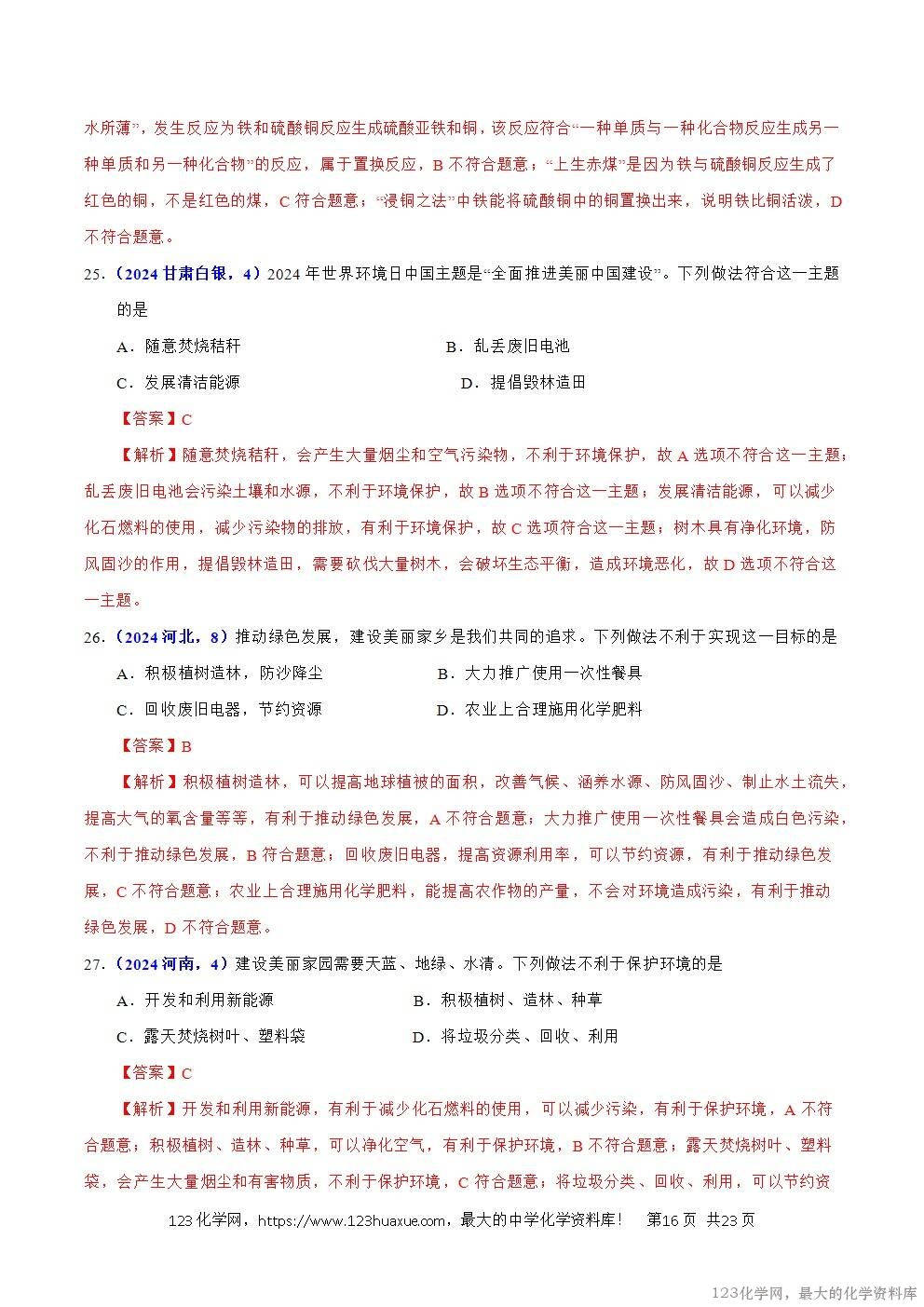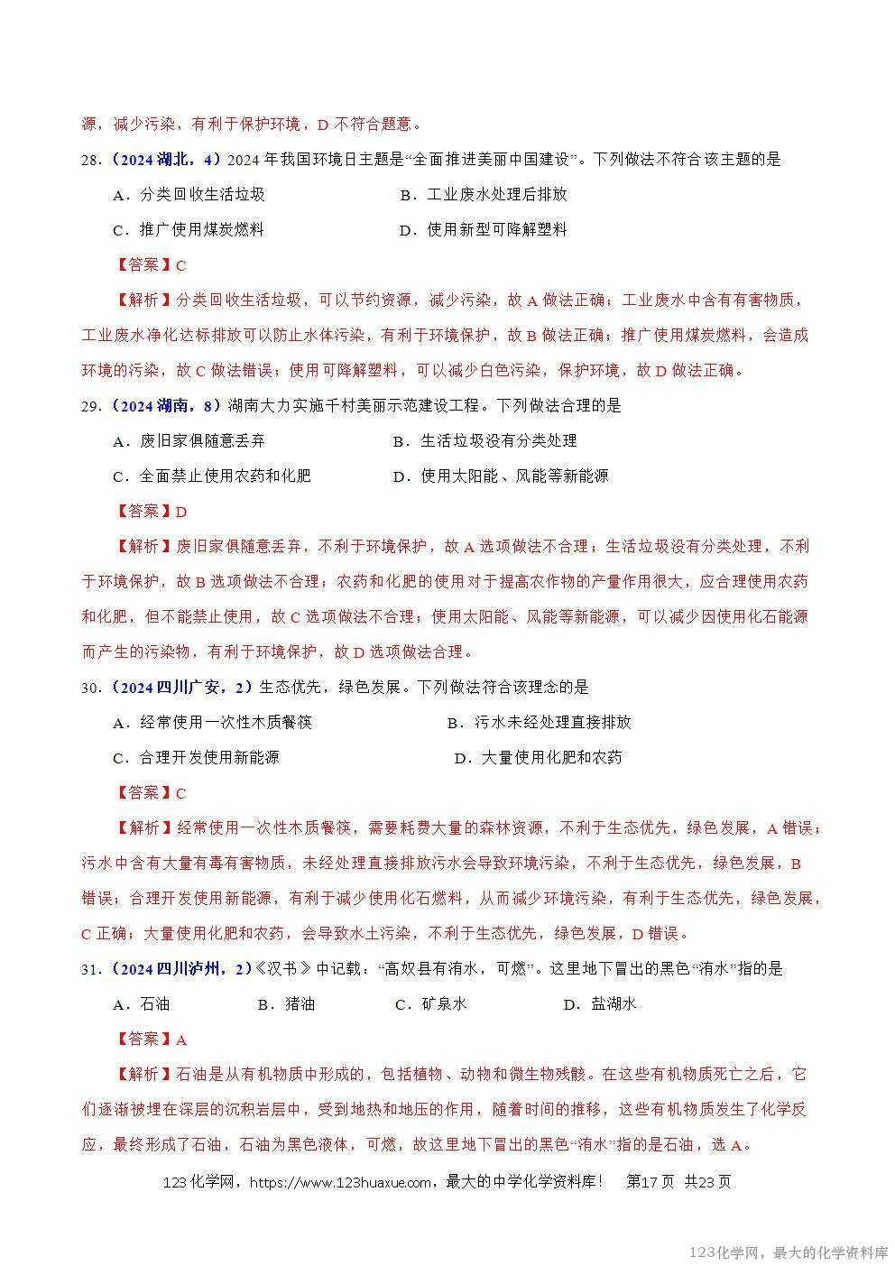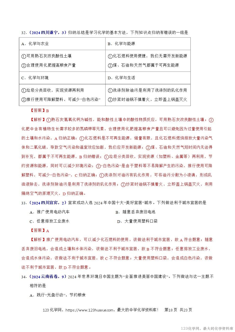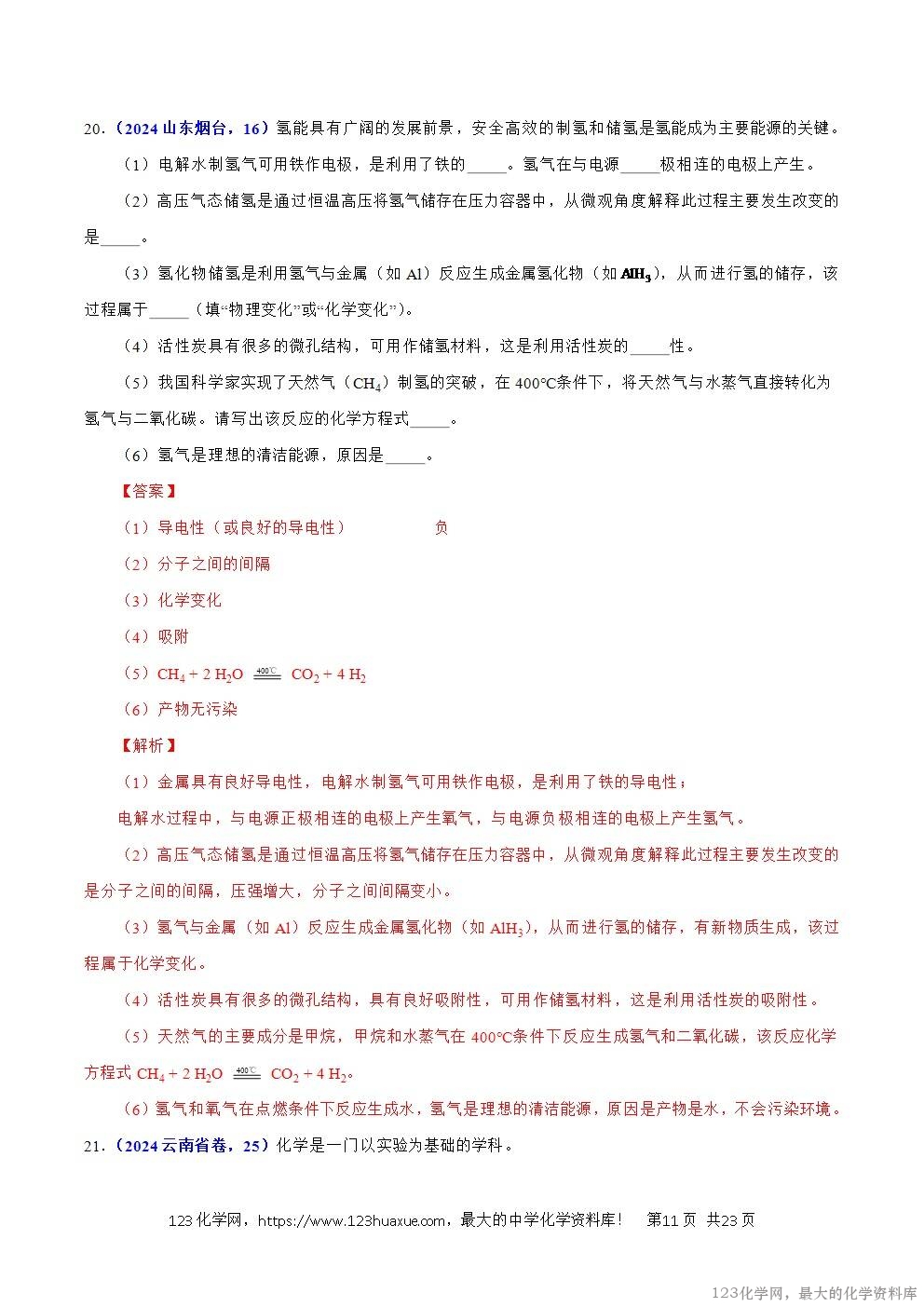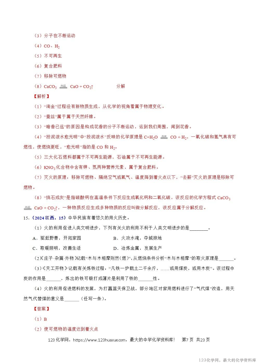 2024年中考化学试卷分类汇编专题10化学与能源解析版word版