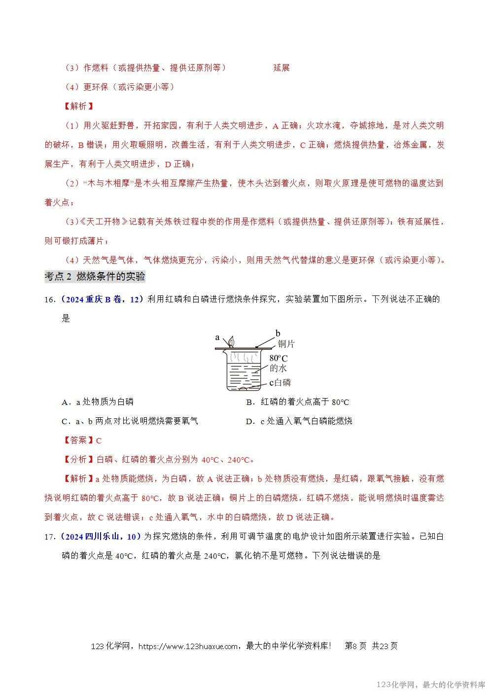 【解析】风箱拉动过程中提供了充足的氧气,而氧气并不是可燃物,故A选项说法不正确;风箱拉动过程中提供了充足的氧气,有利于煤充分燃烧,故B选项说法正确;着火点是物质的固有属性,一般不会改变,故C选项说法不正确;氧气能支持燃烧,说明氧气具有助燃性,不具有可燃性,故D选项说法不正确。