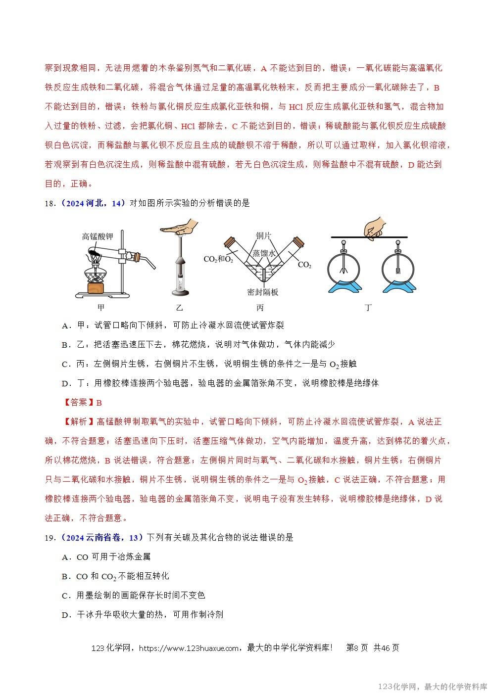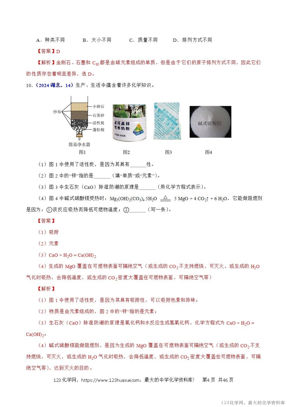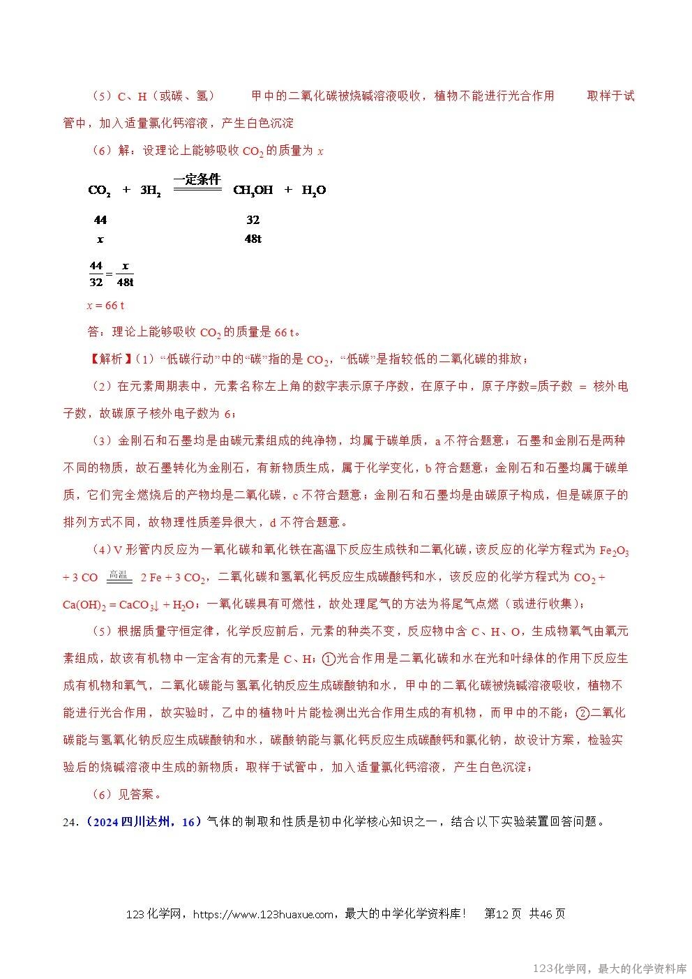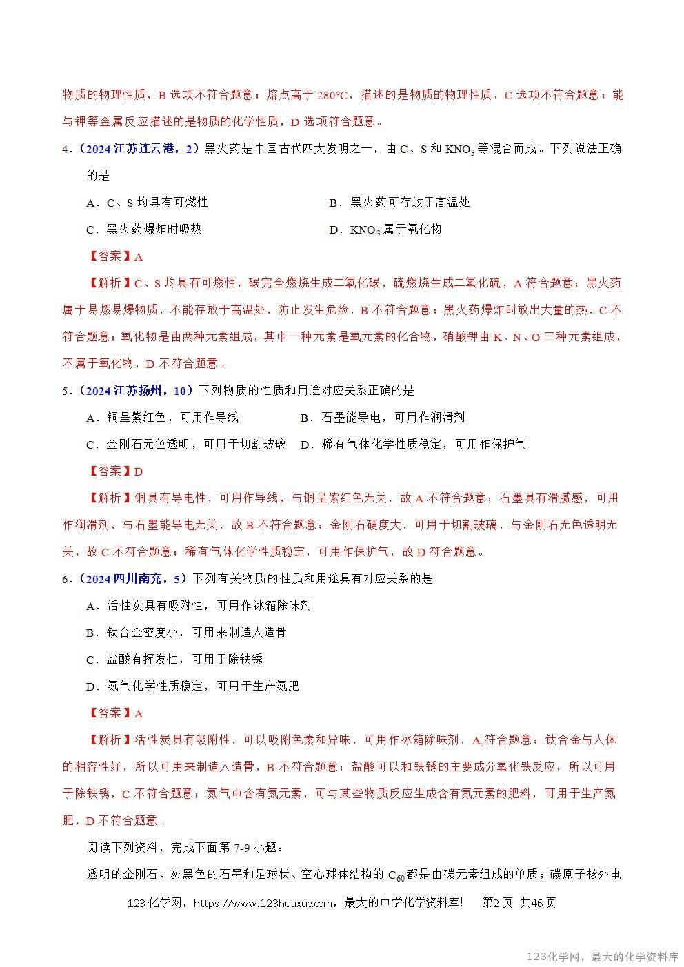 2024年中考化学试卷分类汇编专题09碳的单质及其氧化物解析版word版