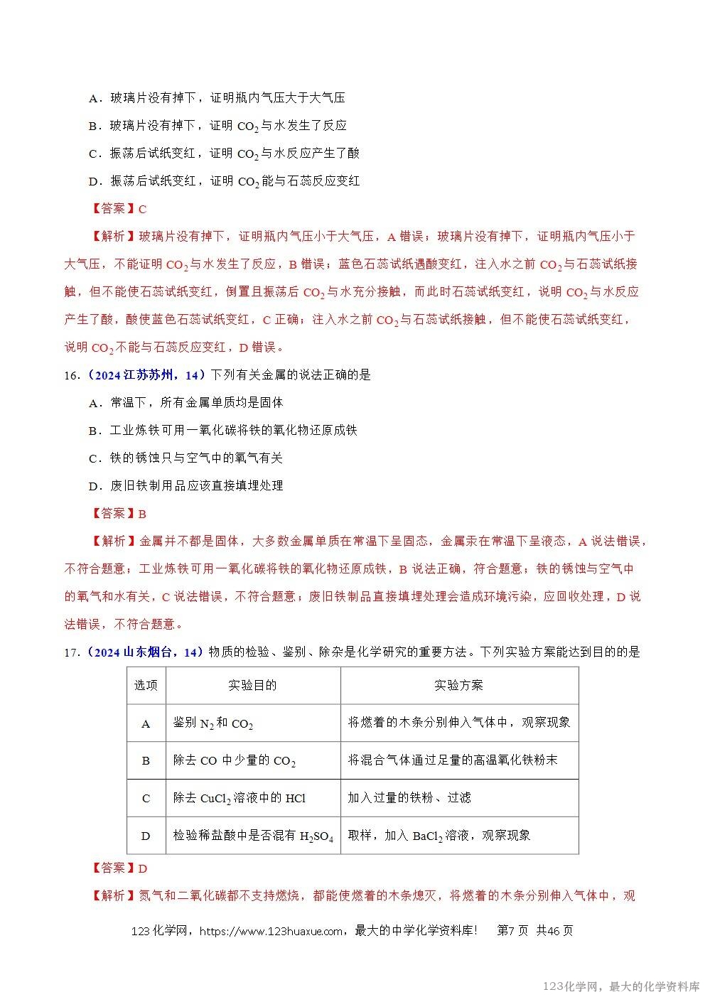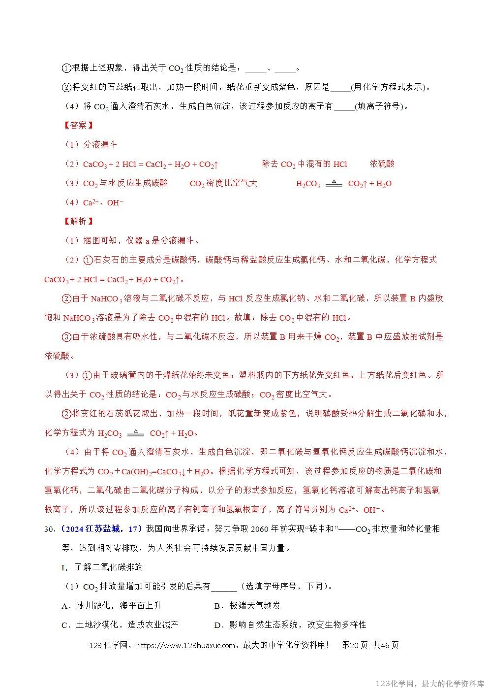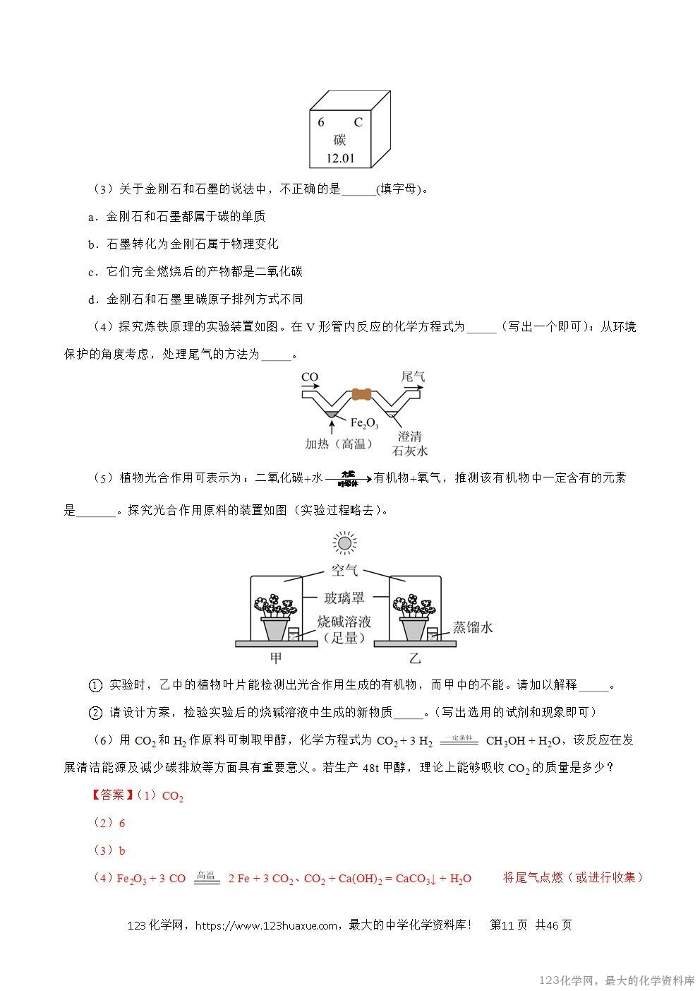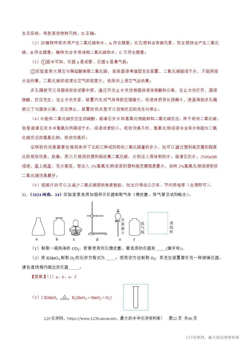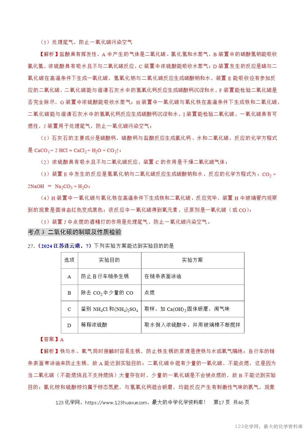 2024年中考化学试卷分类汇编专题09碳的单质及其氧化物解析版word版