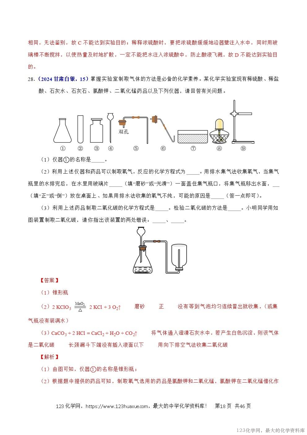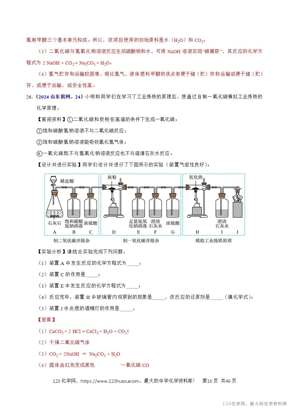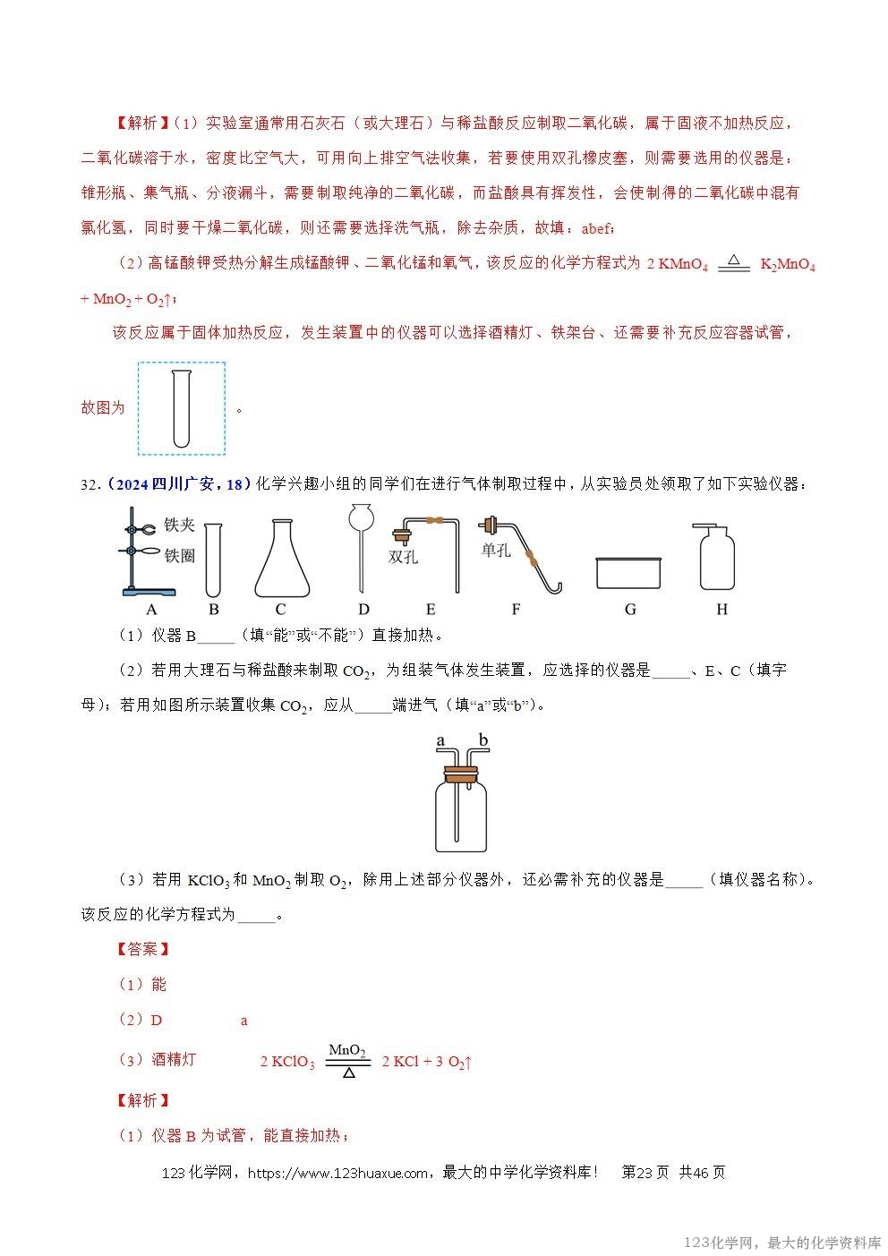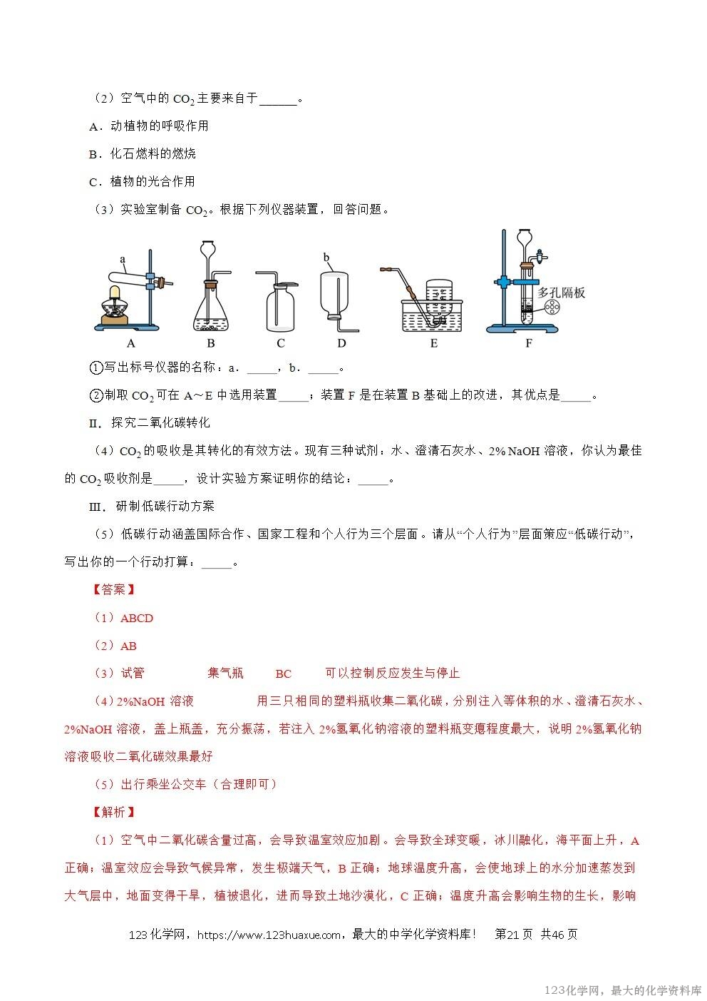 2024年中考化学试卷分类汇编专题09碳的单质及其氧化物解析版word版