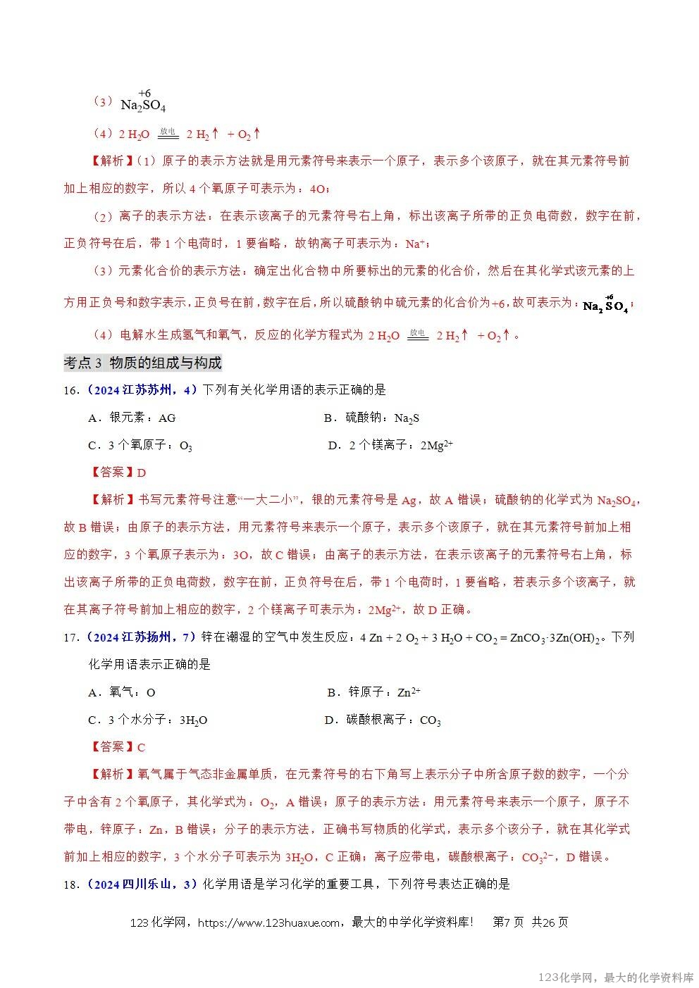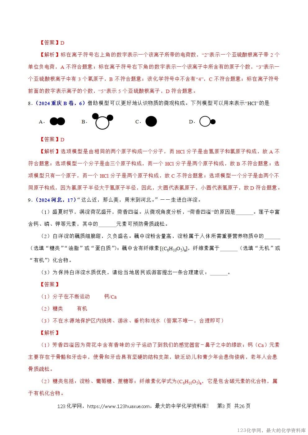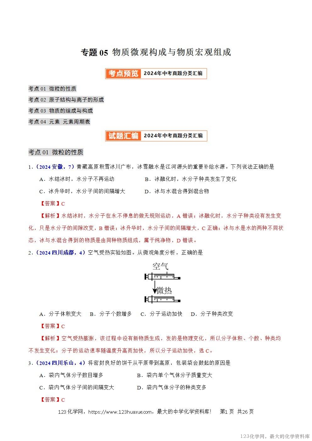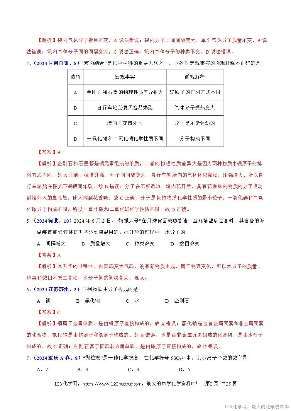 2024年中考化学试卷分类汇编专题05物质微观构成与物质宏观组成解析版word版