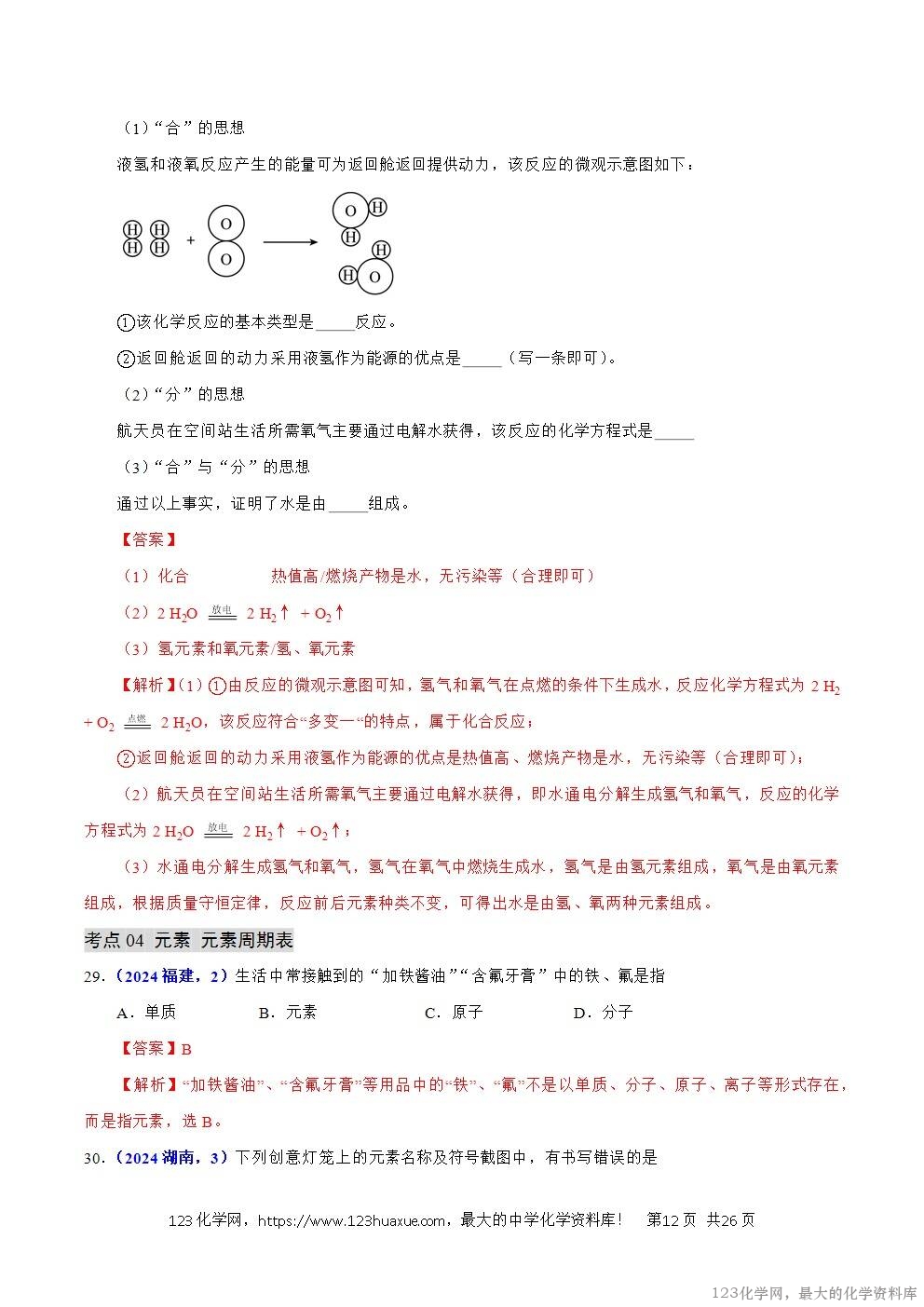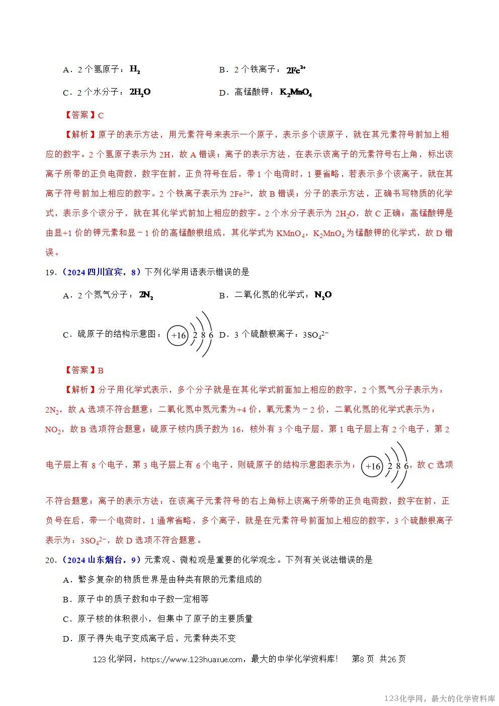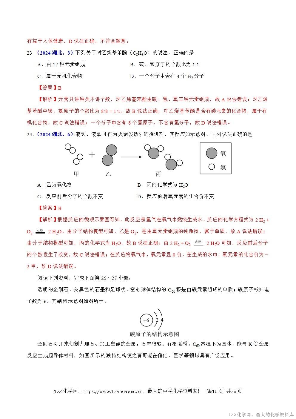 2024年中考化学试卷分类汇编专题05物质微观构成与物质宏观组成解析版word版