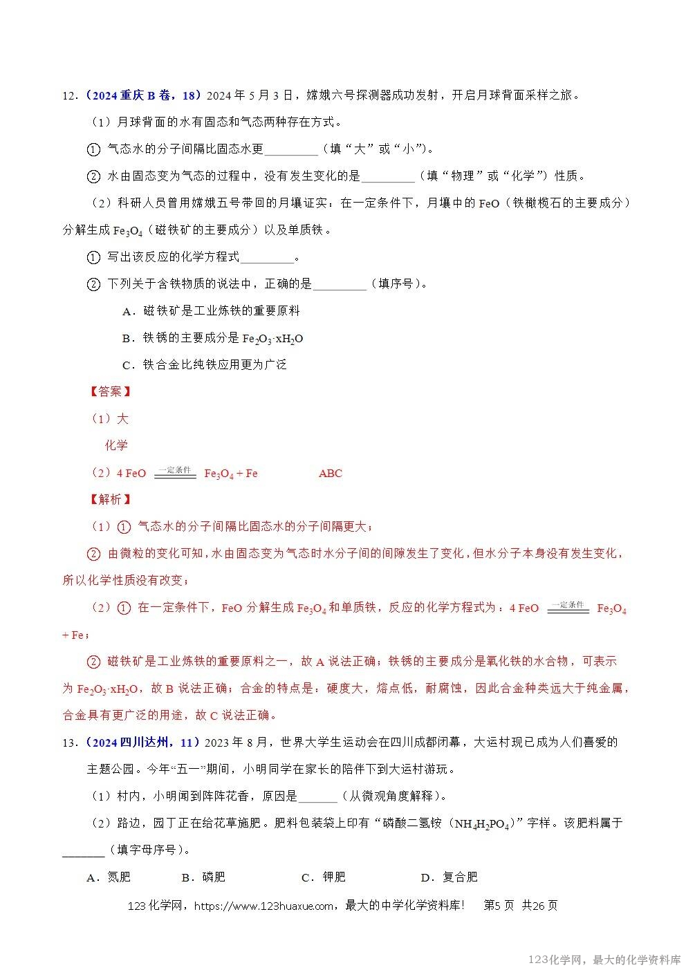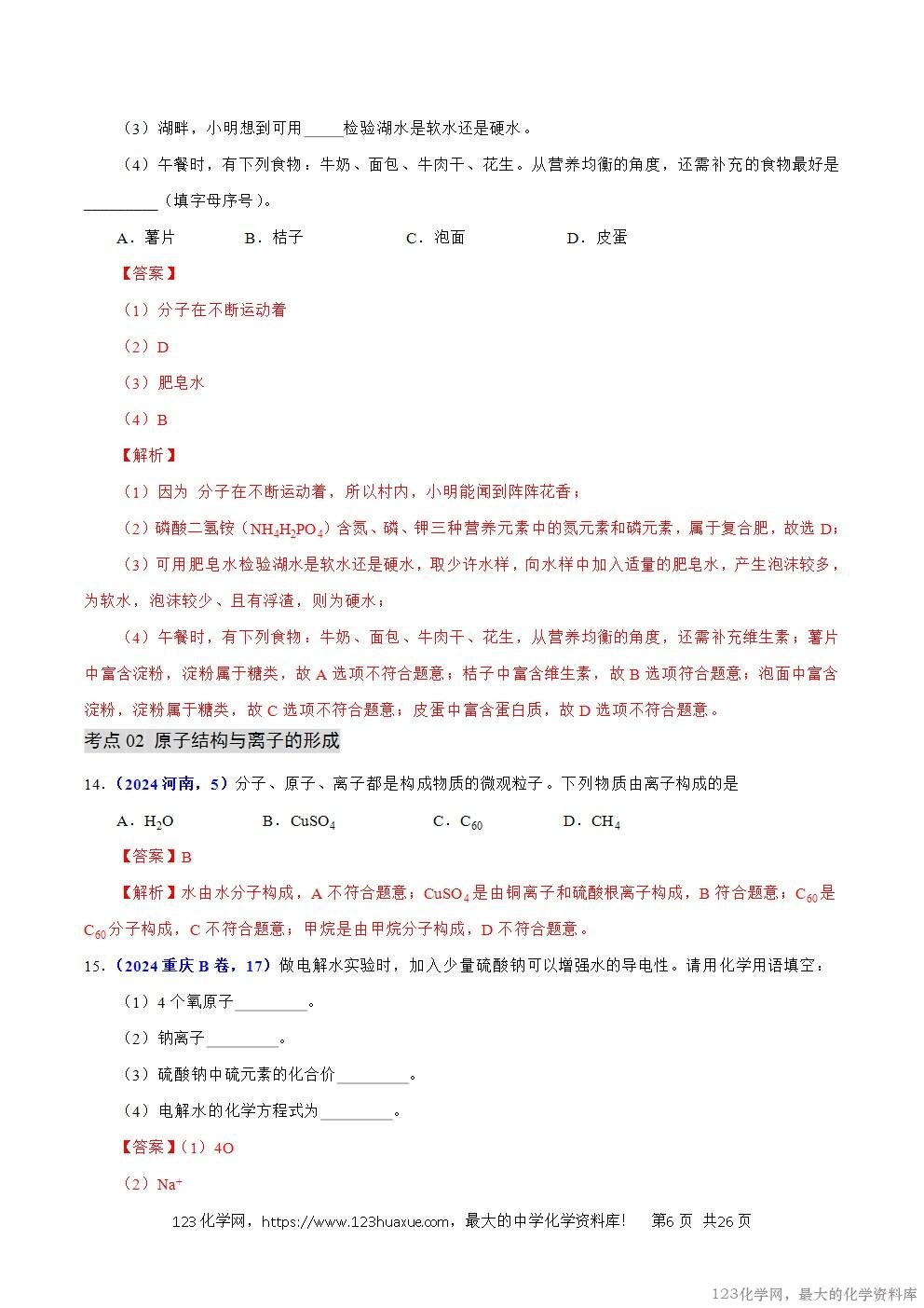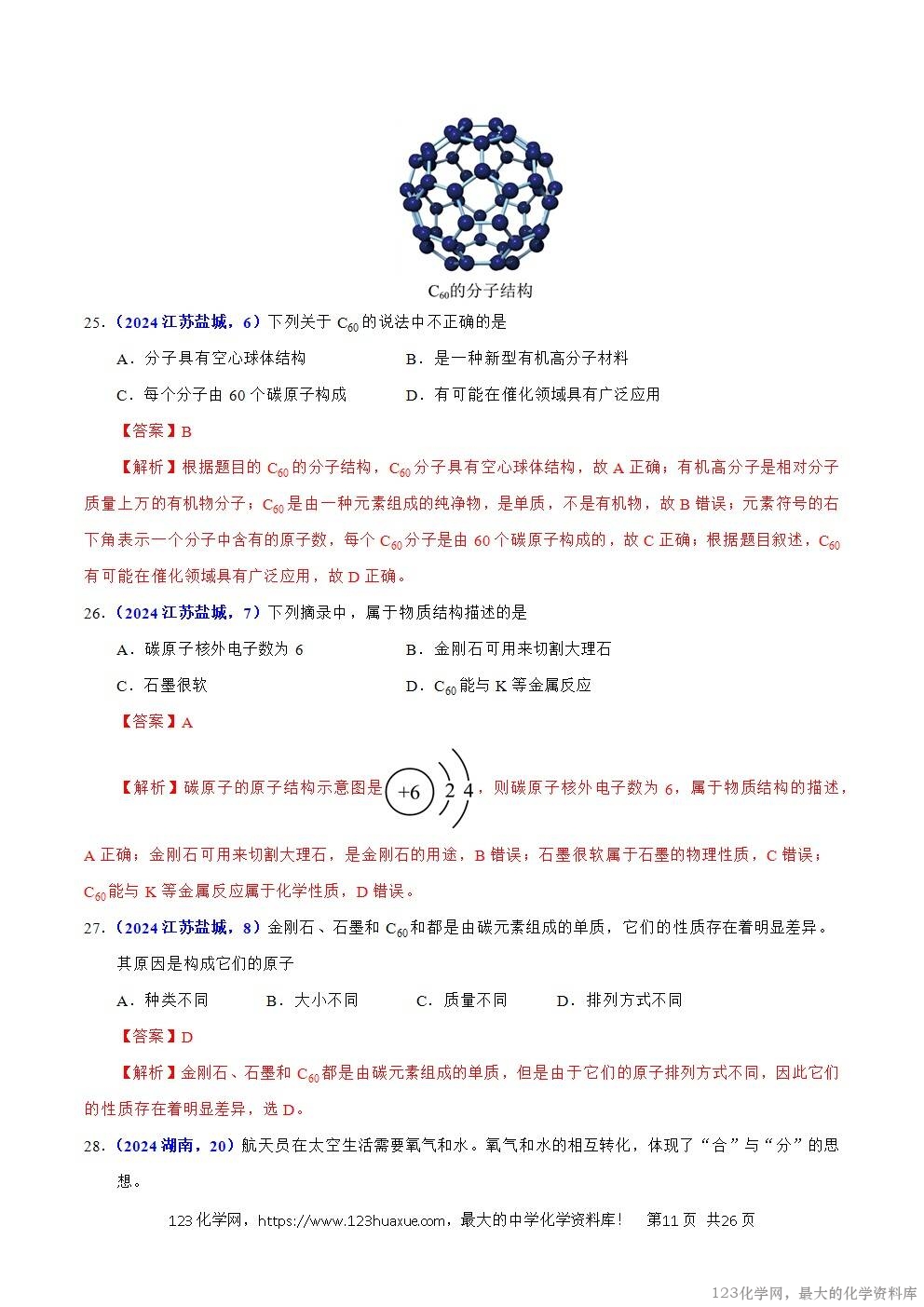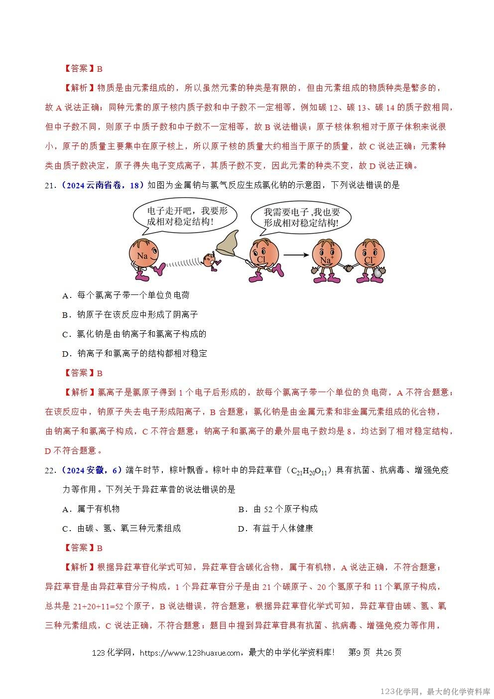 2024年中考化学试卷分类汇编专题05物质微观构成与物质宏观组成解析版word版