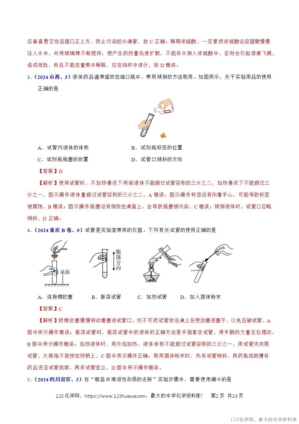 4.(2024重庆B卷,9)试管是实验室常用的仪器。下列有关试管的使用正确的是