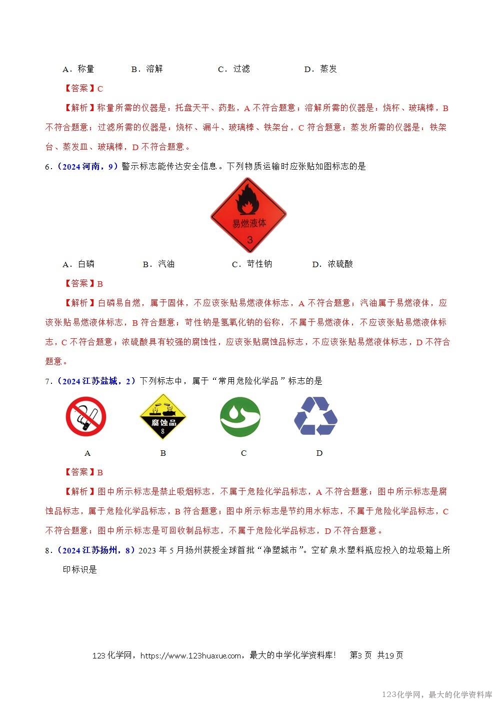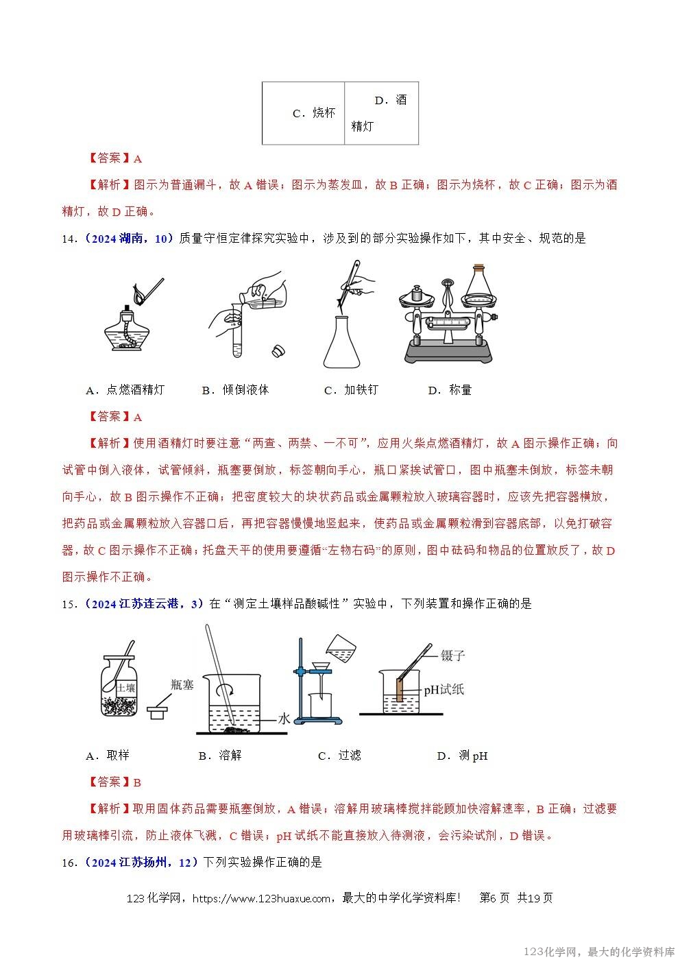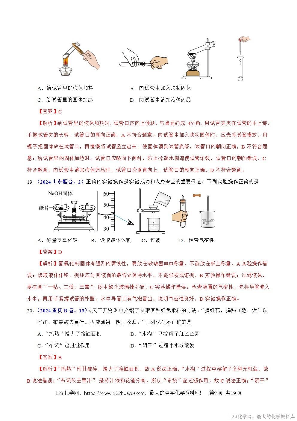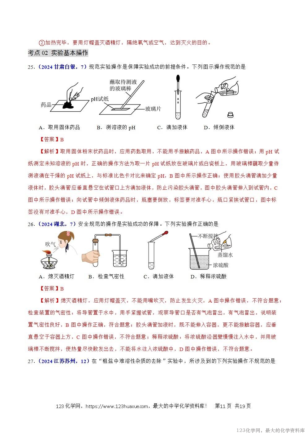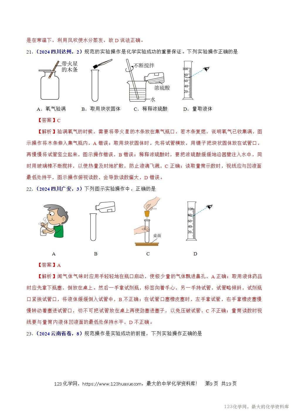 3.(2024山西,3)液体药品通常盛放在细口瓶中,常用倾倒的方法取用。如图所示,关于实验用品的使用正确的是