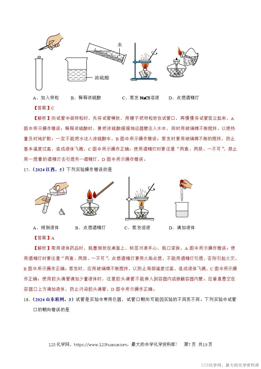 C.试剂瓶瓶塞的放置 D.试管口倾斜的方向