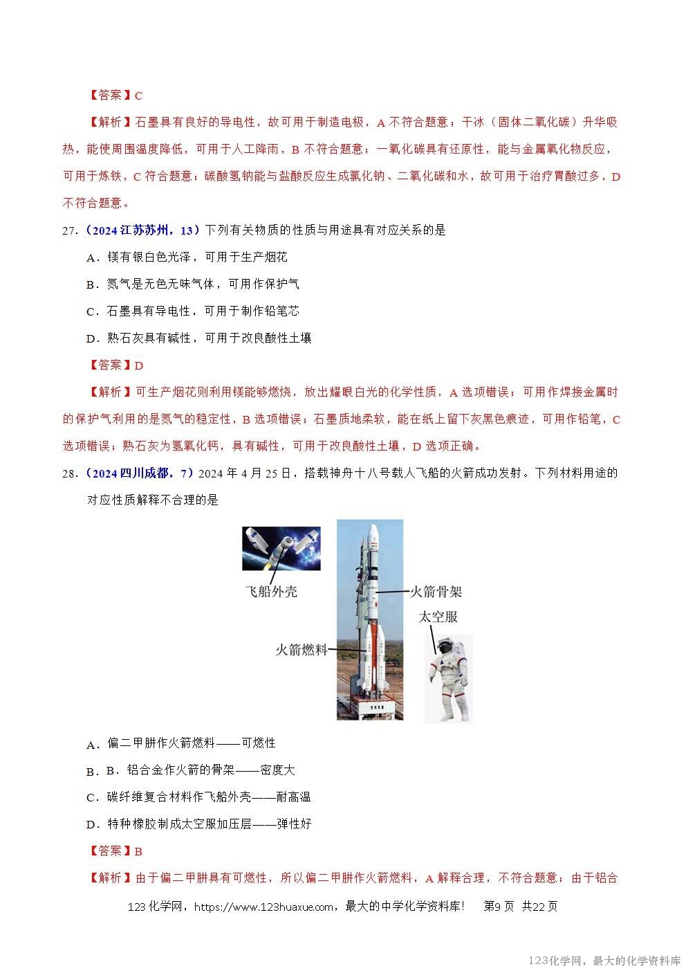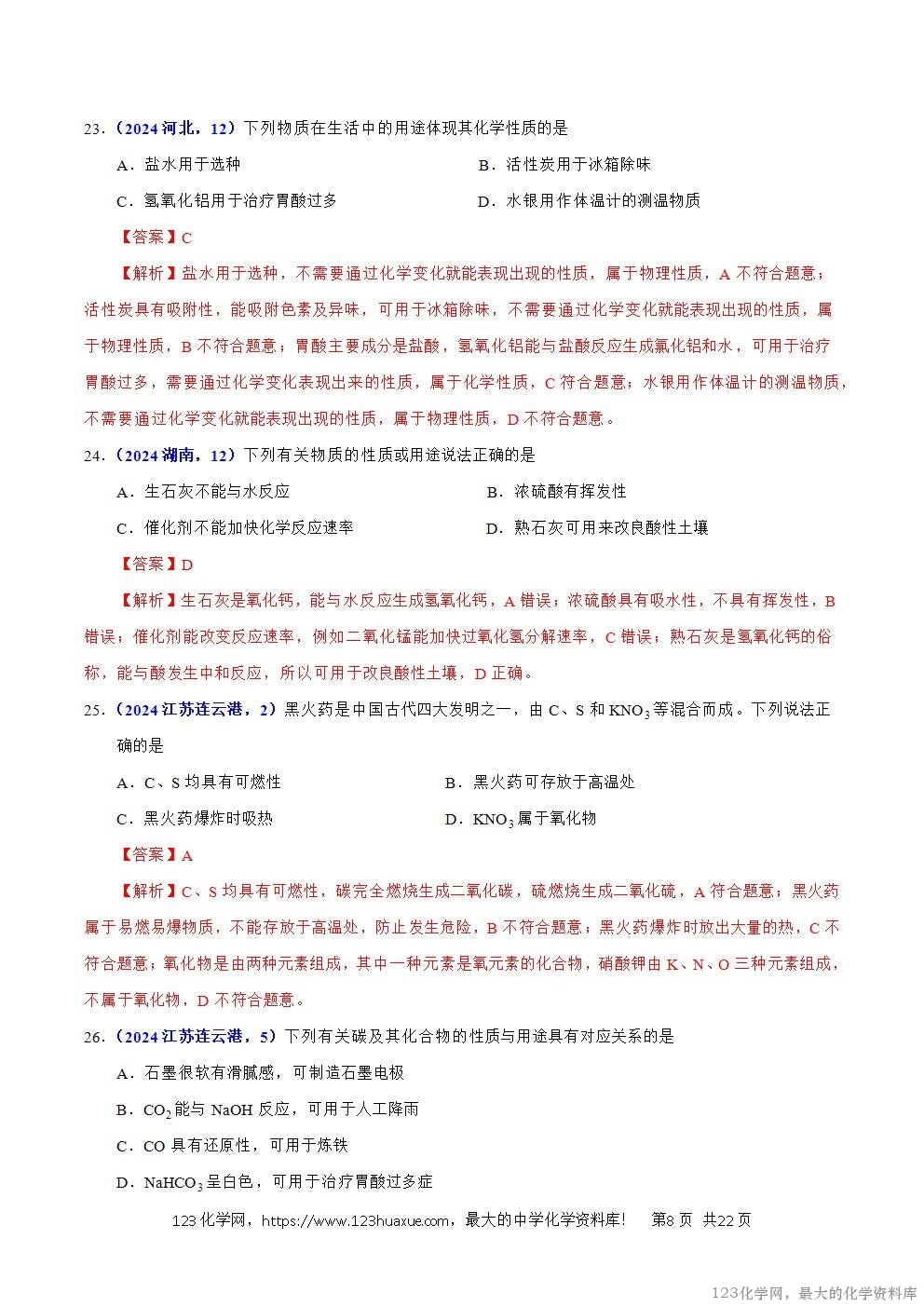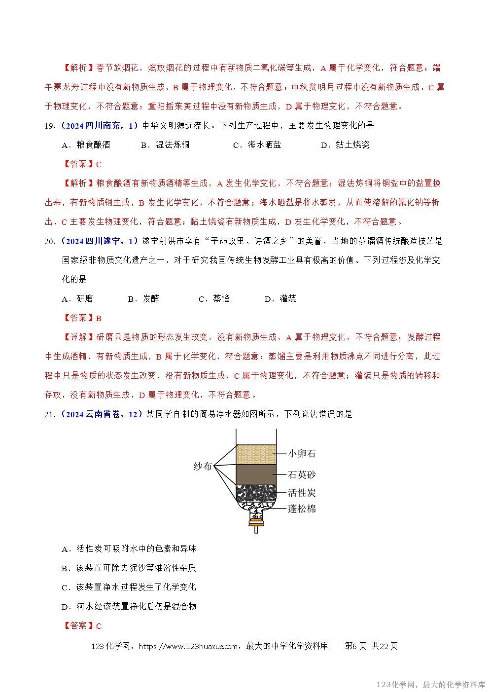 6.(2024山东滨州,1)成语是中华民族文明与智慧的结晶,是中华文化的瑰宝。下列成语所描述的情境主要包含化学变化的是