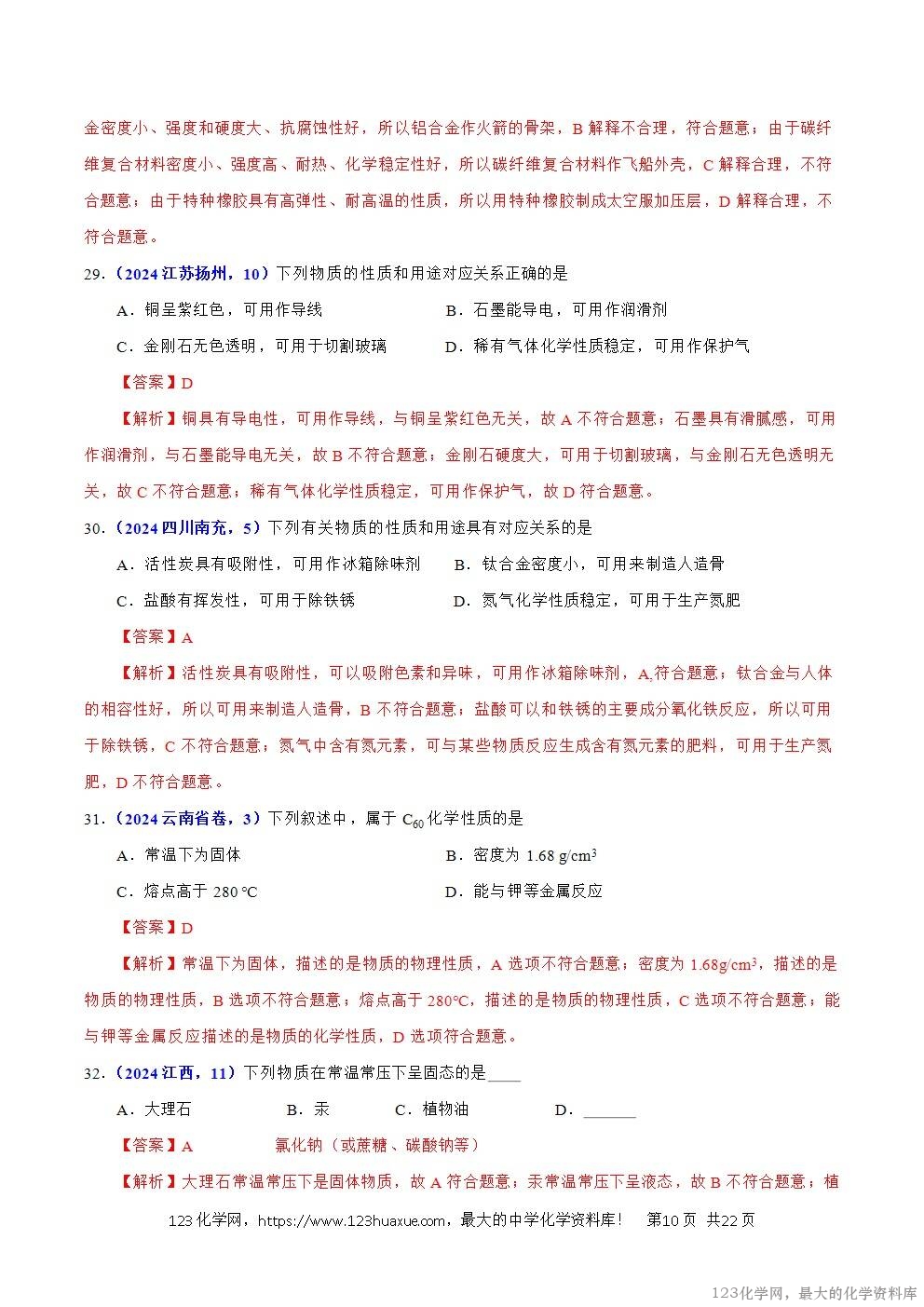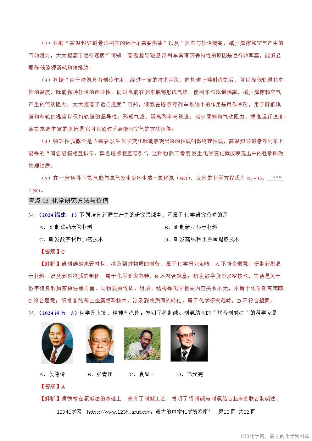 4.(2024河南,1)我国的古代发明及应用所包含的下列物质变化中,不涉及化学变化的是