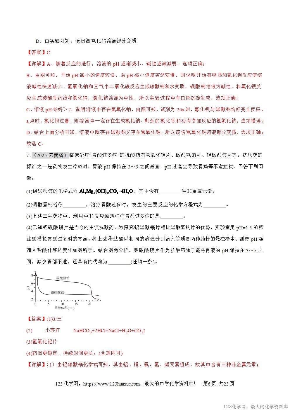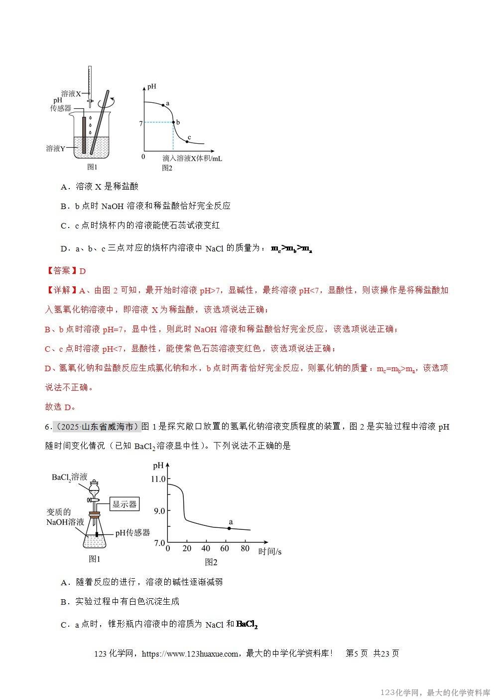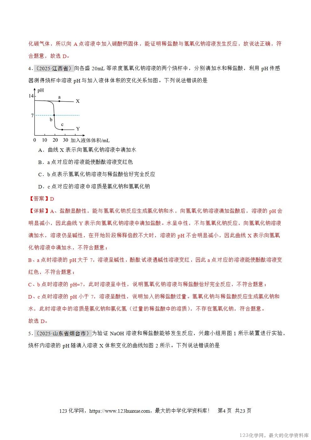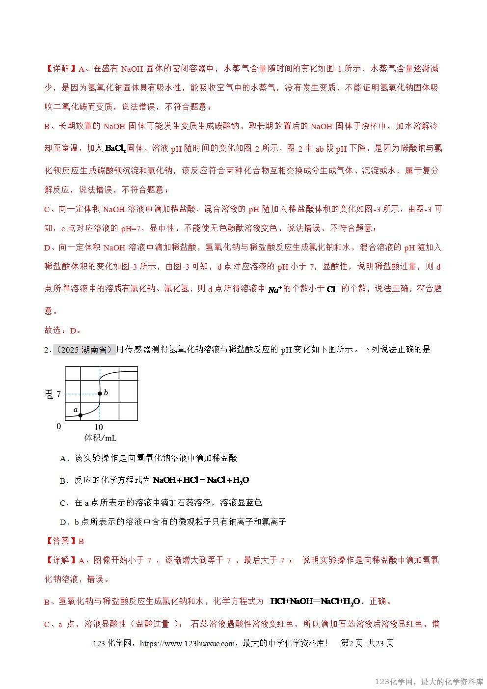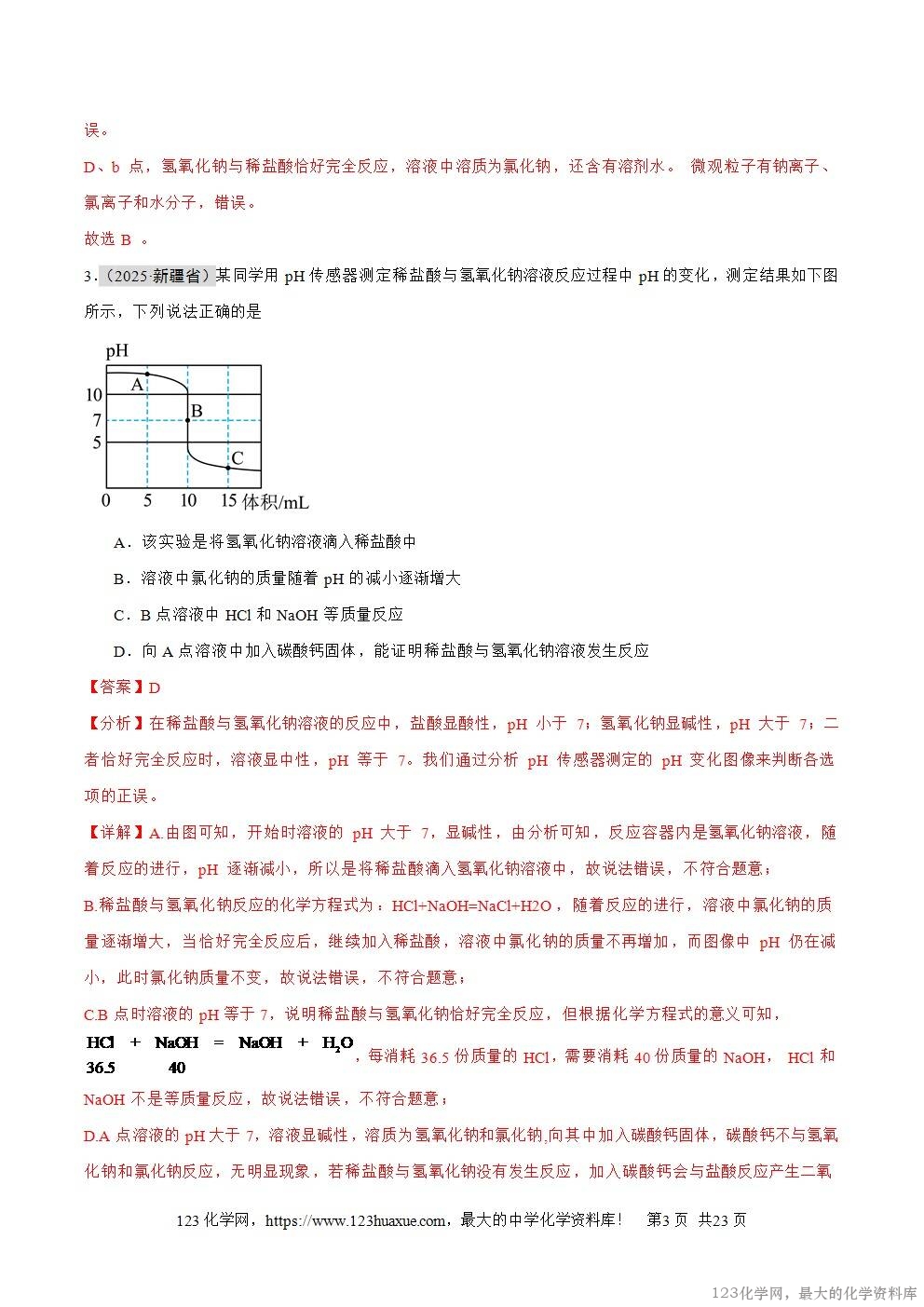 2.(2025·湖南省)用传感器测得氢氧化钠溶液与稀盐酸反应的pH变化如下图所示。下列说法正确的是