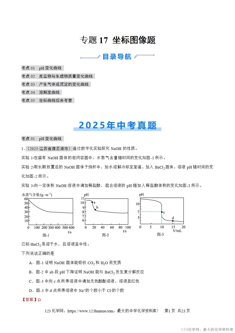 1.(2025·江苏省连云港市)通过数字化实验探究NaOH的性质。