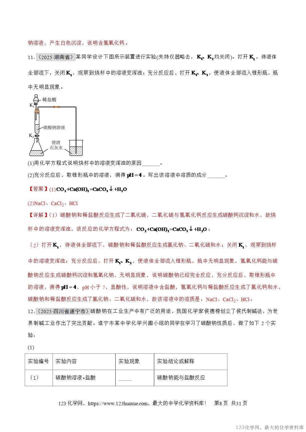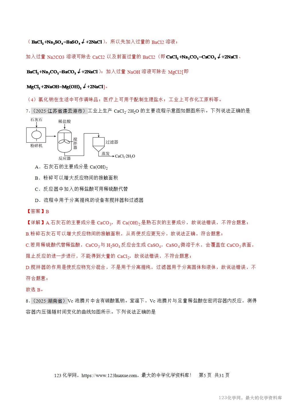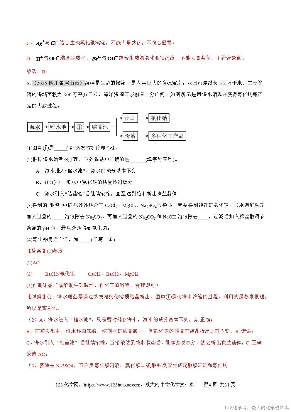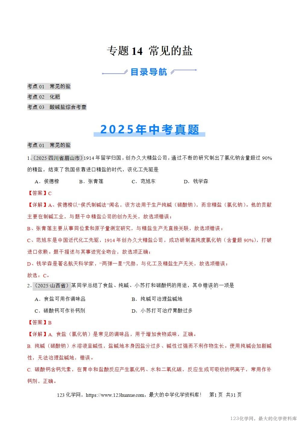 1.(2025·四川省眉山市)1914年留学归国,创办久大精盐公司,通过不断的研究制出了氯化钠含量超过90%的精盐,结束了我国依靠进口精盐的时代,该化工先驱是