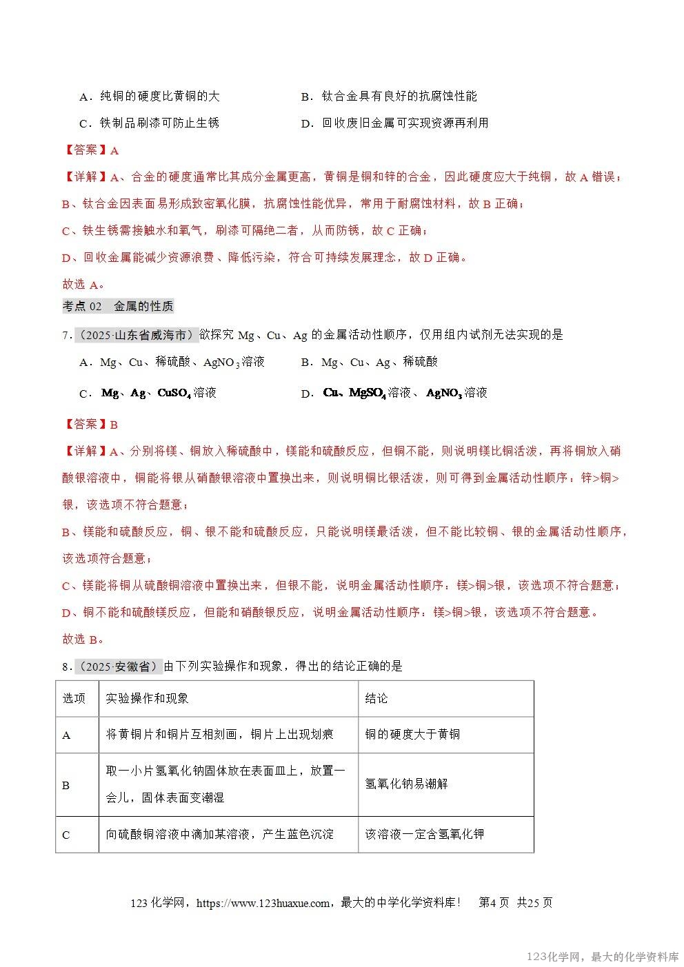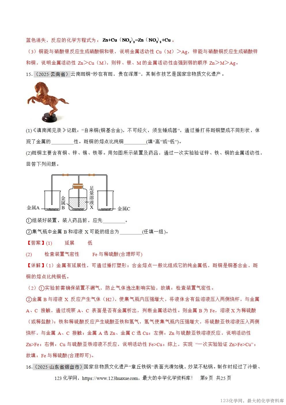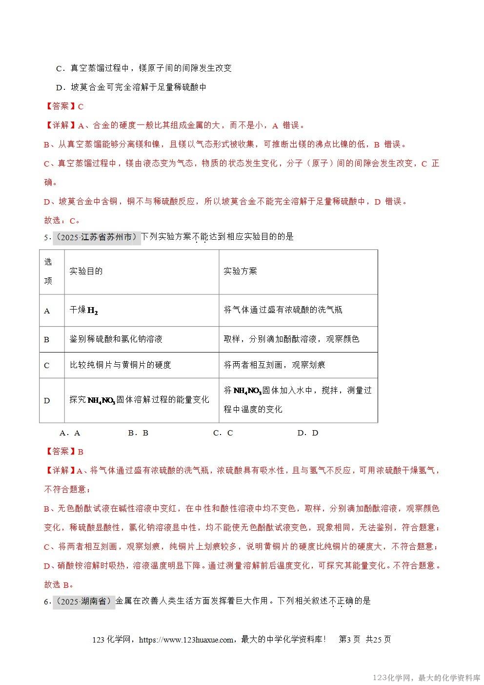 5.(2025·湖北省武汉市)汉字是中华文化的瑰宝,曾书于竹帛、镂于金石、琢于盘盂。兽骨、青铜、丝绸、竹木都曾为汉字的记录载体,其中属于合金的是