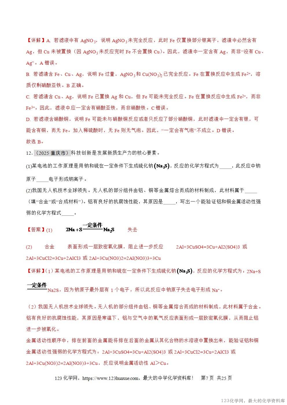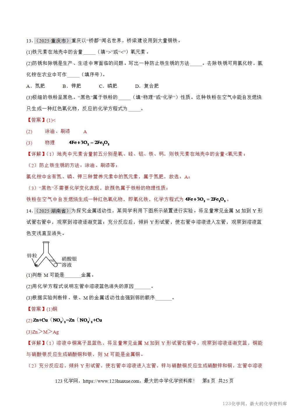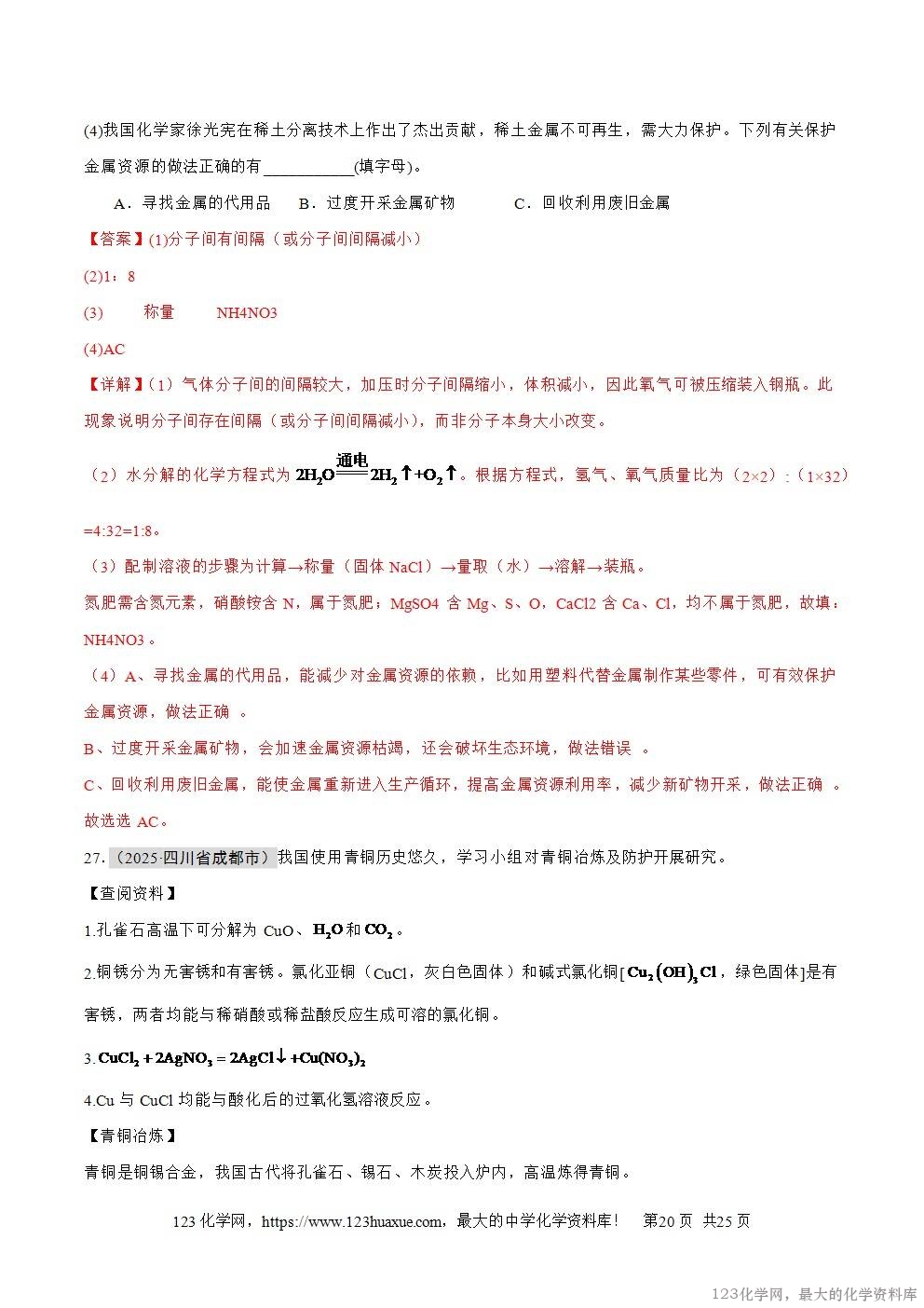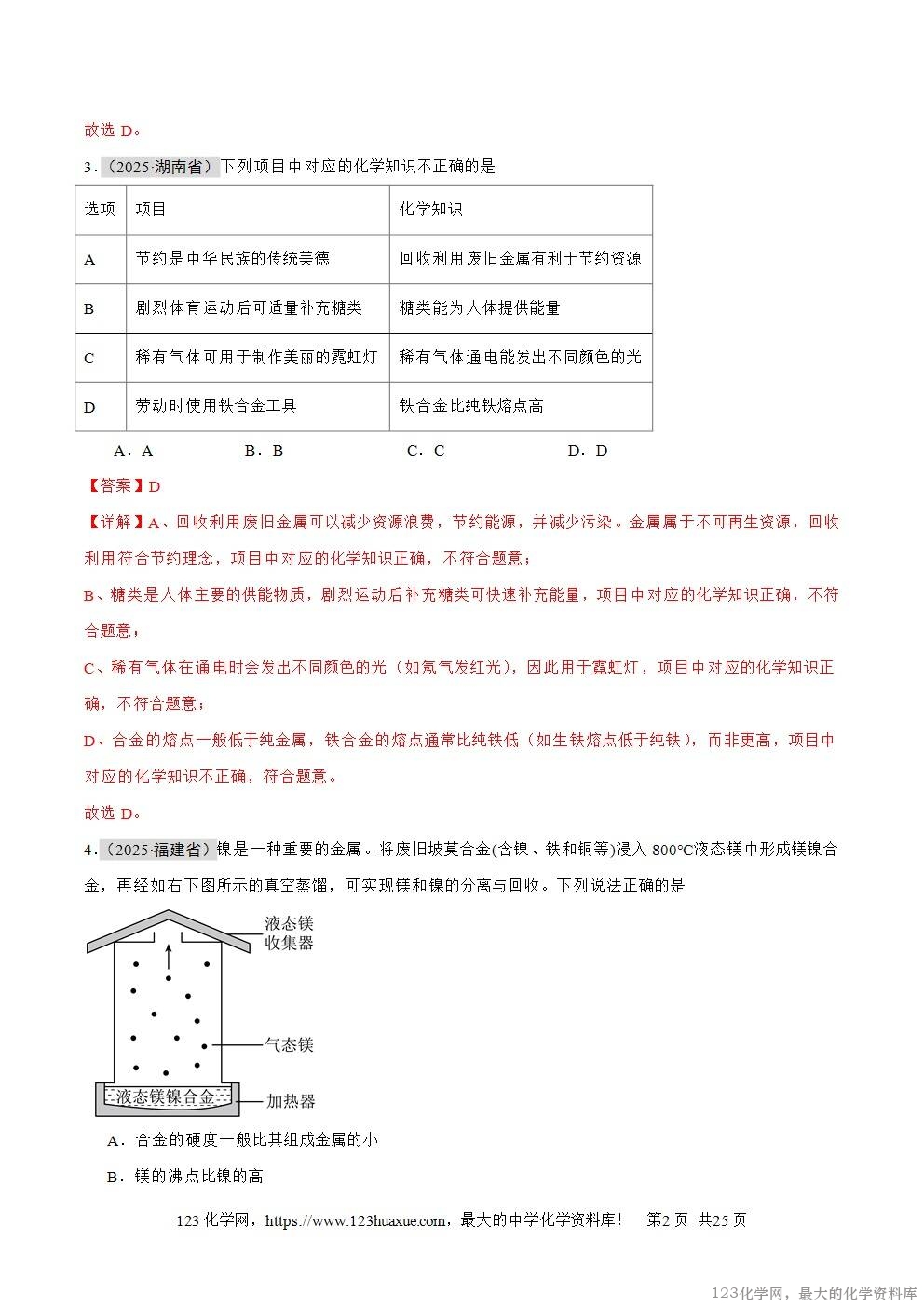 5.(2025·湖北省武汉市)汉字是中华文化的瑰宝,曾书于竹帛、镂于金石、琢于盘盂。兽骨、青铜、丝绸、竹木都曾为汉字的记录载体,其中属于合金的是