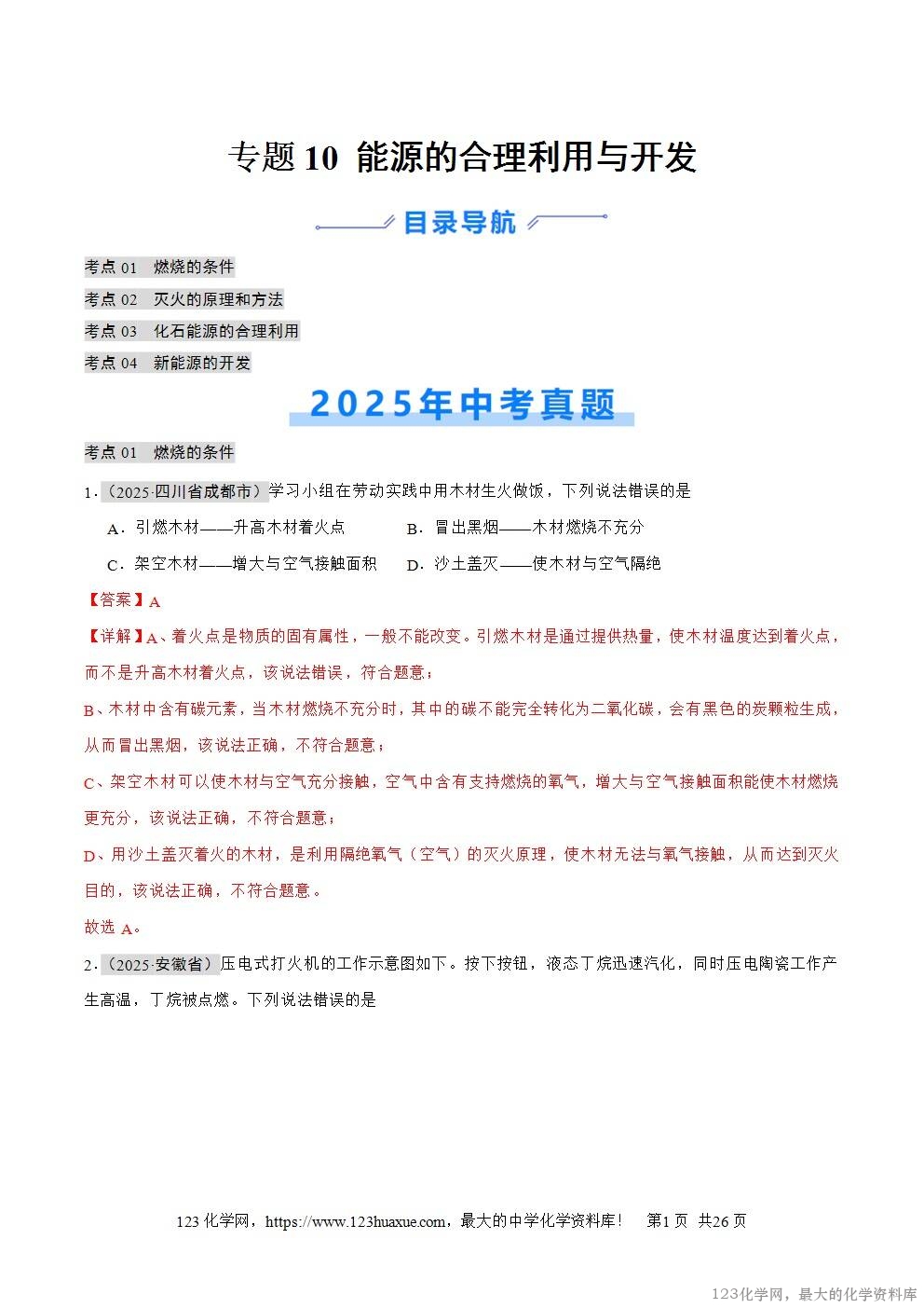 1.(2025·四川省成都市)学习小组在劳动实践中用木材生火做饭,下列说法错误的是