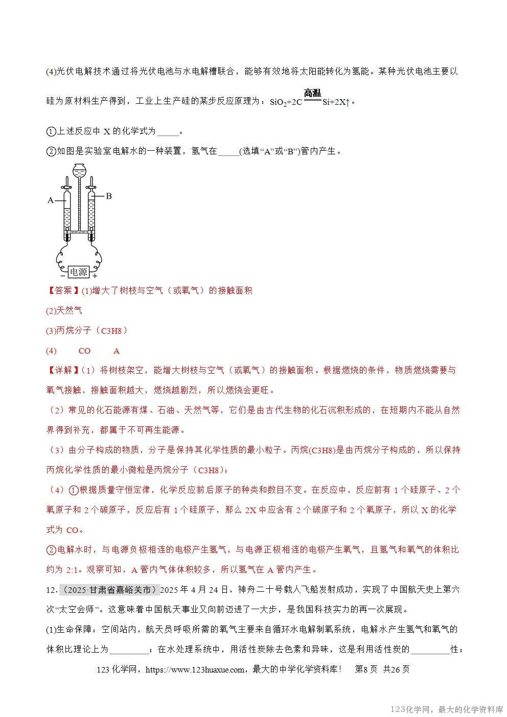 B、木柴架空后,空气更易流通,增大了与氧气的接触面积,使燃烧更充分。此描述正确,故B正确;