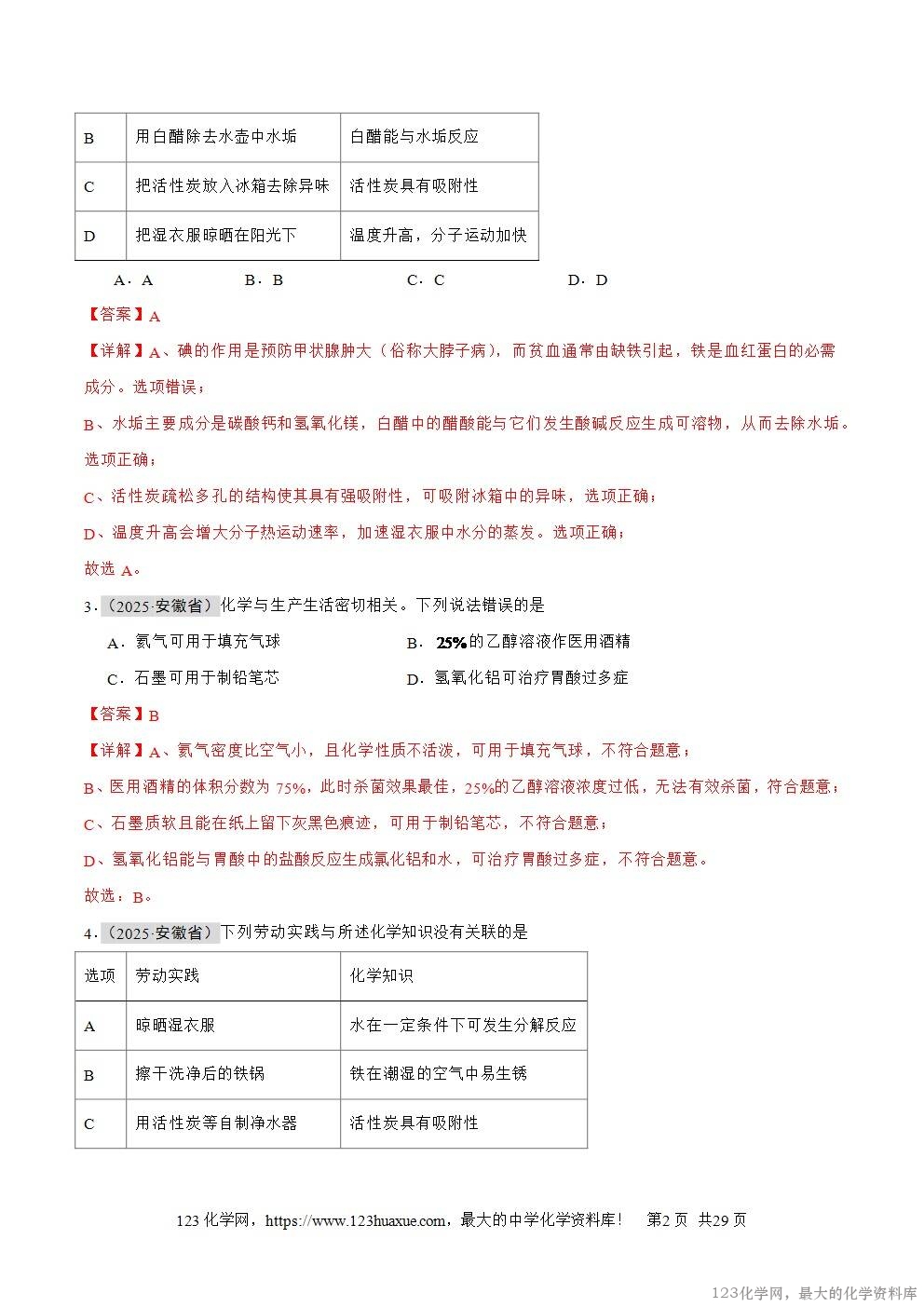 3.(2025·安徽省)化学与生产生活密切相关。下列说法错误的是