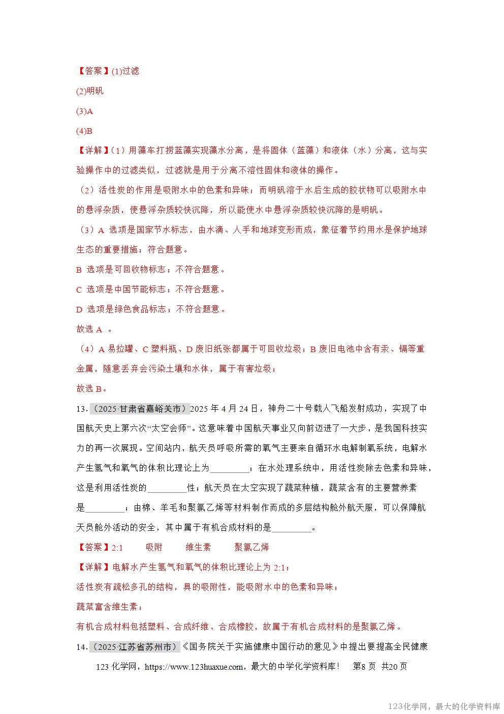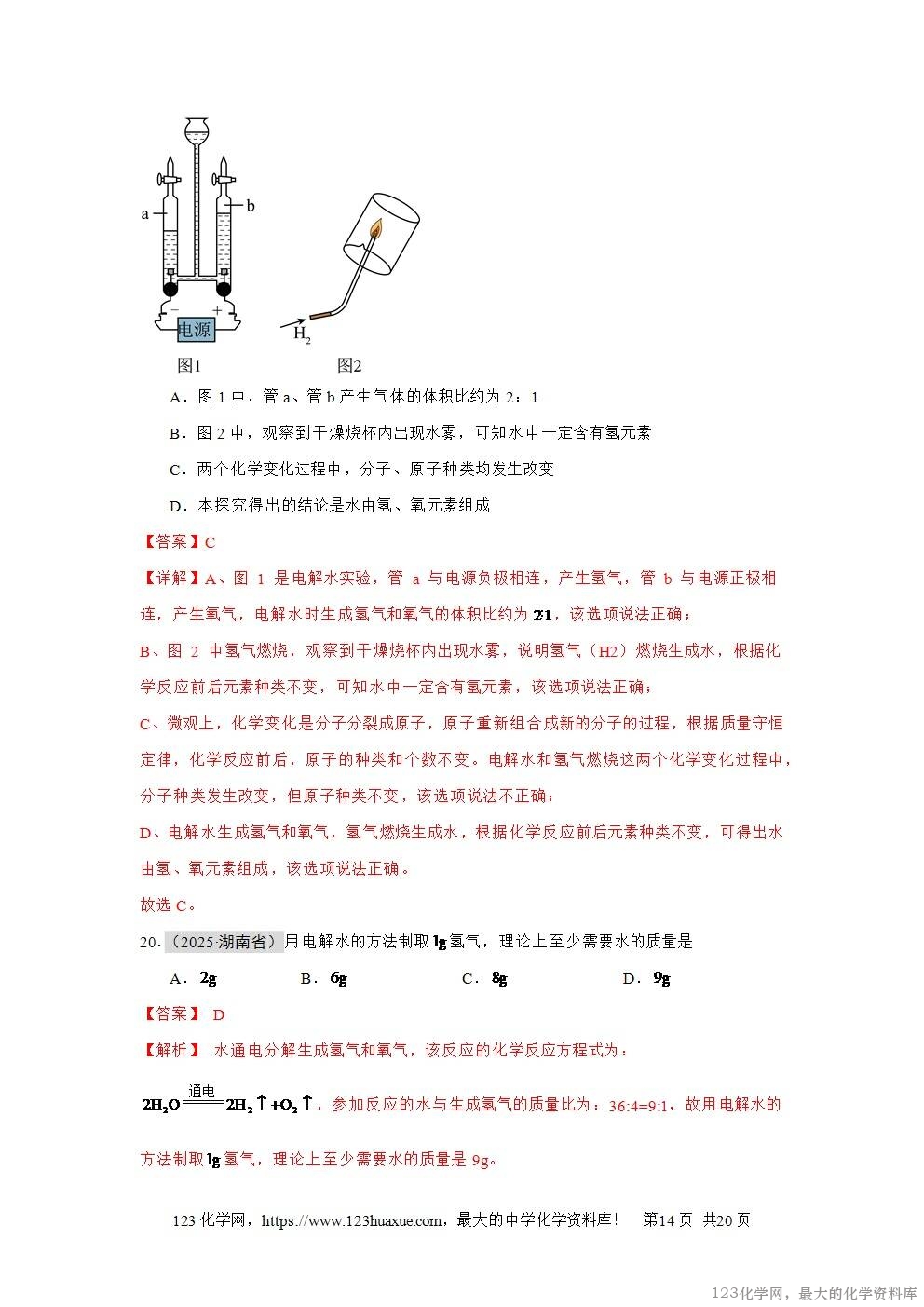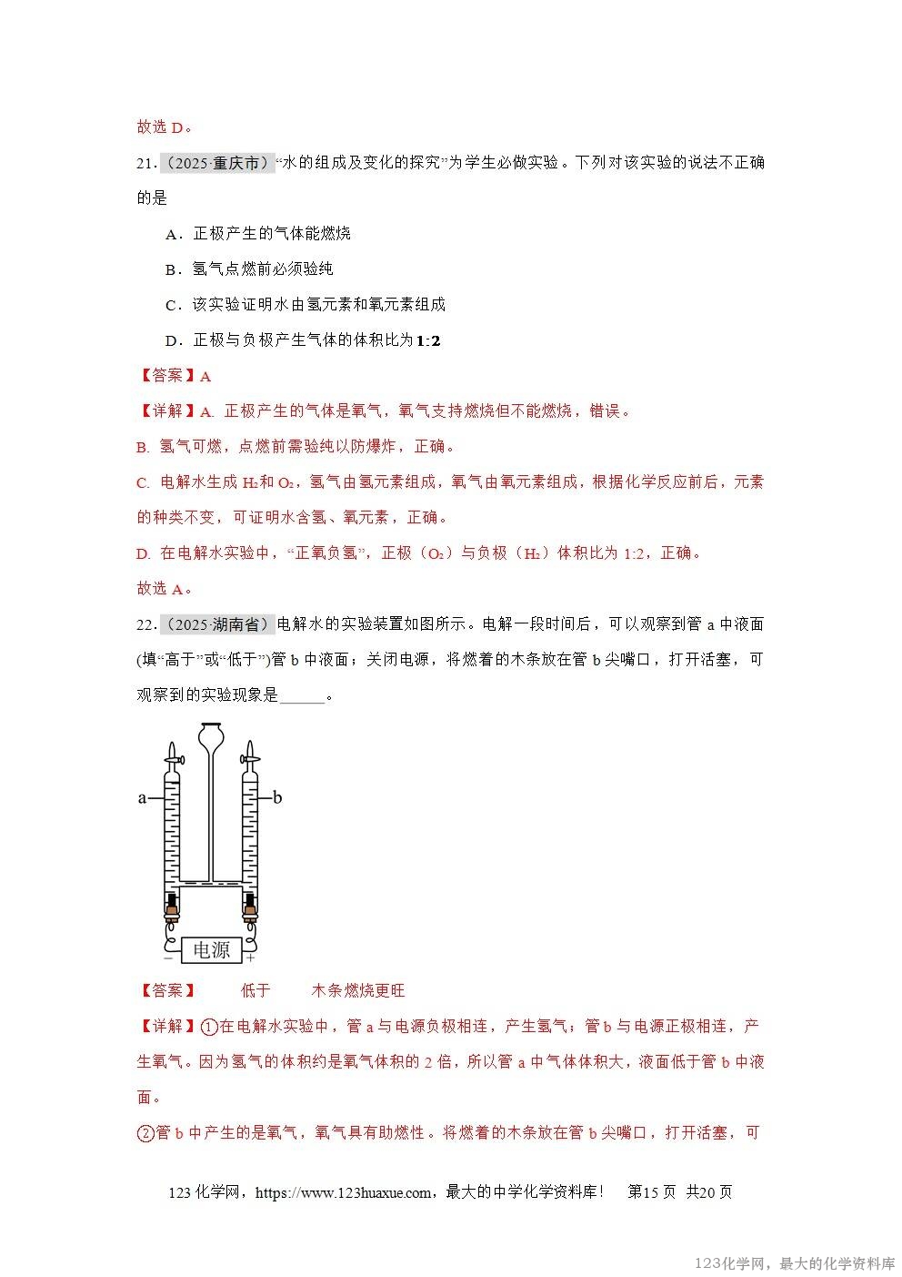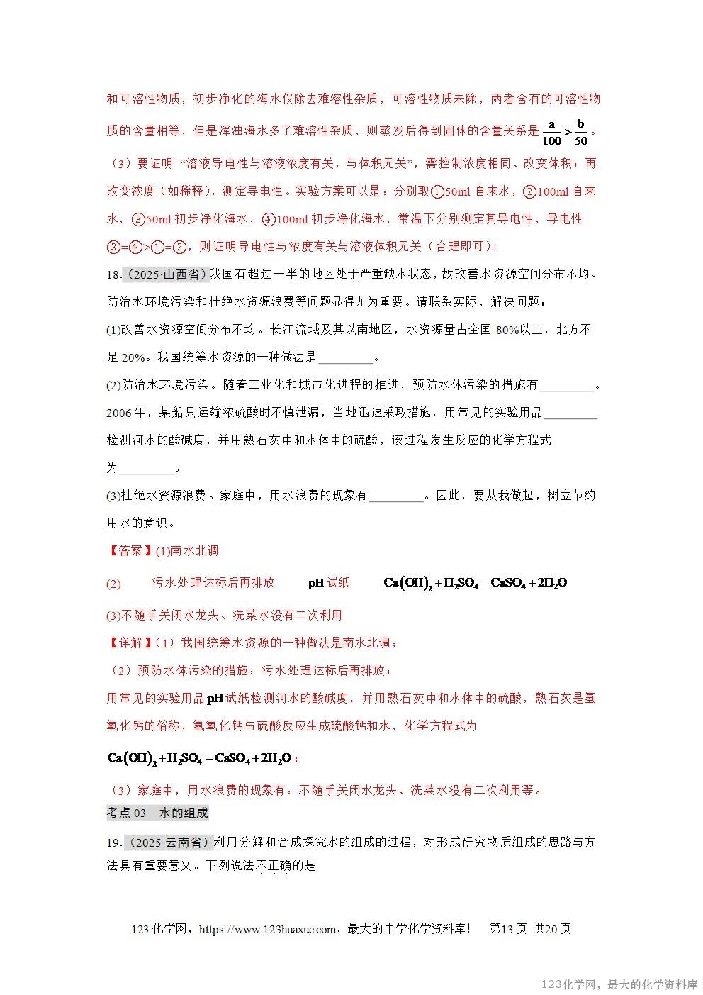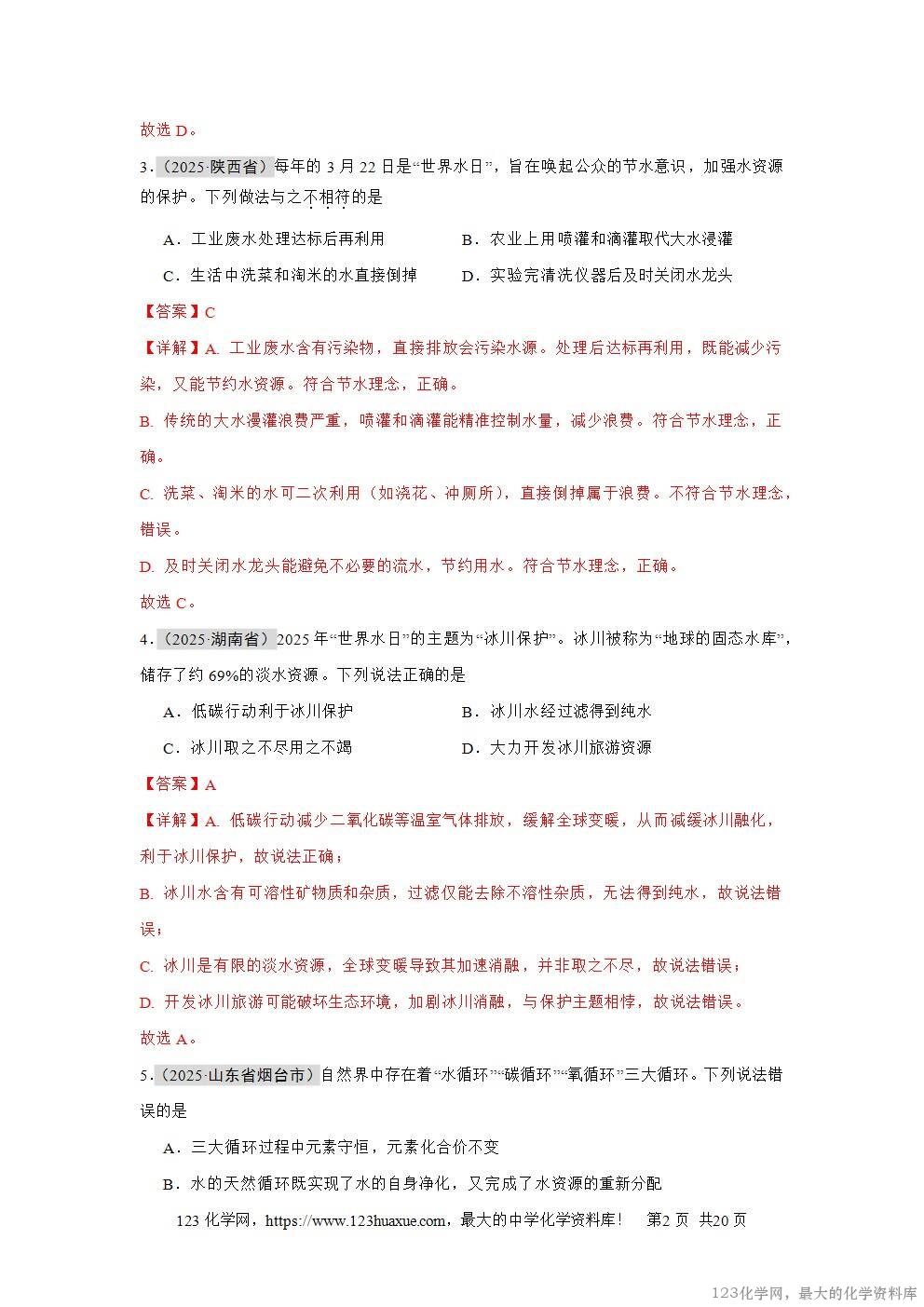 2025年中考化学真题分类汇编专题06自然界的水全国通用原卷版word文档含解析