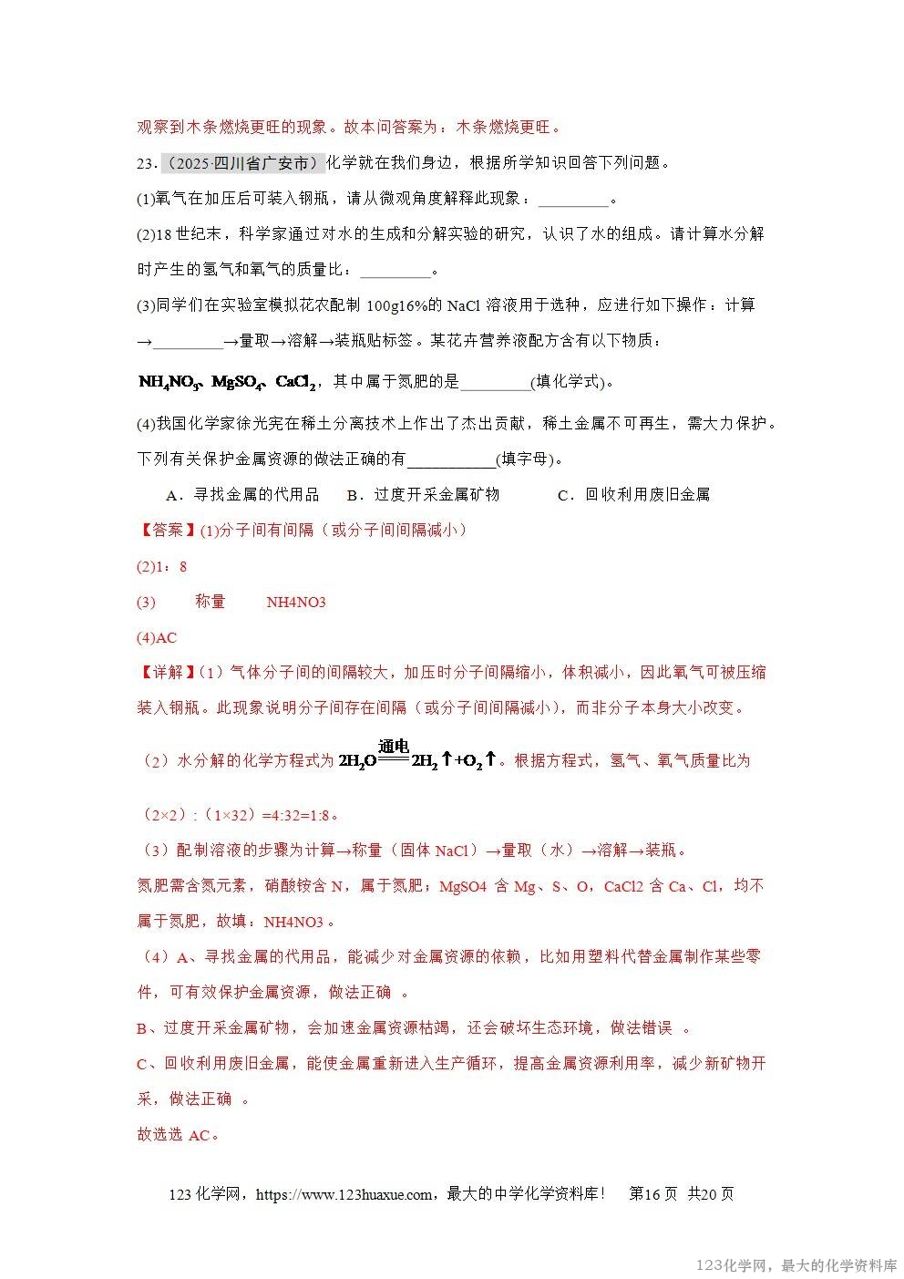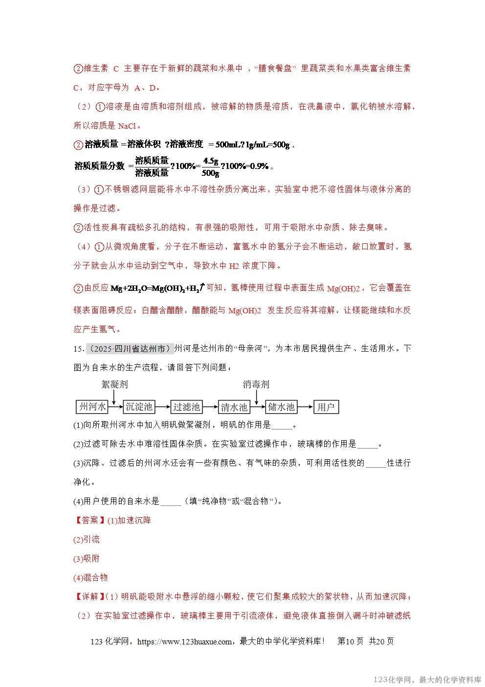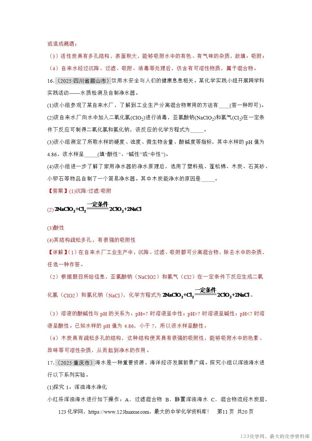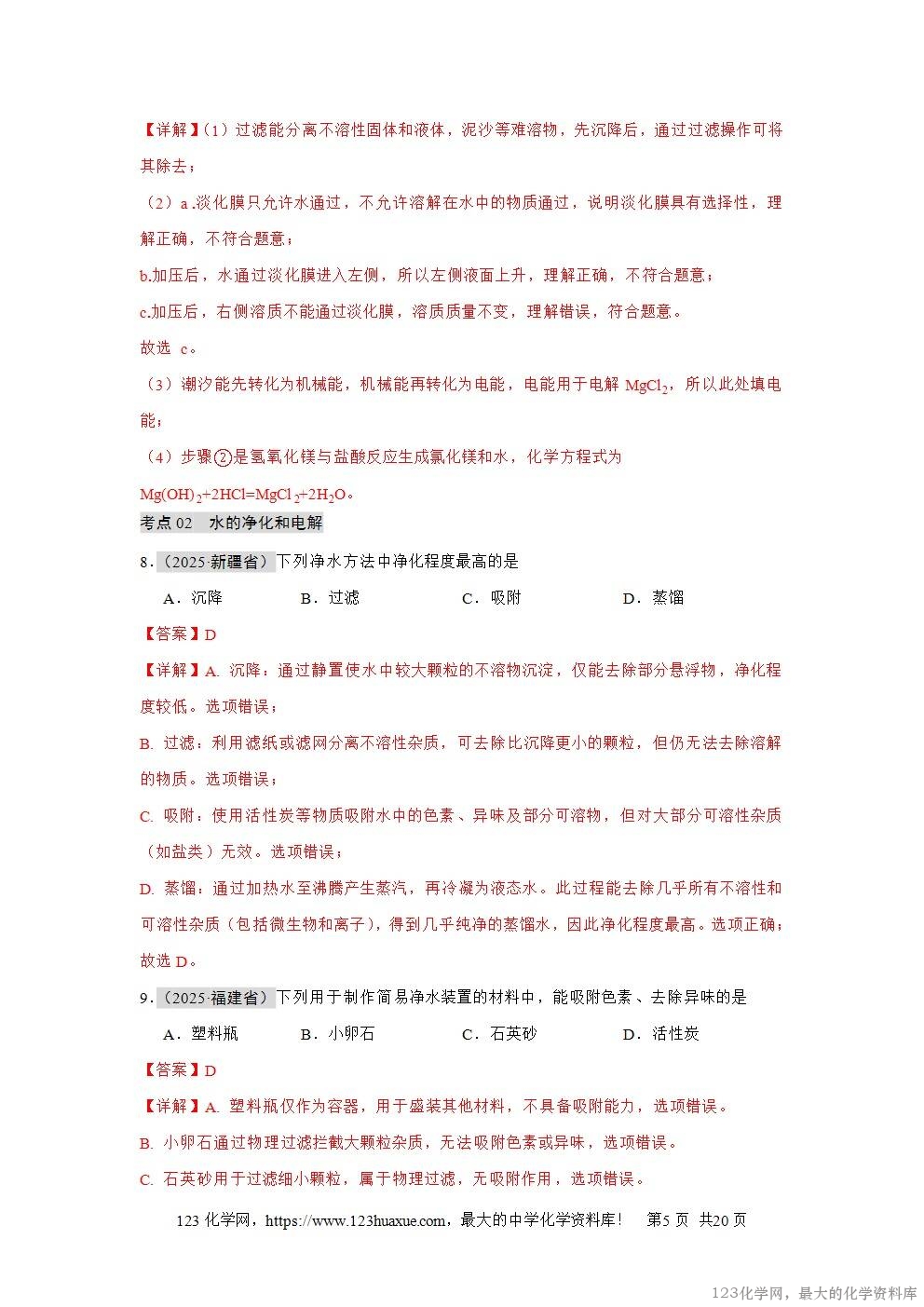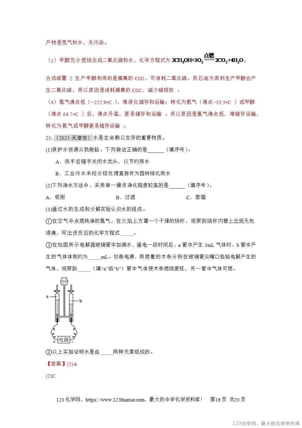 2025年中考化学真题分类汇编专题06自然界的水全国通用原卷版word文档含解析