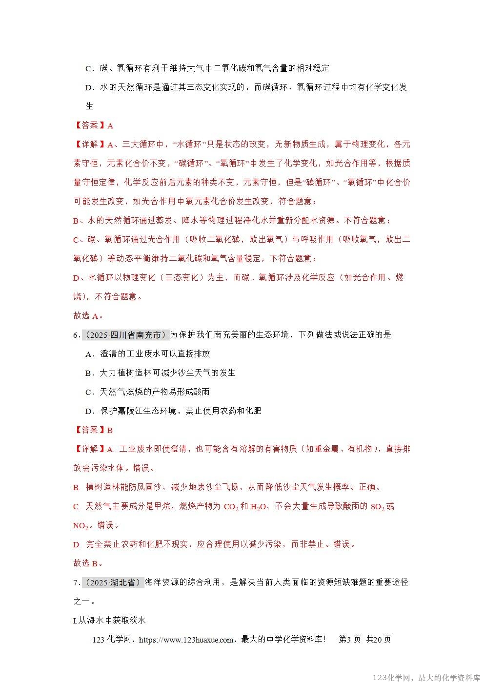 5.(2025·山东省烟台市)自然界中存在着“水循环”“碳循环”“氧循环”三大循环。下列说法错误的是