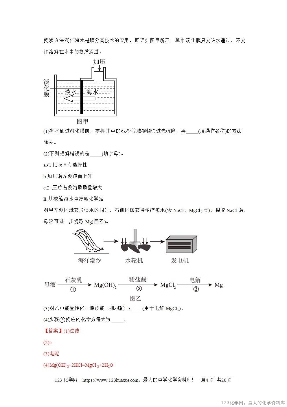 7.(2025·湖北省)海洋资源的综合利用,是解决当前人类面临的资源短缺难题的重要途径之一。