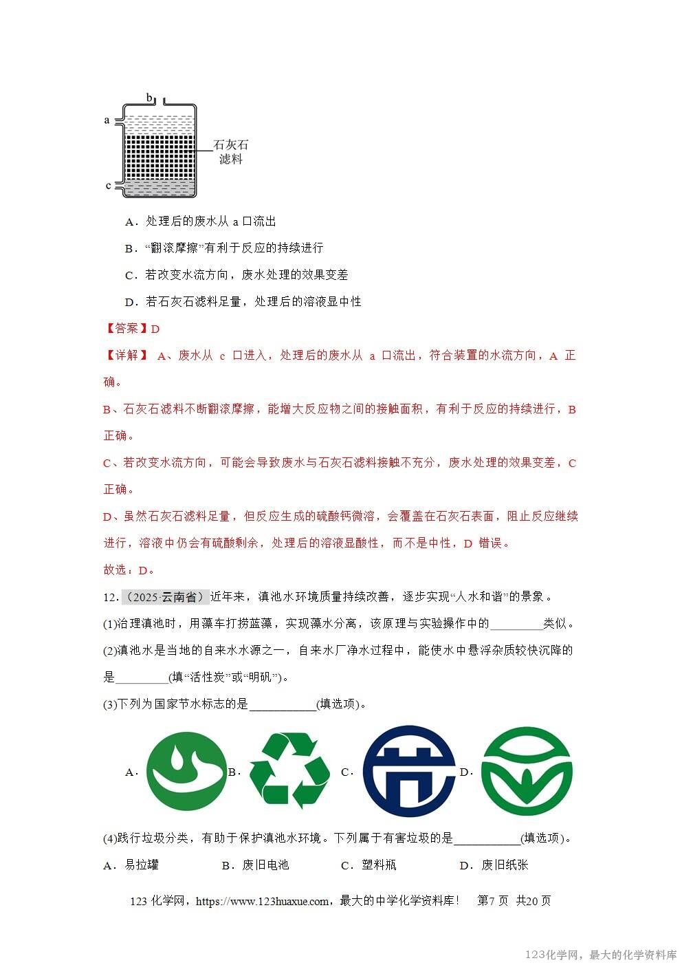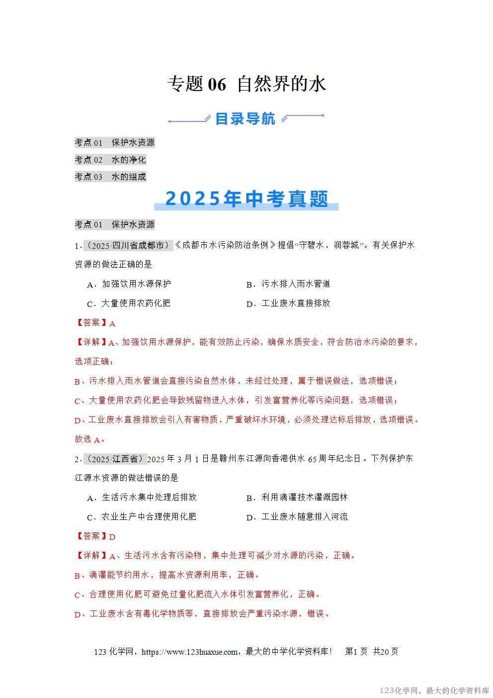 1.(2025·四川省成都市)《成都市水污染防治条例》提倡“守碧水,润蓉城”。有关保护水资源的做法正确的是