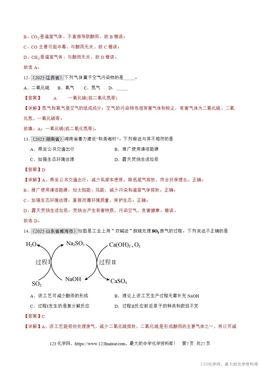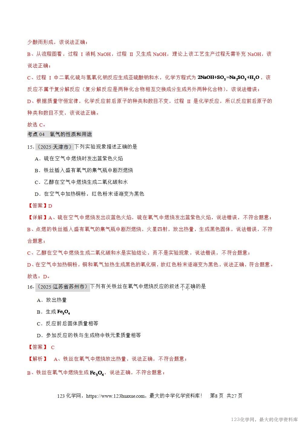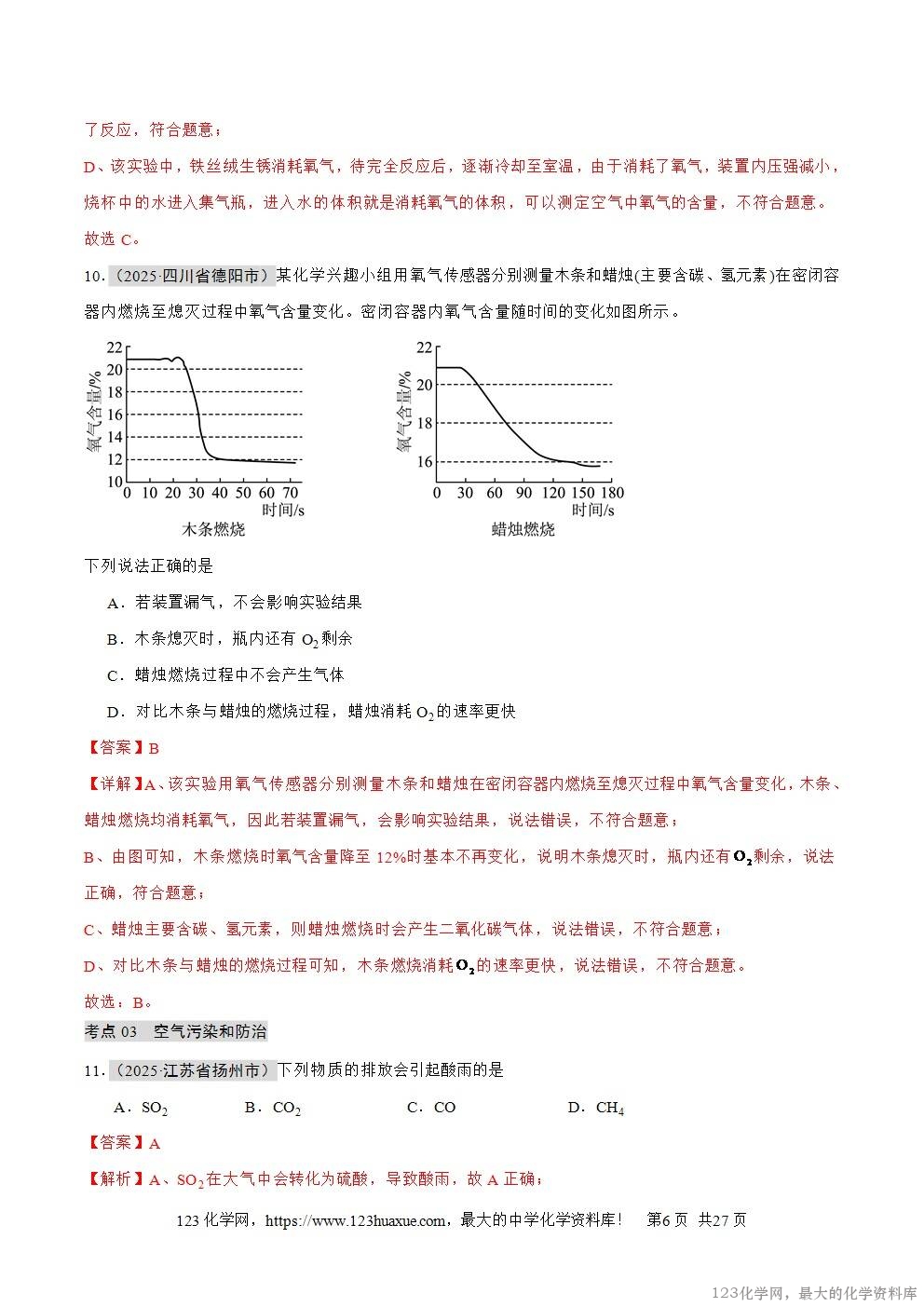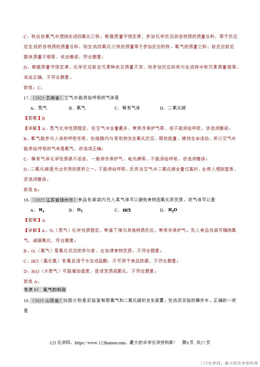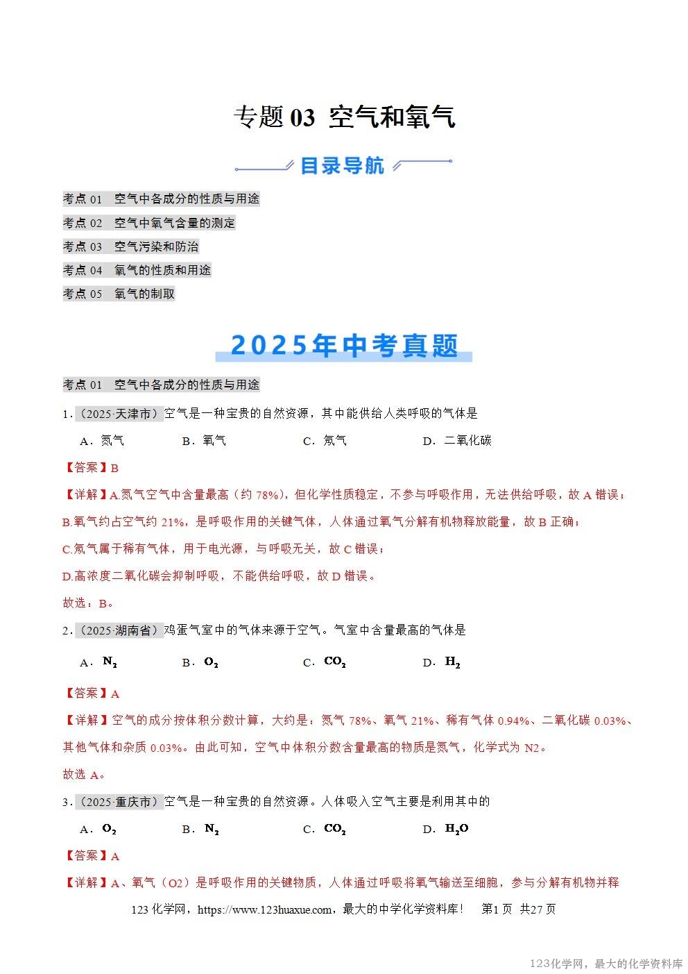 2025年中考化学真题分类汇编专题03空气和氧气全国通用解析版word文档