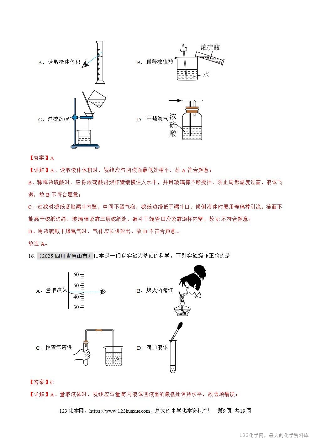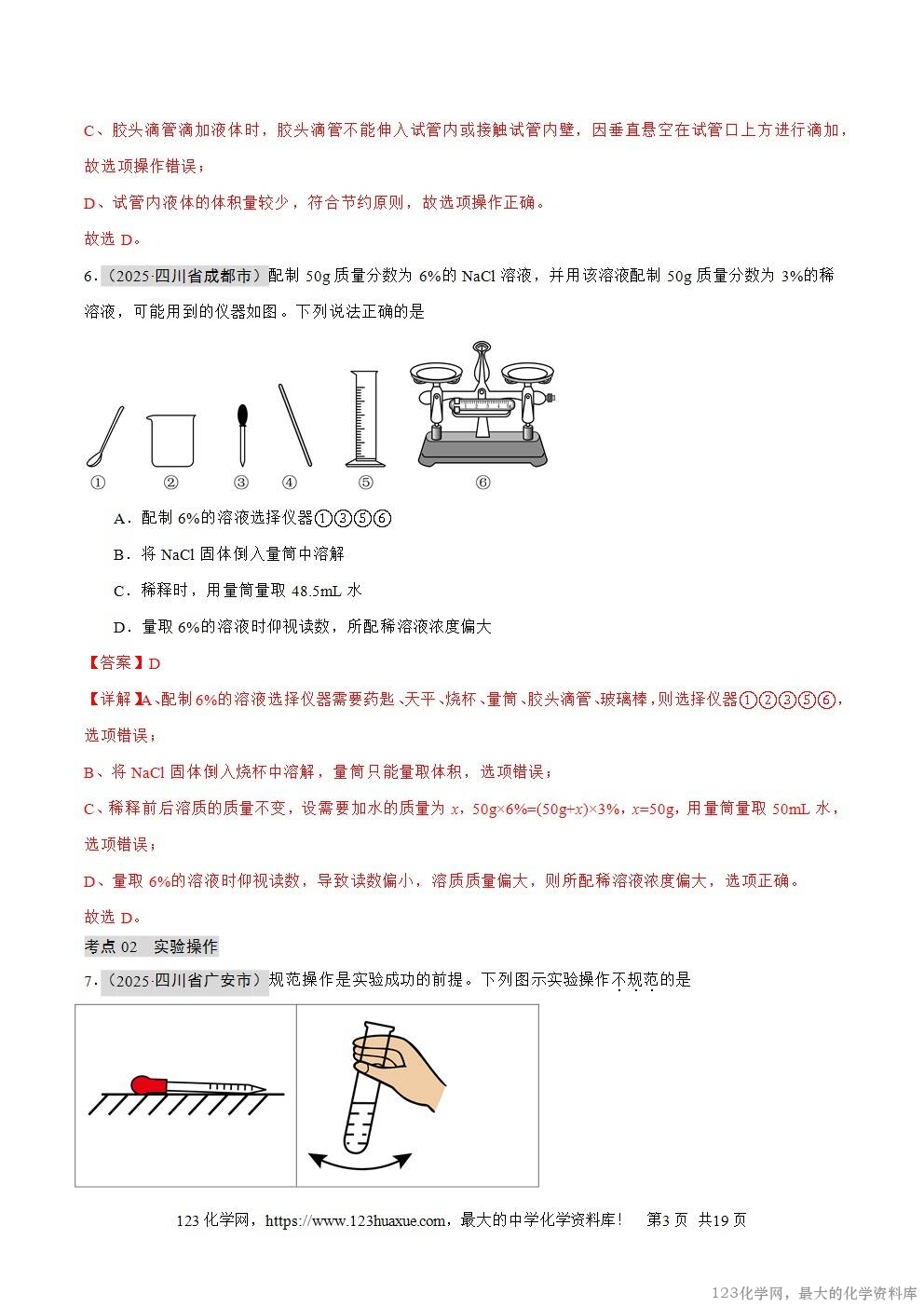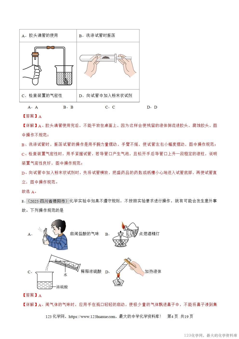 5.(2025·湖南省)实验室常用胶头滴管取用少量液体。如图,关于实验用品的使用规范的是