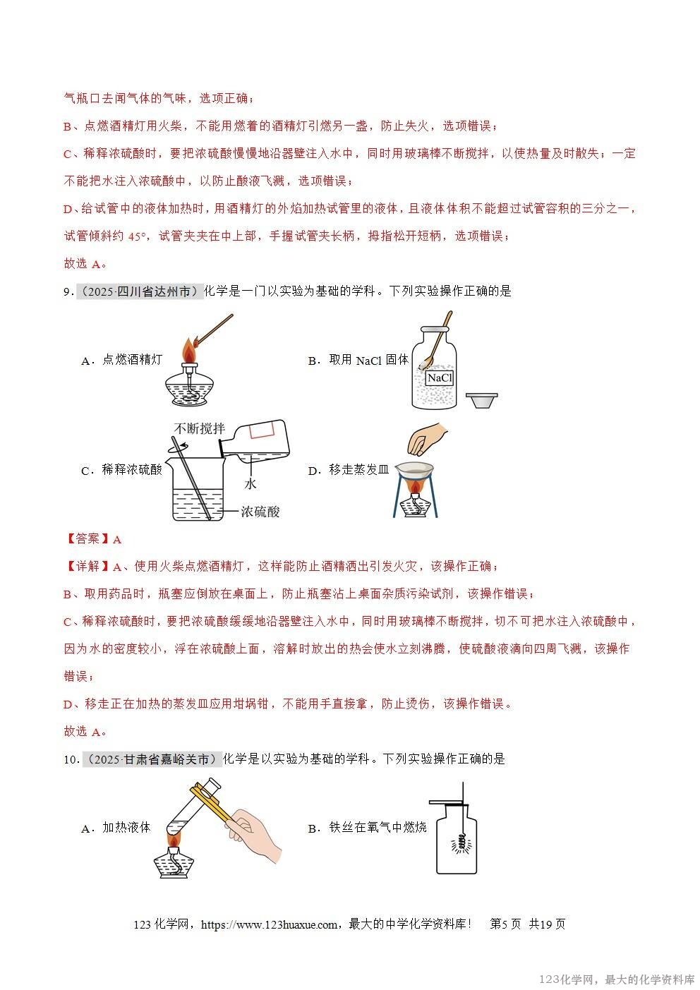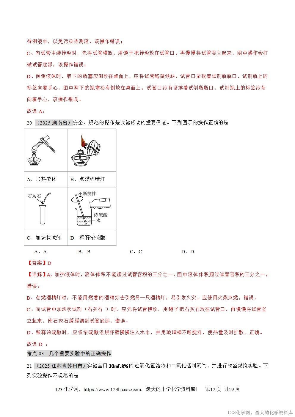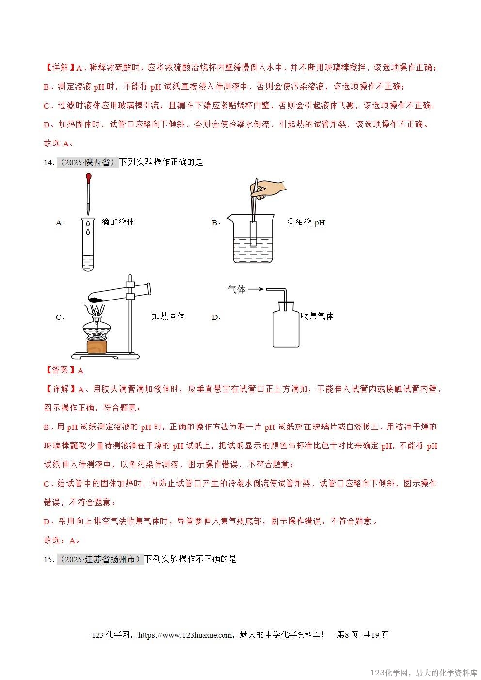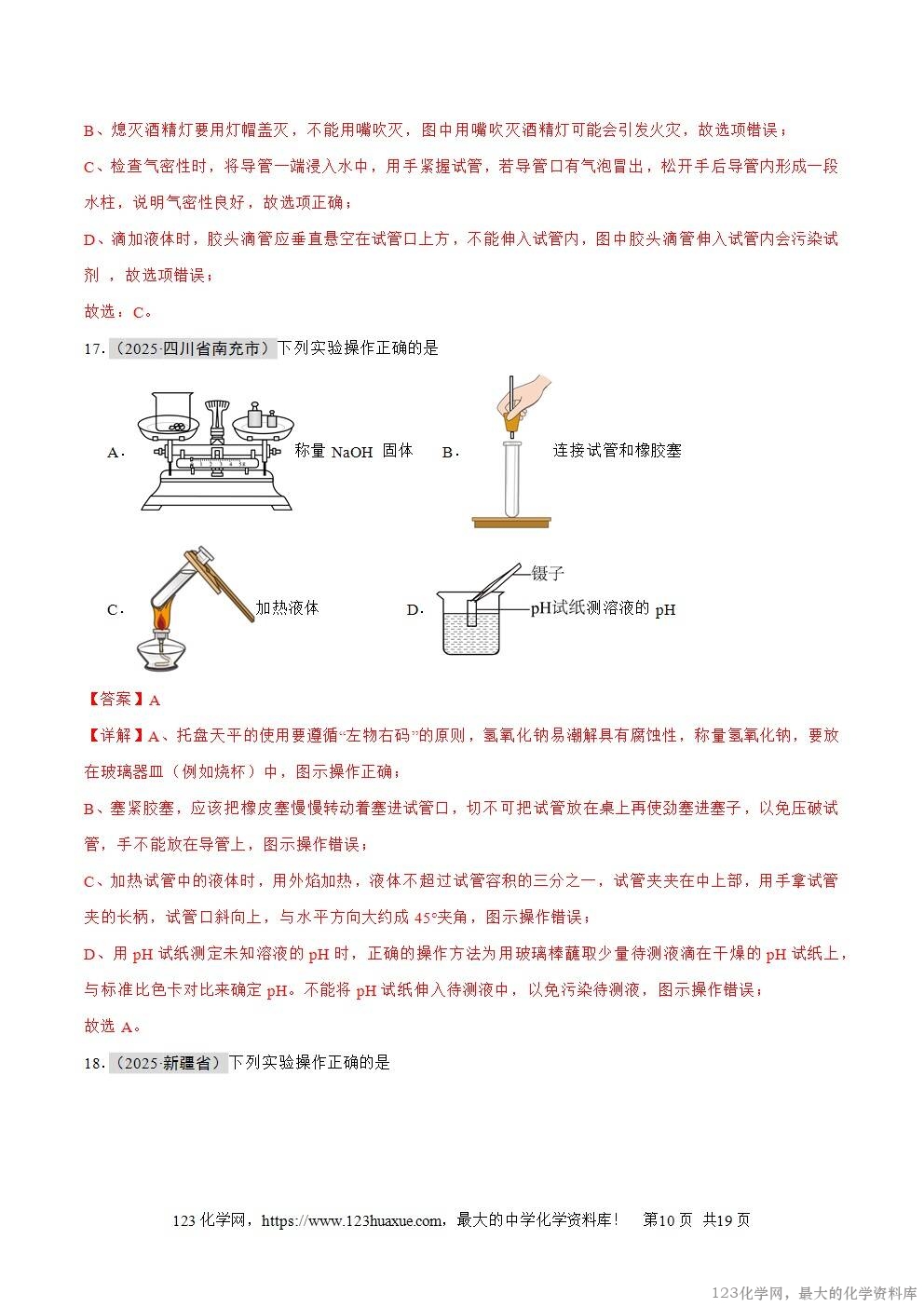 5.(2025·湖南省)实验室常用胶头滴管取用少量液体。如图,关于实验用品的使用规范的是