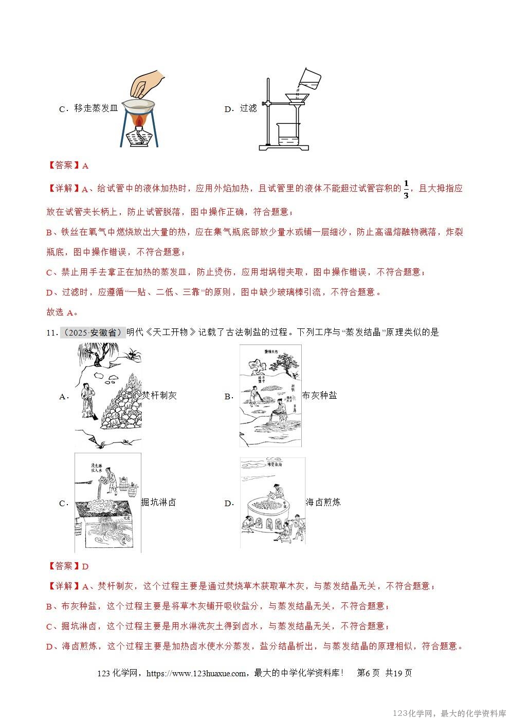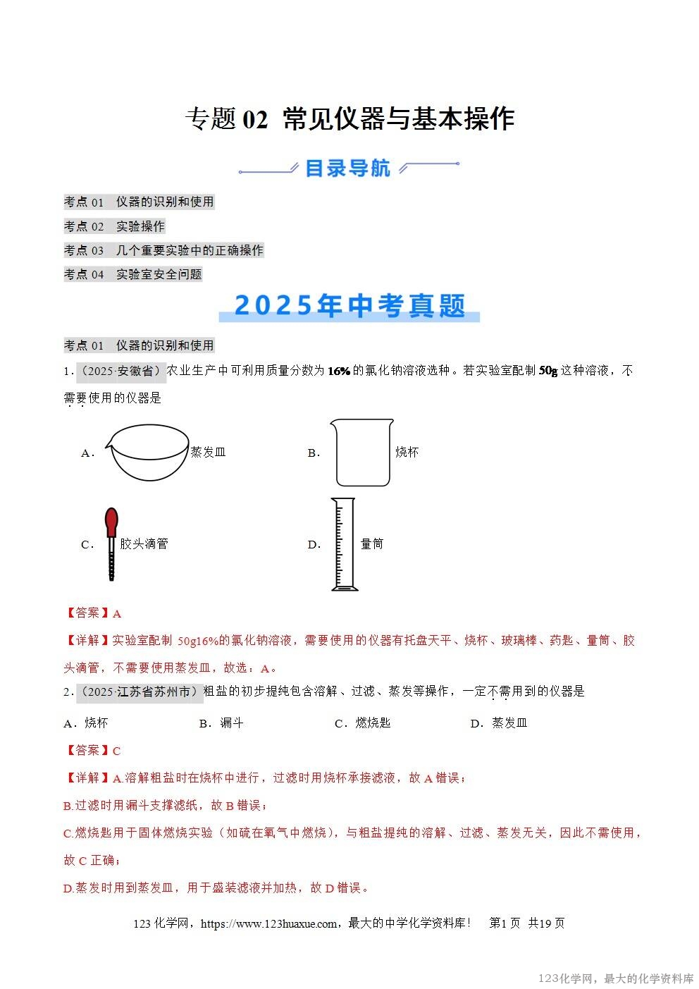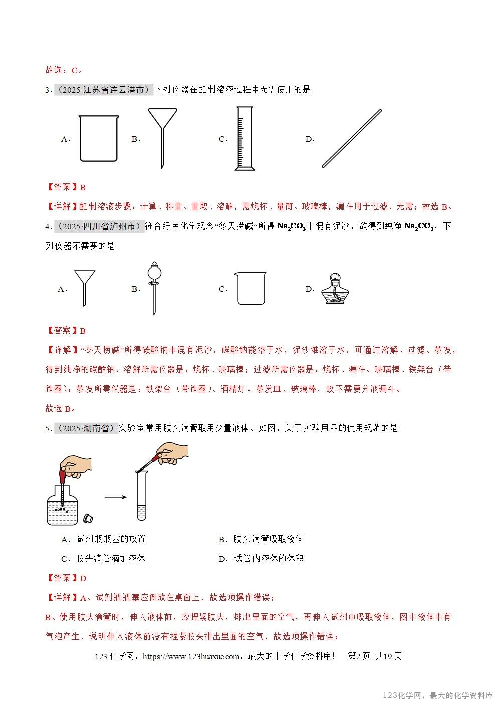 2.(2025·江苏省苏州市)粗盐的初步提纯包含溶解、过滤、蒸发等操作,一定不需用到的仪器是