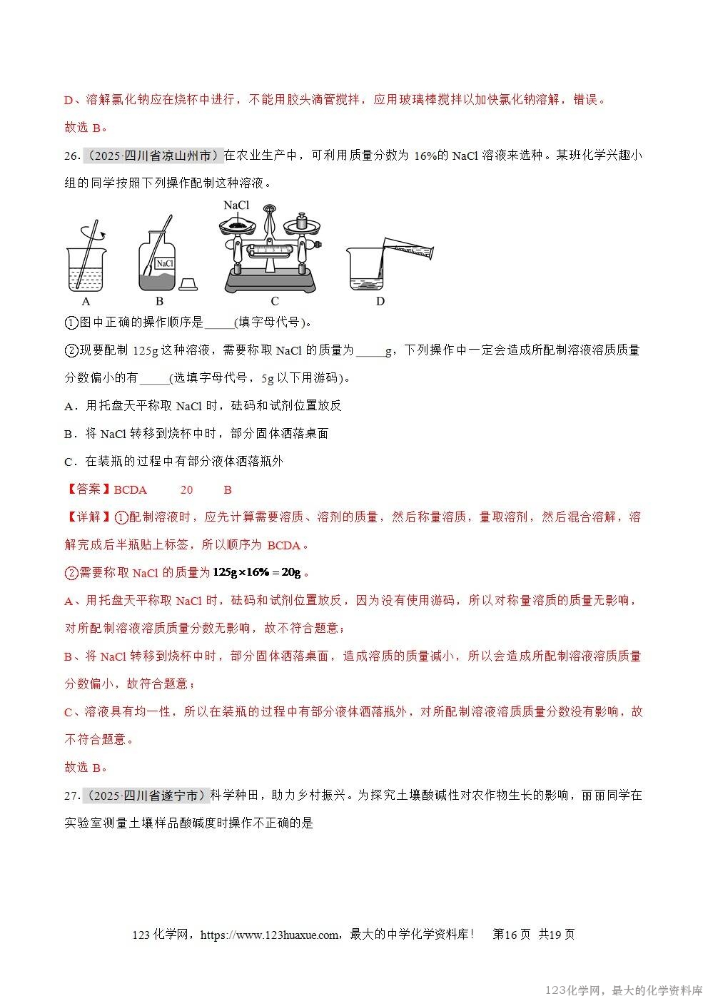 1.(2025·安徽省)农业生产中可利用质量分数为的氯化钠溶液选种。若实验室配制这种溶液,不需要使用的仪器是